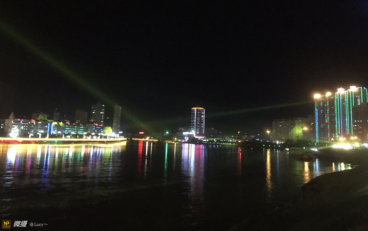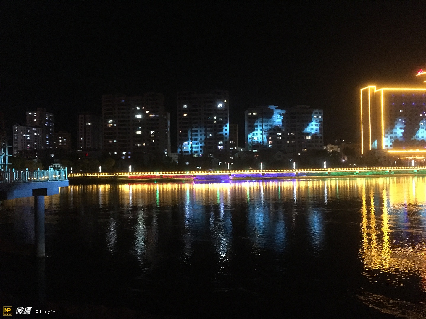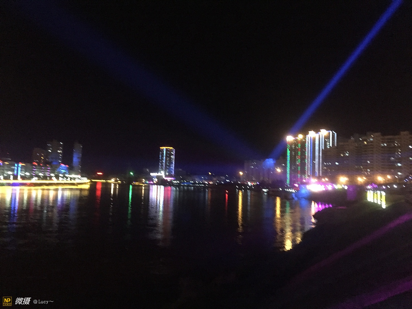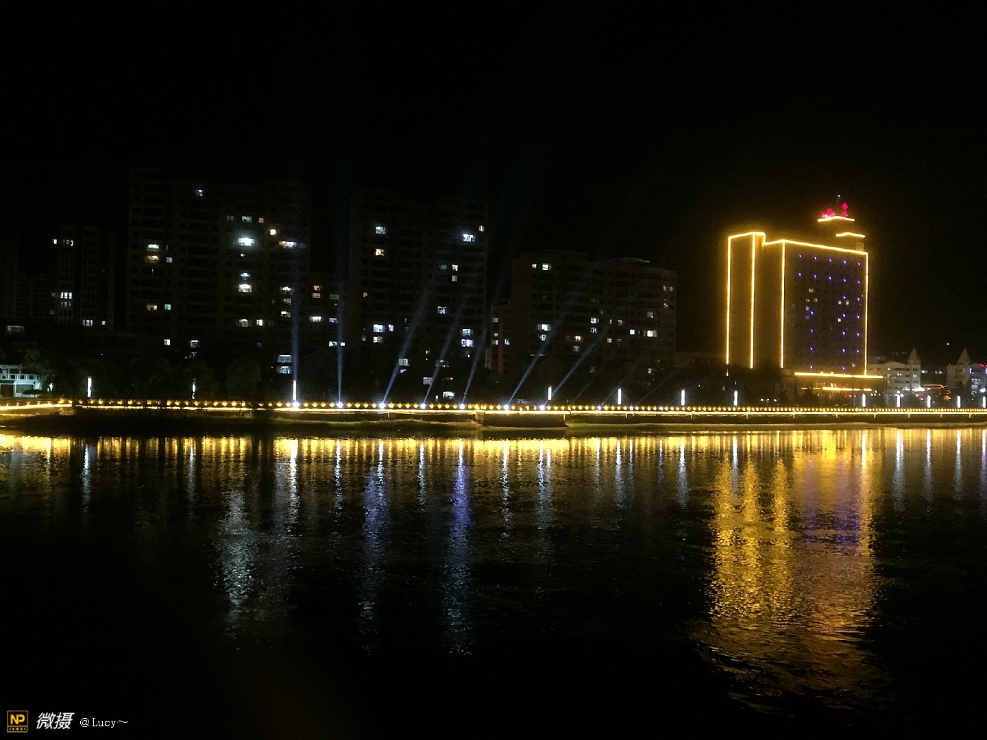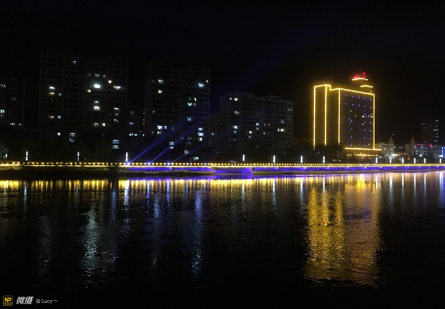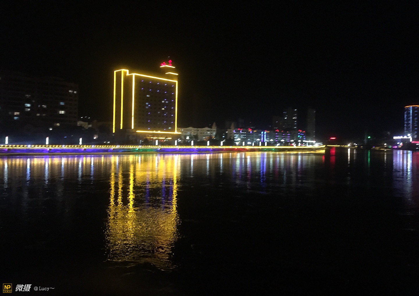 装饰一新的一座座高楼、倒映在河中、坚硬的外形又平添了几分朦胧与柔美!