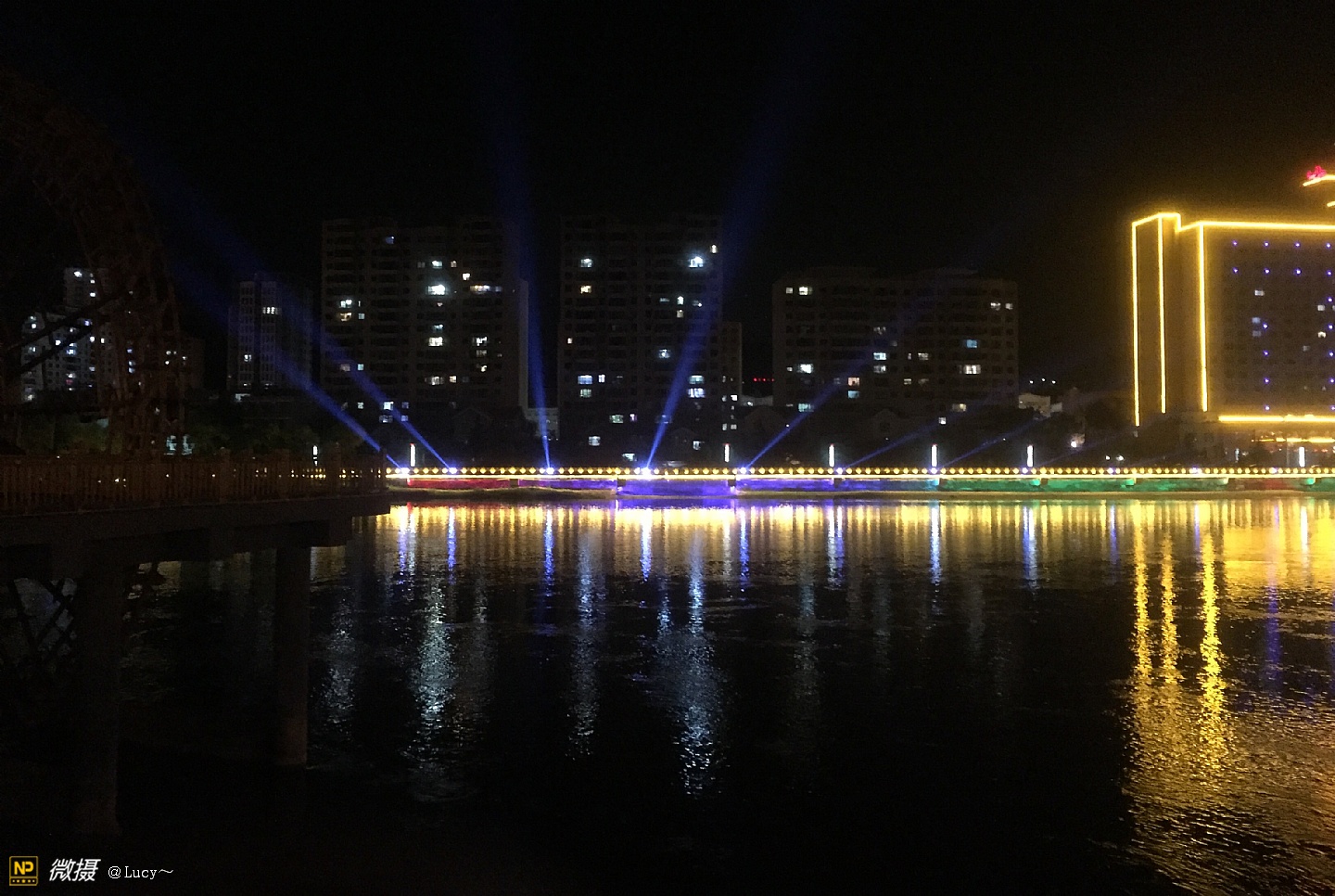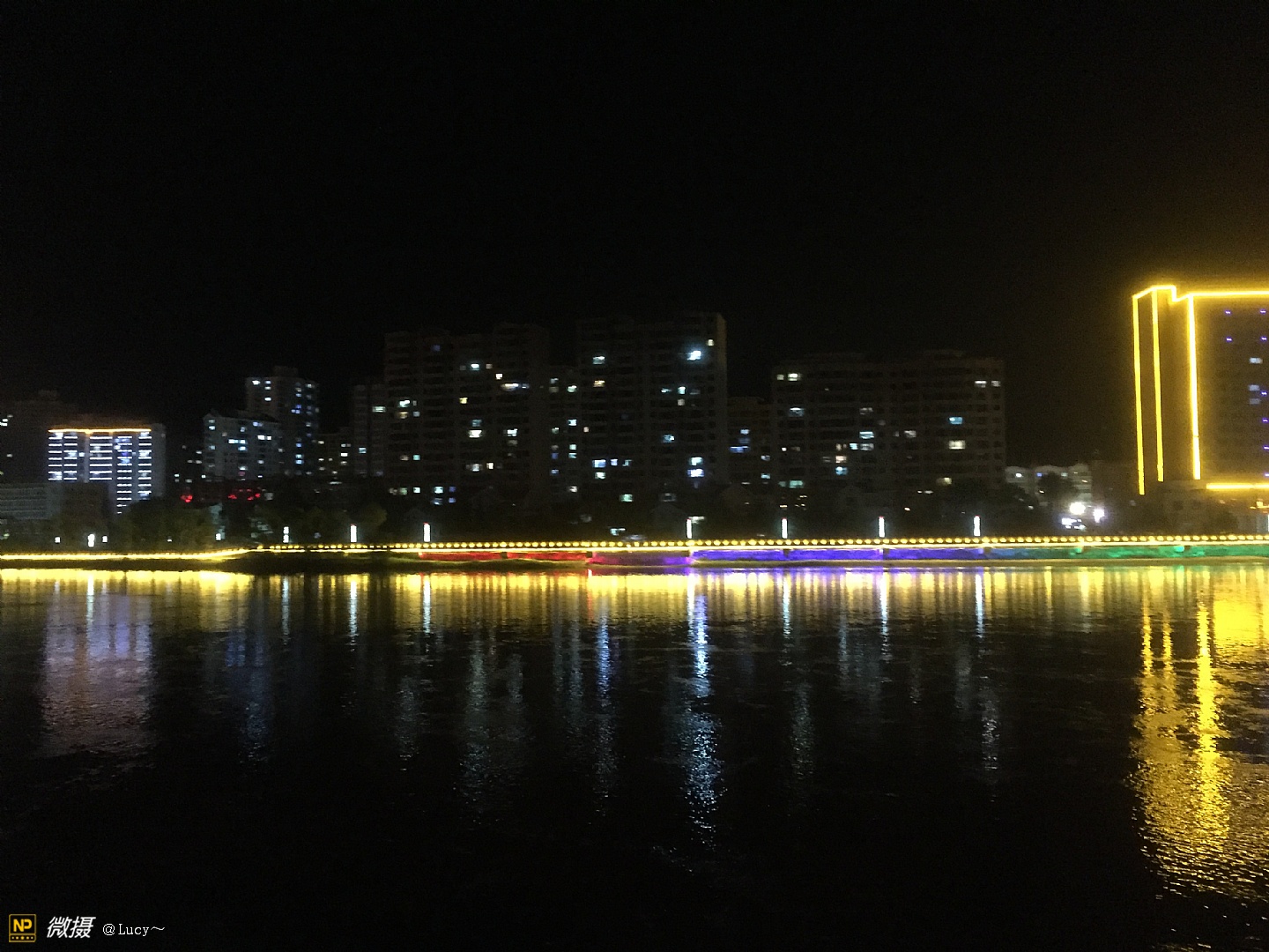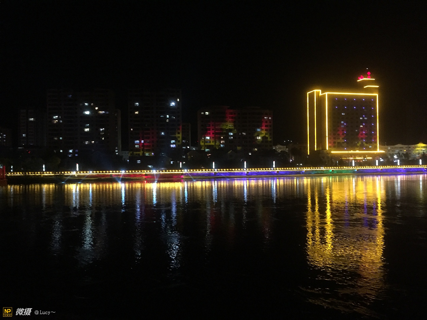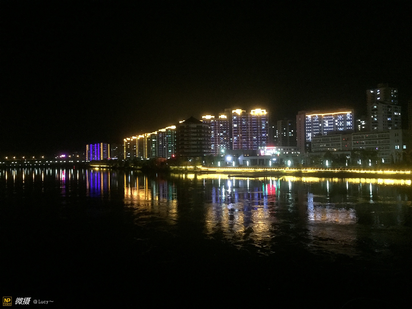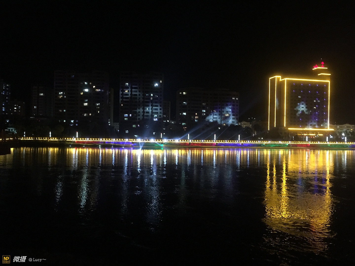 装饰一新的一座座高楼、倒映在河中、坚硬的外形又平添了几分朦胧与柔美!