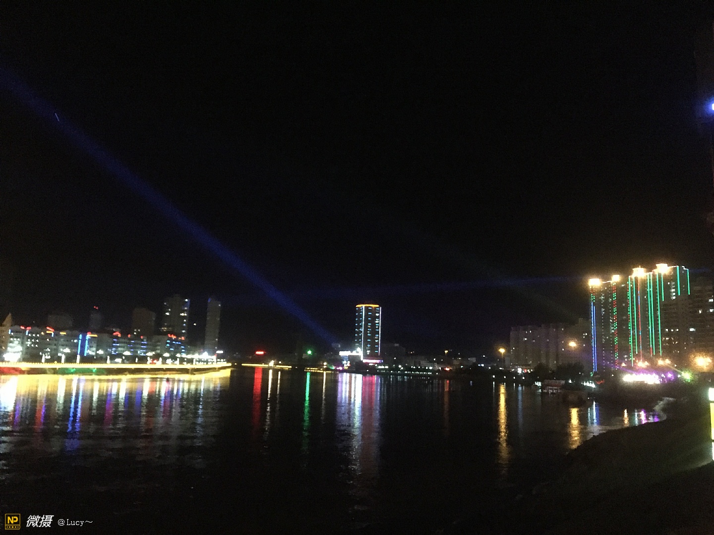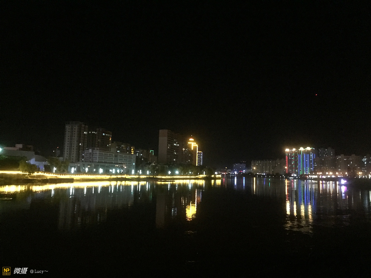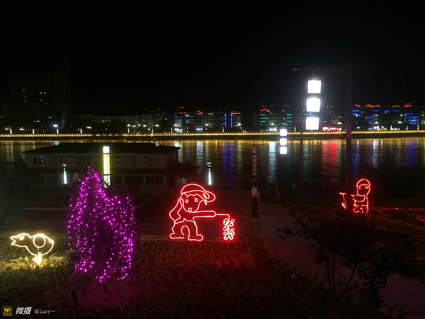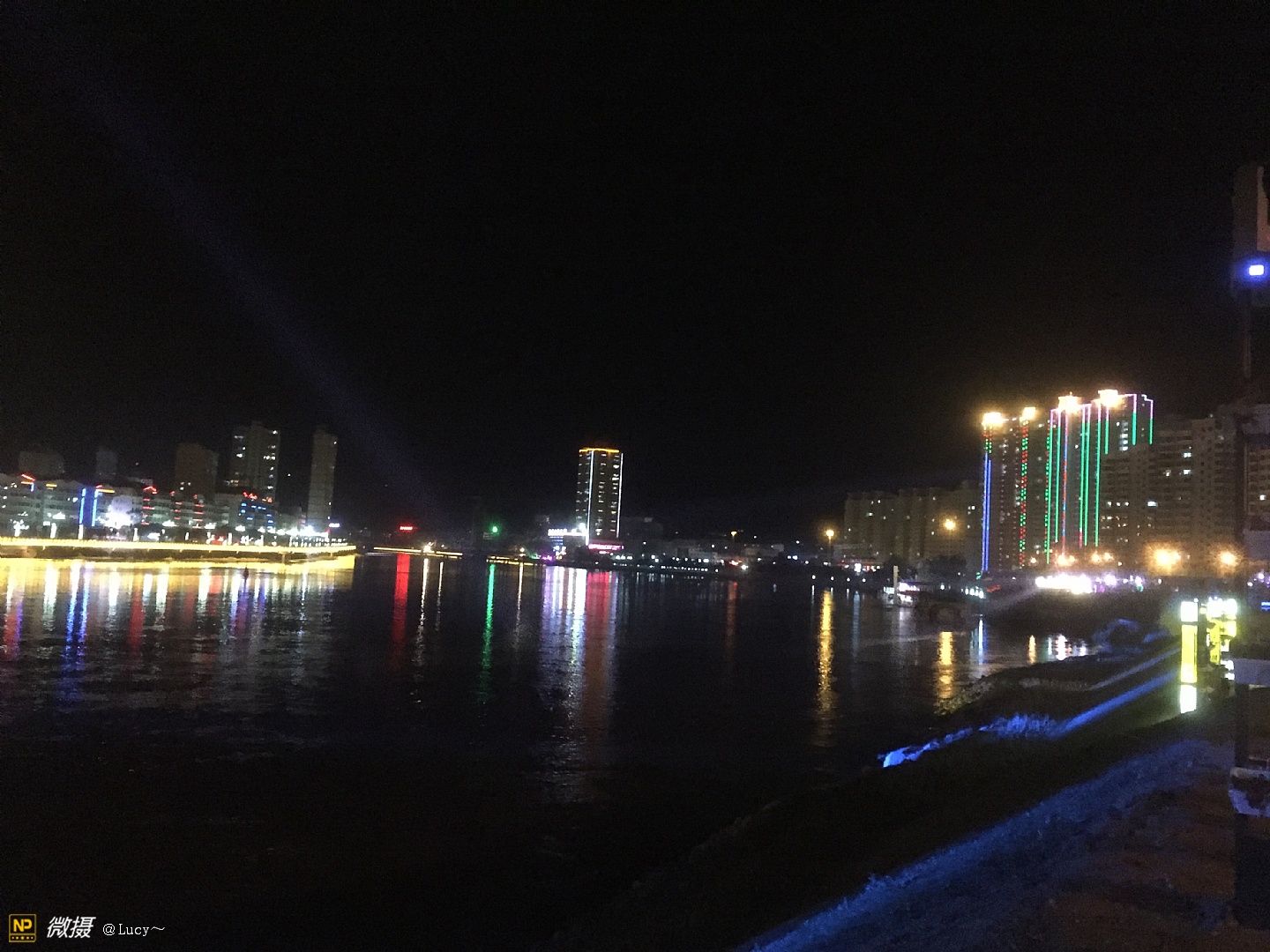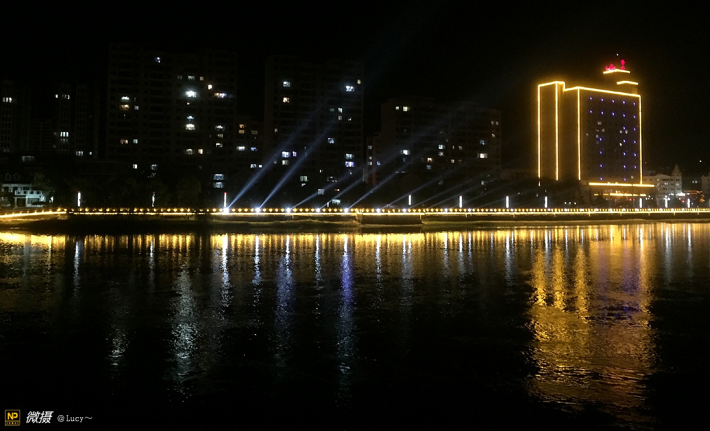 装饰一新的一座座高楼、倒映在河中、坚硬的外形又平添了几分朦胧与柔美!