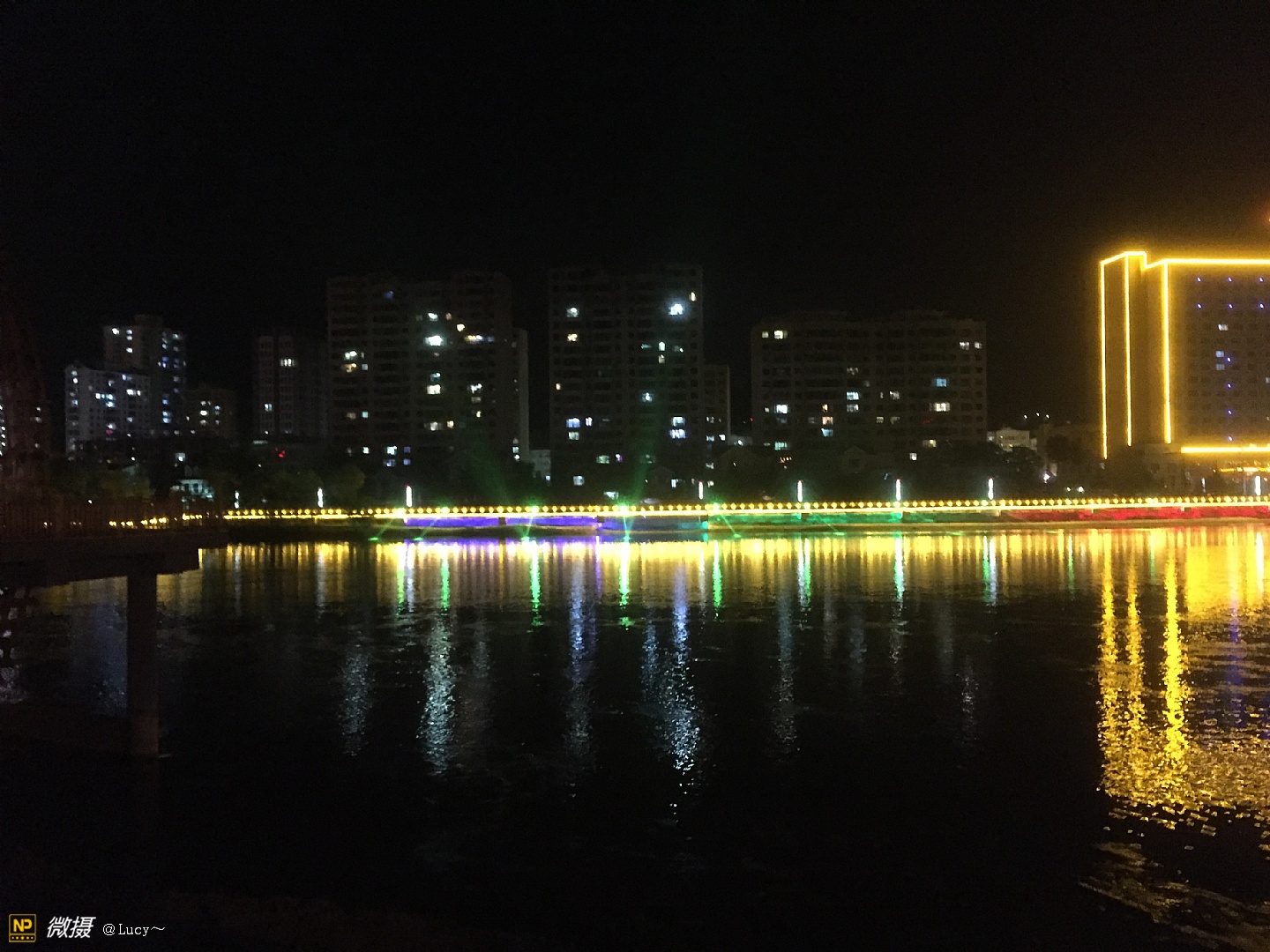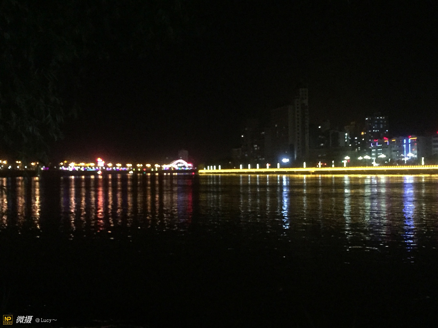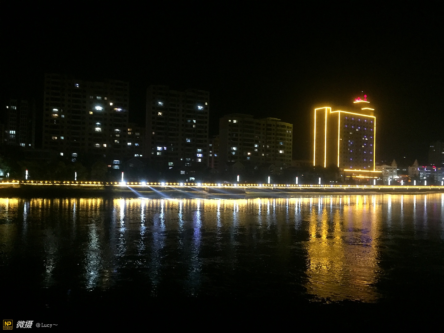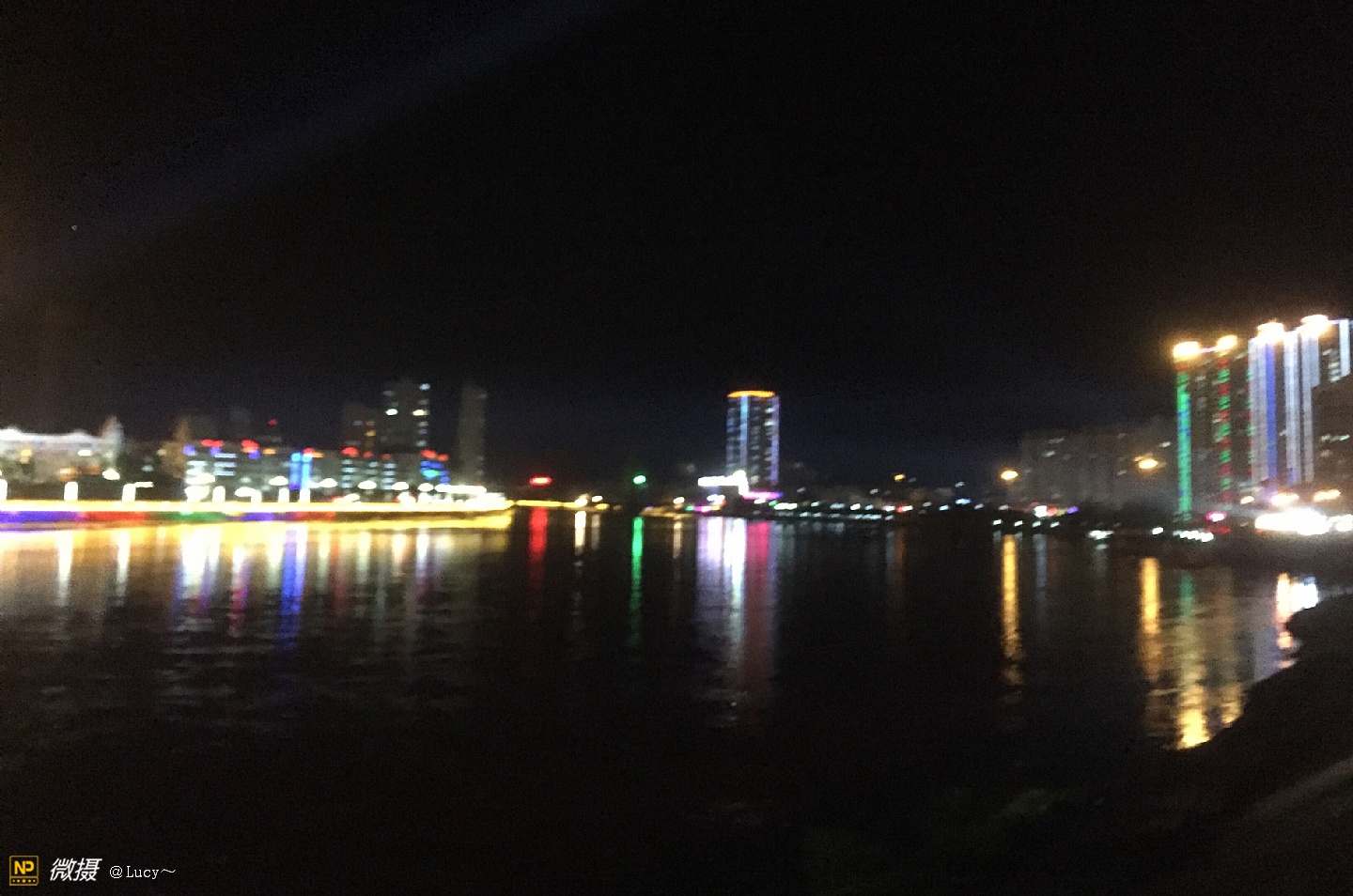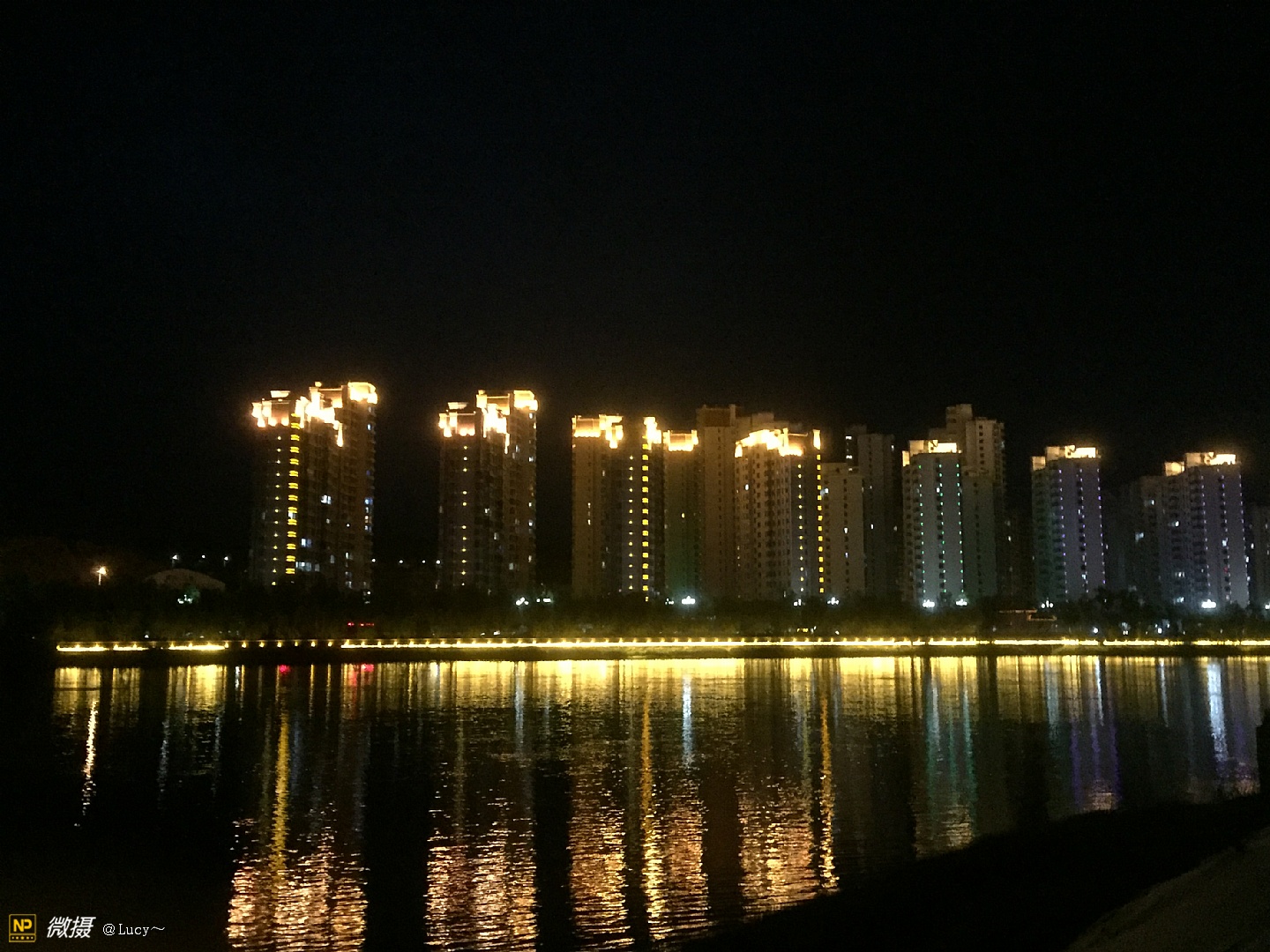 装饰一新的一座座高楼、倒映在河中、坚硬的外形又平添了几分朦胧与柔美!