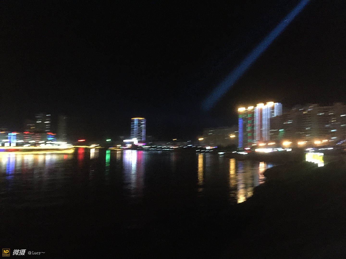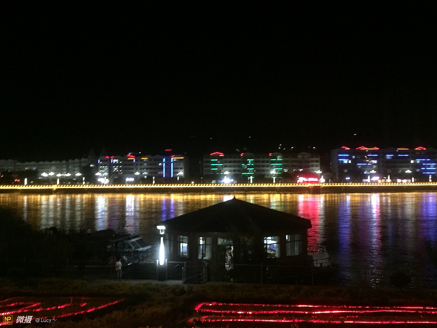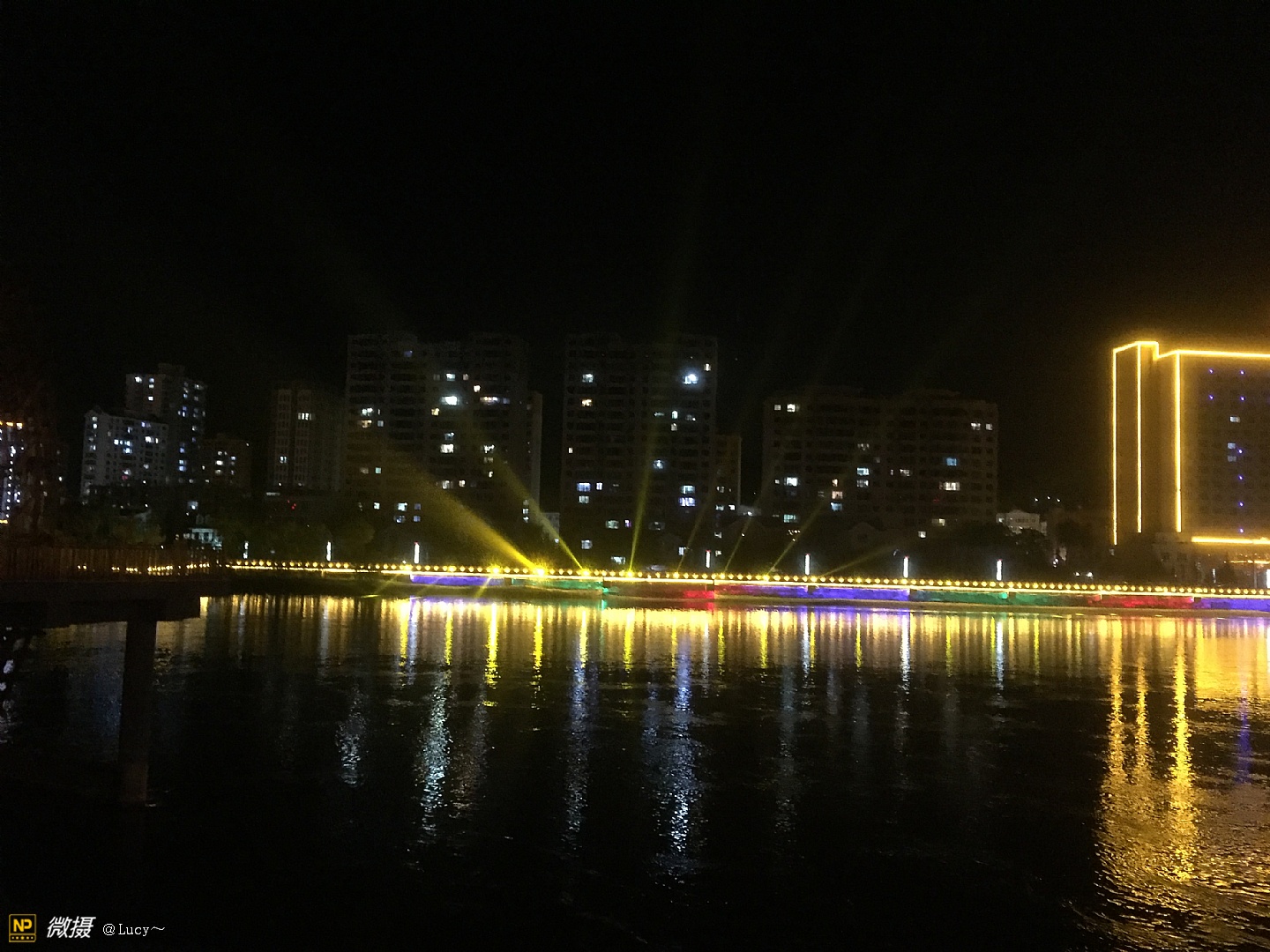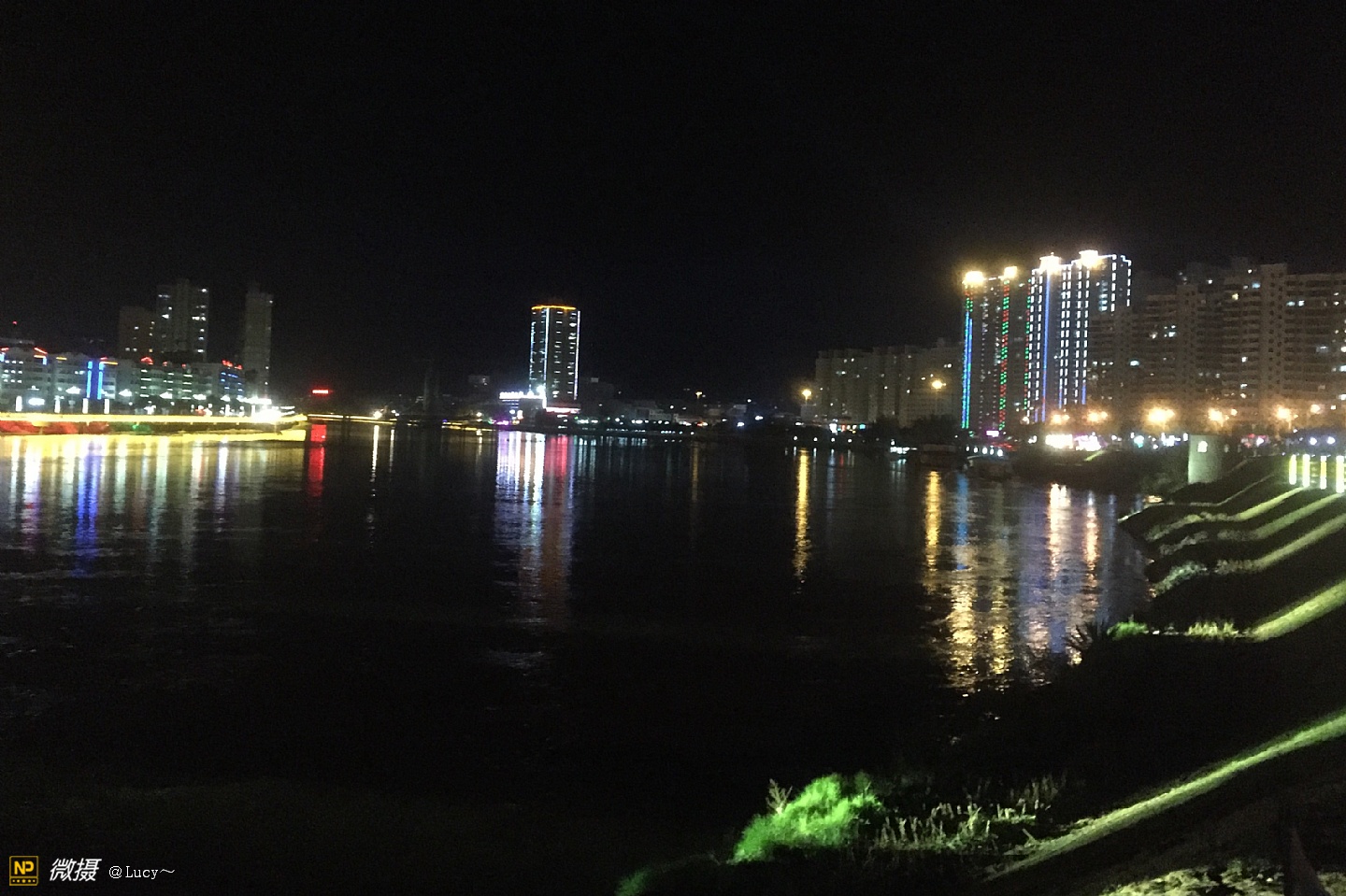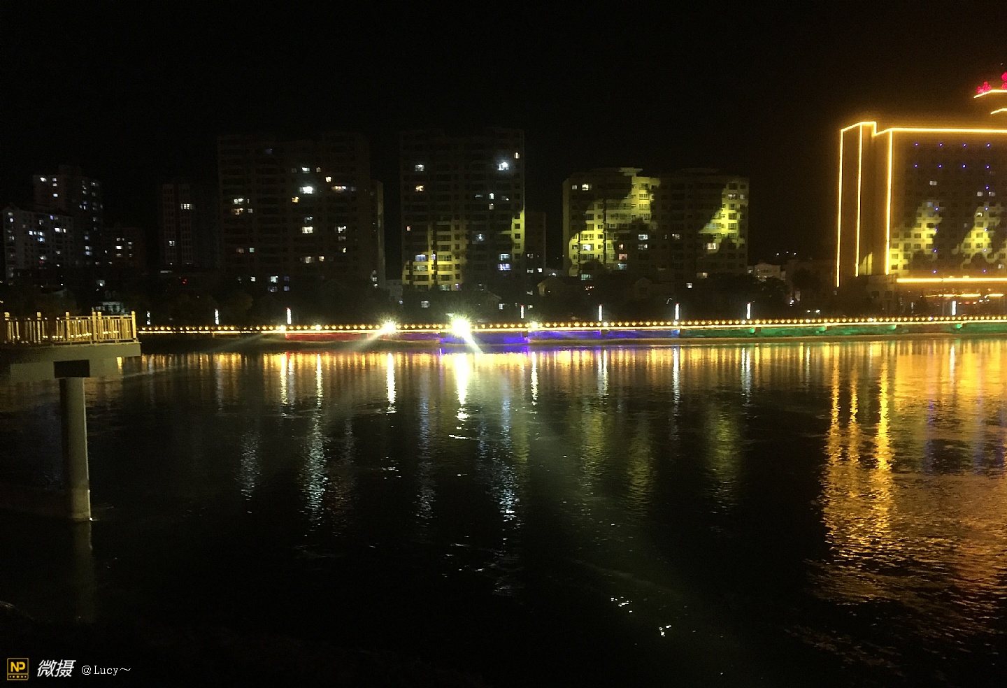 装饰一新的一座座高楼、倒映在河中、坚硬的外形又平添了几分朦胧与柔美!