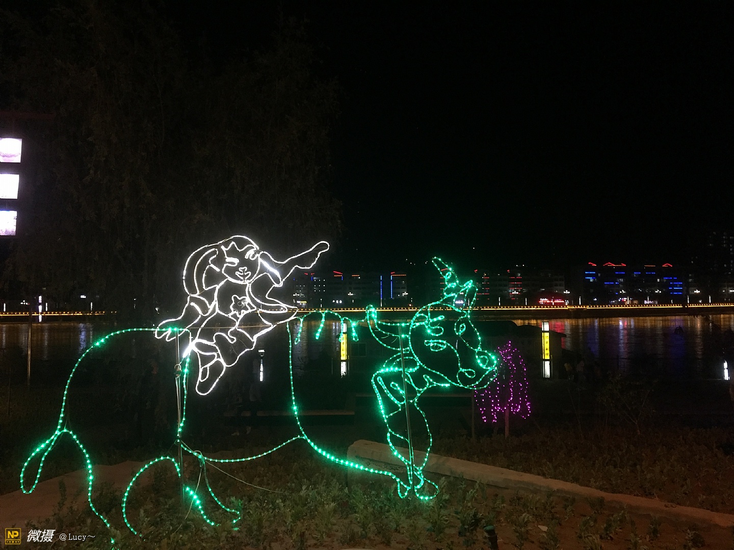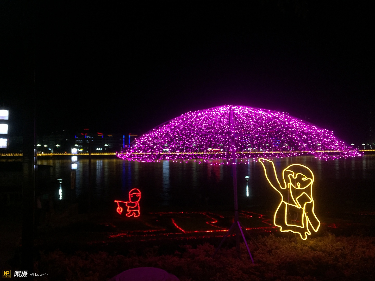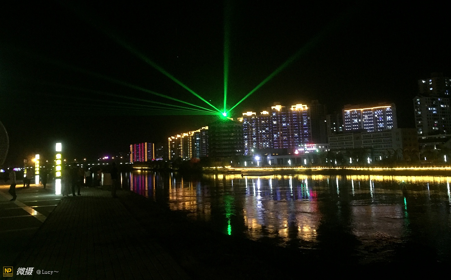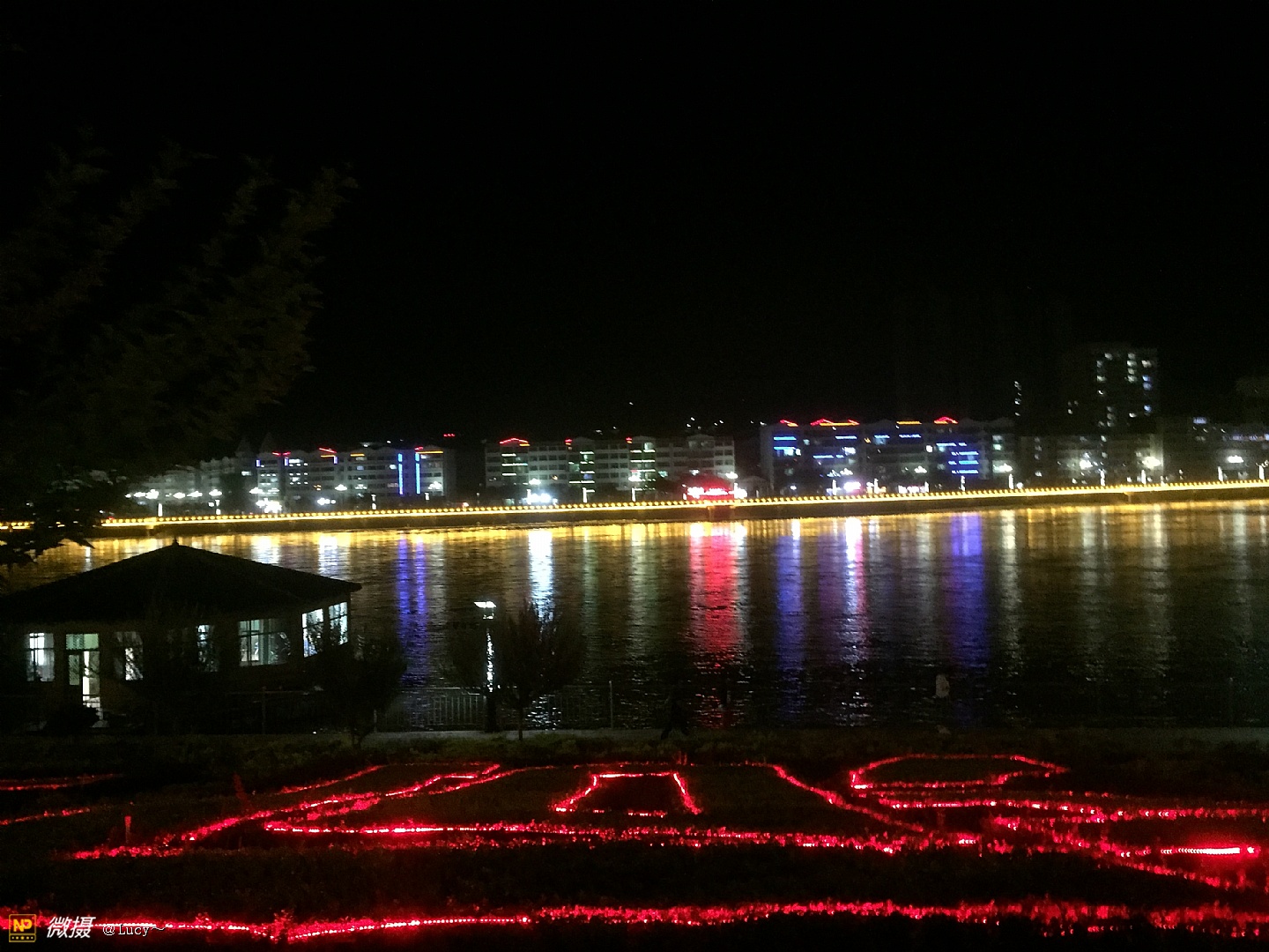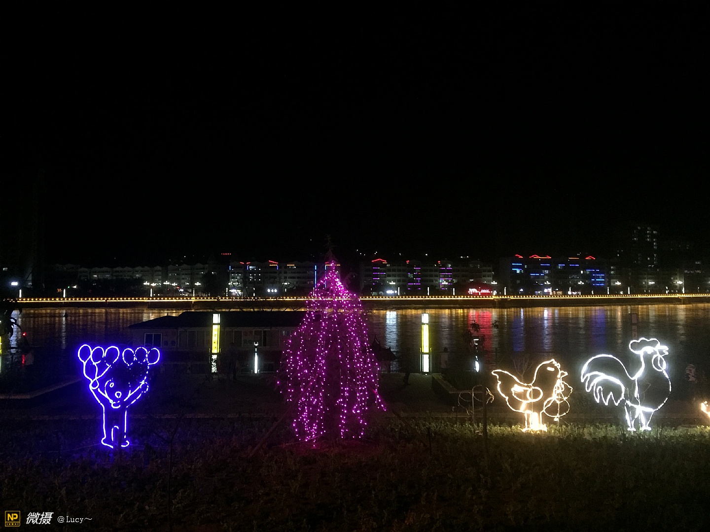 装饰一新的一座座高楼、倒映在河中、坚硬的外形又平添了几分朦胧与柔美!