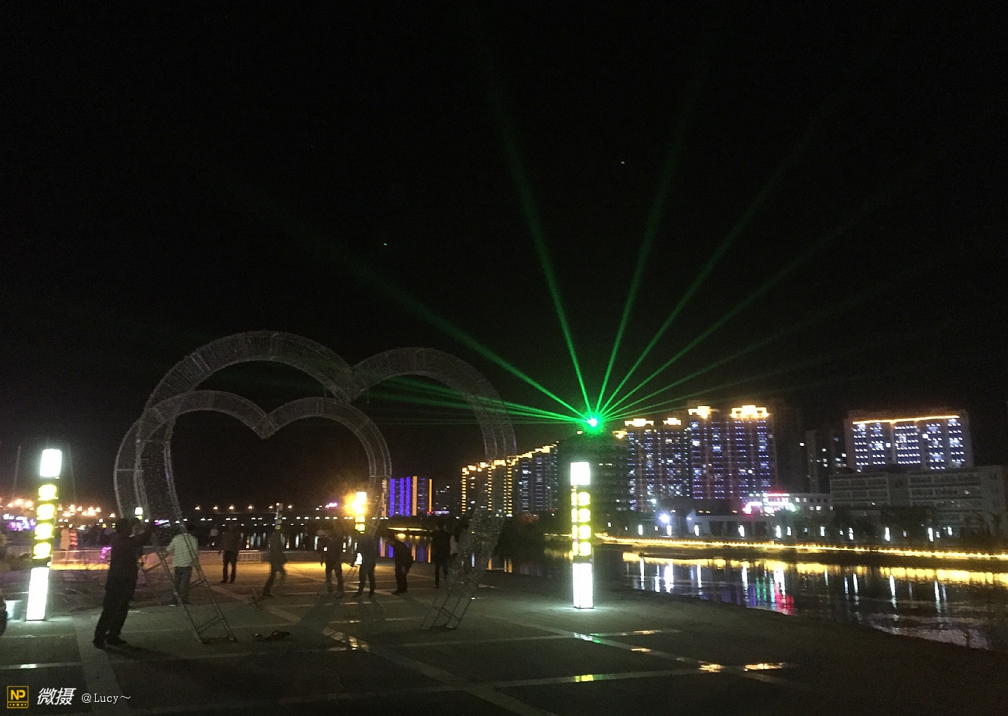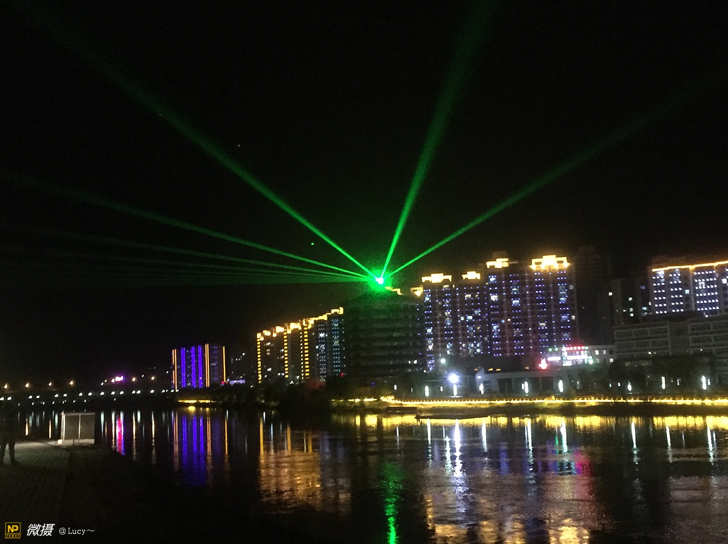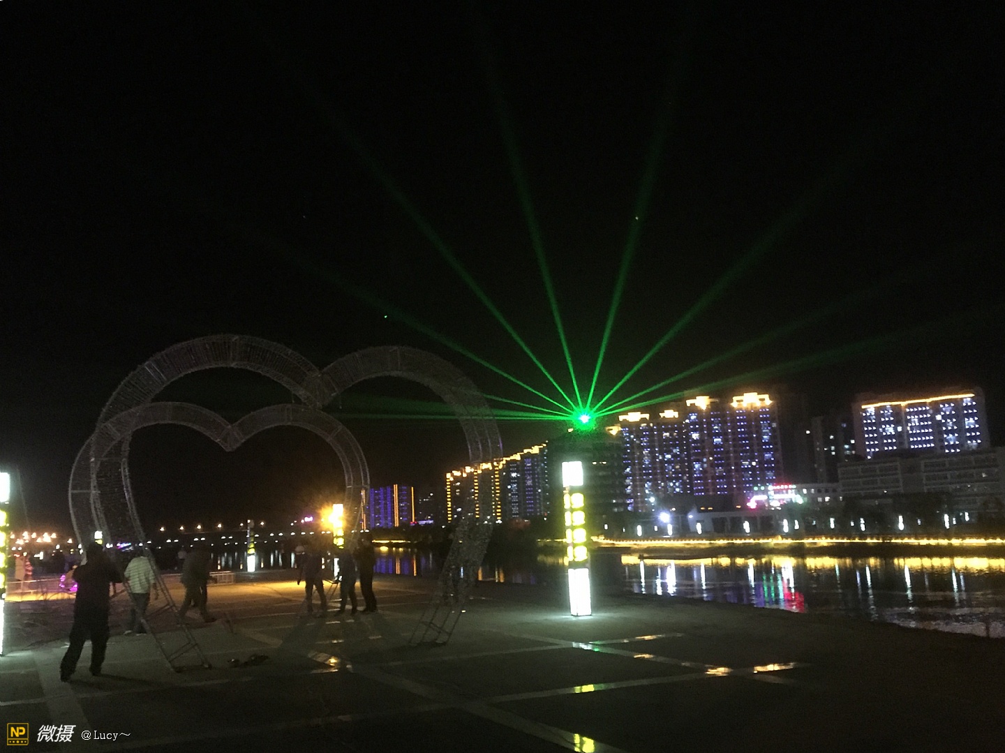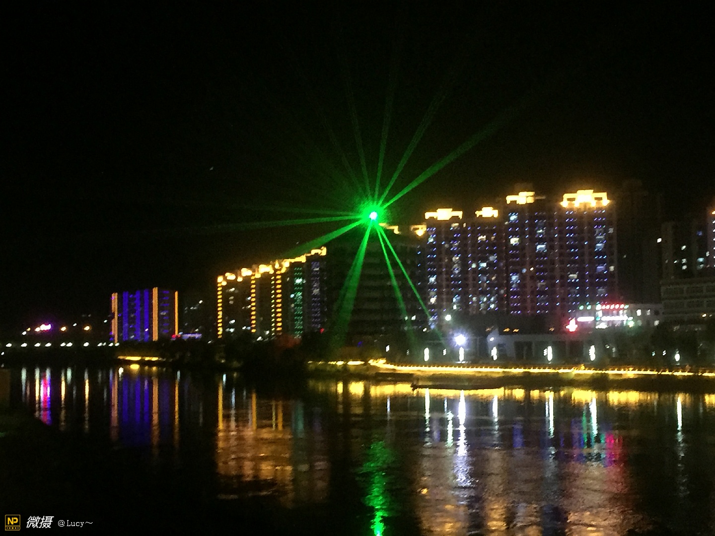 走到这里、突然在一楼顶打出这束绿光来迎合我的拍照、正是太幸运了!