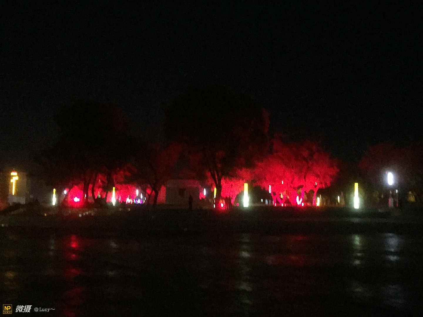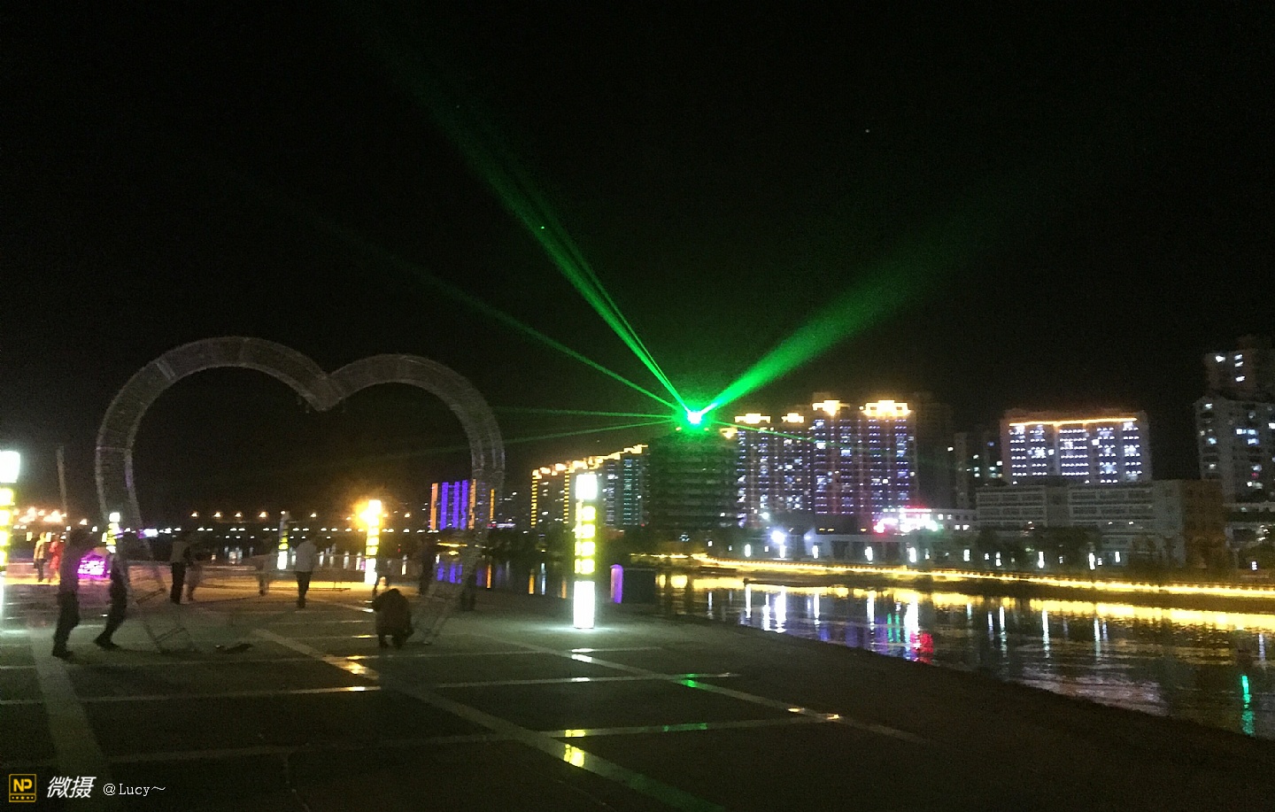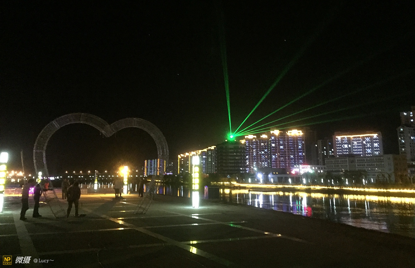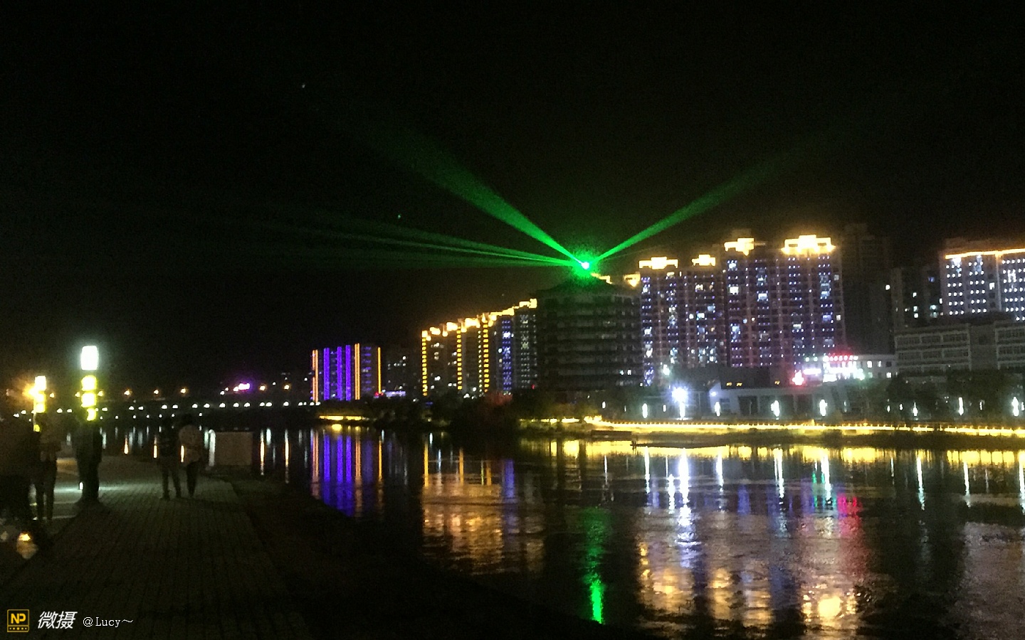走到这里、突然在一楼顶打出这束绿光来迎合我的拍照、正是太幸运了!