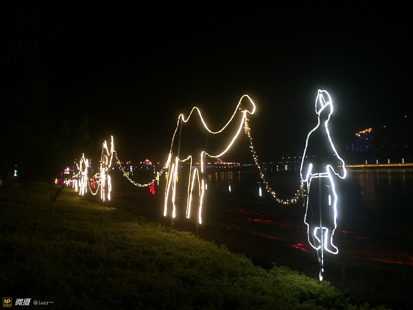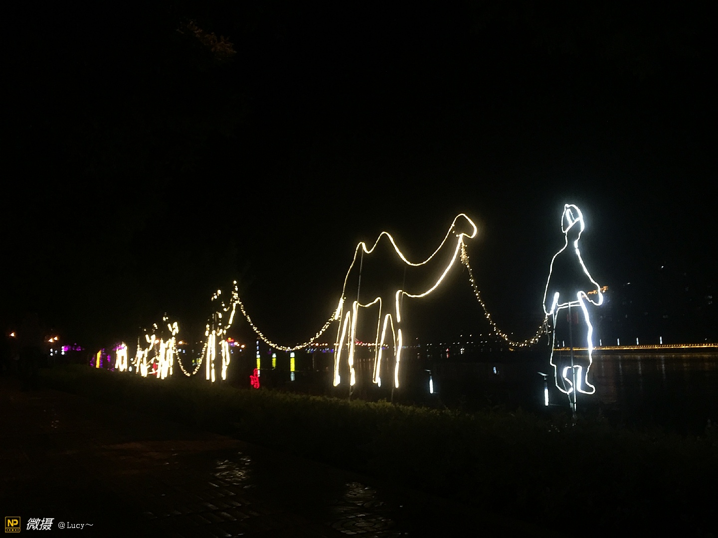 黄河两岸、灯光不停闪烁变化颜色、诠释着夜的迷幻!