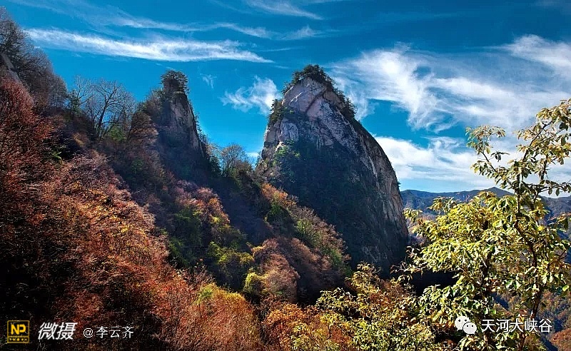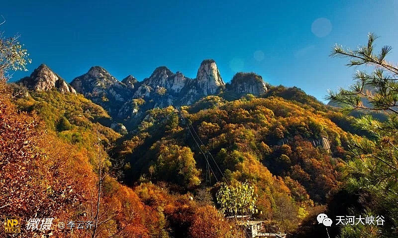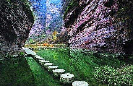 洛阳天河大峡谷景区:是国家4A景区, “天河谷、五圣峰、大鹏山”;四大特色景观:“擎天一柱、大鹏展翅、仙女玉臀、河源盆景”;五大文化典故:“公明降生、刘秀逃难、三霄神话、王母仙宫、伊尹养生”;六大象形奇石:“神牛听涛、宦官乌纱、刘秀倒靴、娘娘问天、天庙奇观、一柱神香”;七大趣味妙景:“一线天、情侣石、试剑石、百花谷、通天洞、云霄凌索、悬空栈道”;八大潭瀑幽境:“神牛潭、碧玉潭、如意湖、神剑潭、听涛潭、饮马湖、九曲连潭、飞龙潭瀑”。奇山、秀水、怪石、幽林构成了一幅绝美的山水画卷。在整个56平方公里范围内,山峦起伏、绵延不尽、登高揽胜、心旷神怡,好一派中原山水风光。尤其最高峰大鹏山,神似大鹏展翅,那鹰钩鼻和胸前羽毛栩栩如生,真担心会一飞冲天;还有元圣峰擎天柱,外形俊朗、挺拔干练,当云海升腾,恰是一柱擎天,可以和天柱山的天柱峰相媲美,直叹大自然鬼斧神工。洛阳天河大峡谷旅游度假区位于洛阳市栾川县叫河镇,距洛阳168公里,郑州290公里,南邻西峡,西接卢氏,经S96洛栾高速、G311国道可达栾川县城,途经S328省道直达.