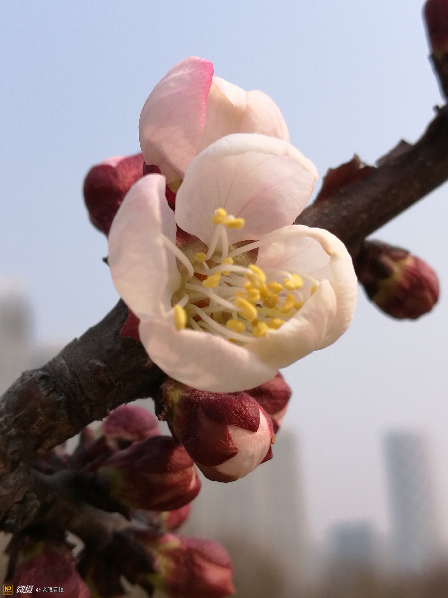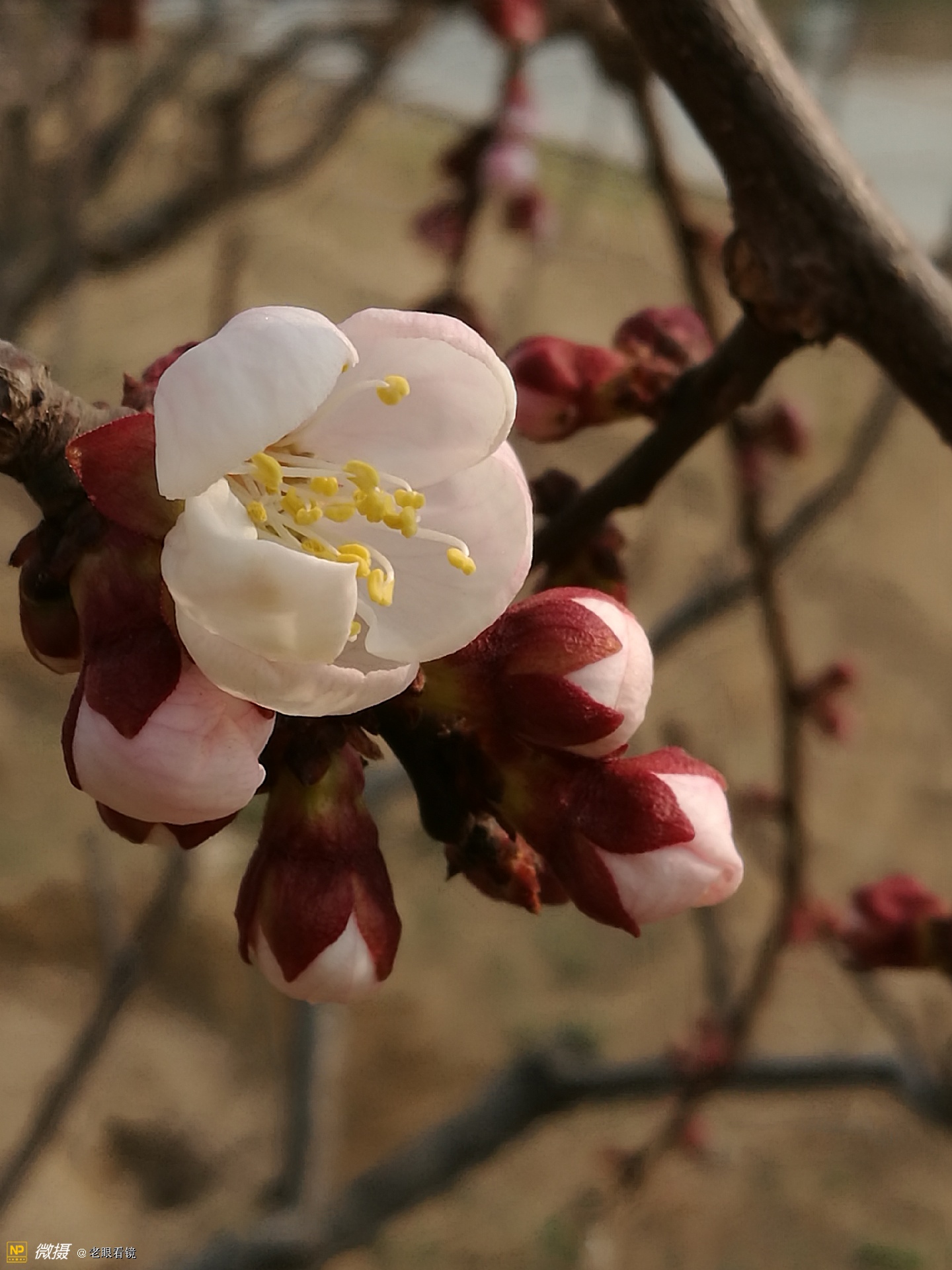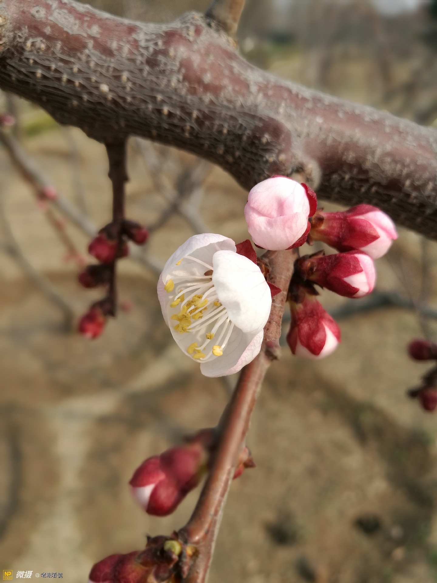 差不多每天都到这里遛弯,两天前还是不大的花蕾,昨天没来,花蕾就变大了,还意外的发现了两朵刚开的小花,真是喜出望外。这里有十几颗梅花,但是叫什么梅花,我却不知道。