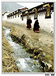 郎木寺并不是一座寺院,而是一个小镇的名字,它横穿四川甘肃两省,被誉为“东方瑞士” 。一条名曰“白龙江”、宽不足2m的小溪从镇中流过,小溪的北岸和南岸有两座寺,一座是甘肃省碌曲县的郎木寺赛赤寺院,另一座是四川省若尔盖县所管辖的格尔底寺院。行走在郎木寺小镇的街头,体验这里藏族人民悠闲地生活方式