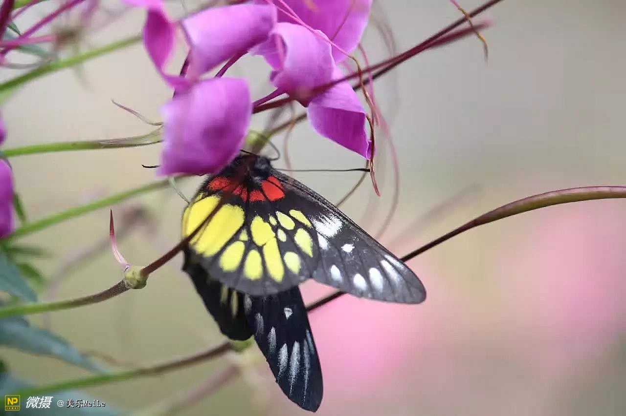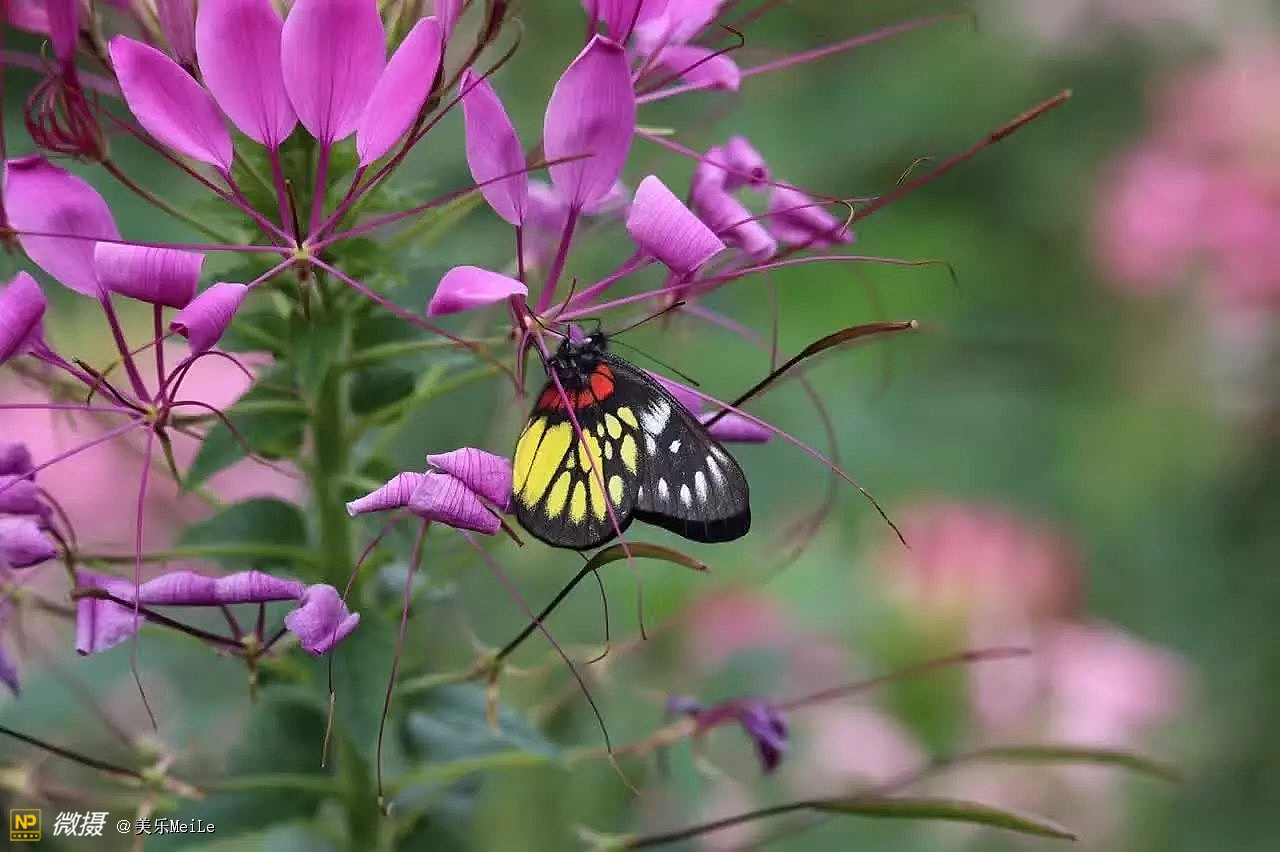 醉蝶花花朵像是一只只飞舞的蝴蝶,招引着蜜蜂来采蜜。虽然花朵的味道不好闻,却是极好的蜜源。这是神秘之一。