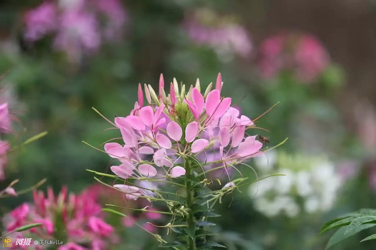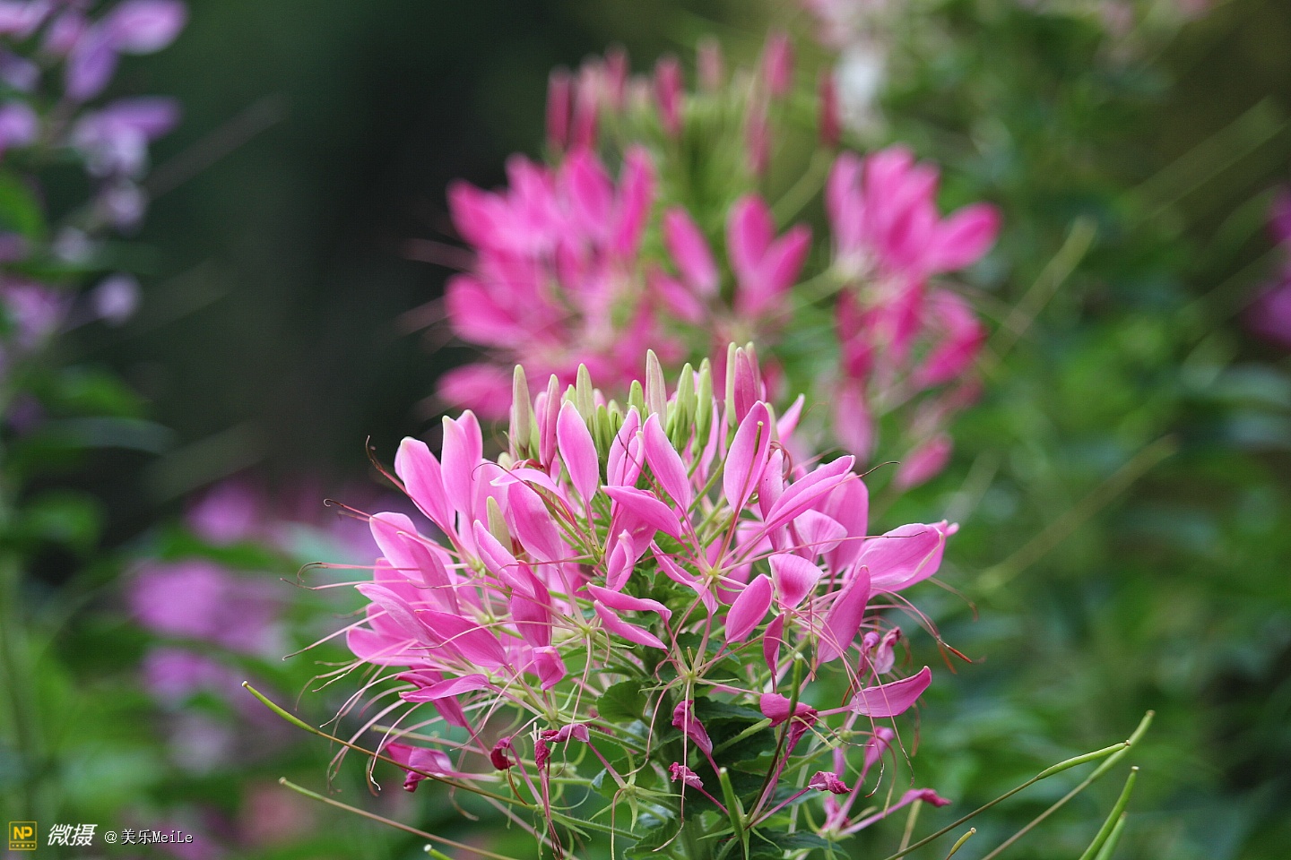 简介醉蝶花(Cleome spinosa Jacq.)又称西洋白花菜,凤蝶草,紫龙须,蜘蛛花。白花菜科、醉蝶花属。醉蝶花的花瓣轻盈飘逸,盛开时似蝴蝶飞舞,颇为有趣,可在夏秋季节布置花坛、花境,也可进行矮化栽培,将其作为盆栽观赏。在园林应用中,可根据其能耐半阴的特性,种在林下或建筑阴面观赏。值得一提的是,醉蝶花对二氧化硫、氯气均有良好的抗性,是非常优良的抗污花卉,在污染较重的工厂矿山也能很好地生长。