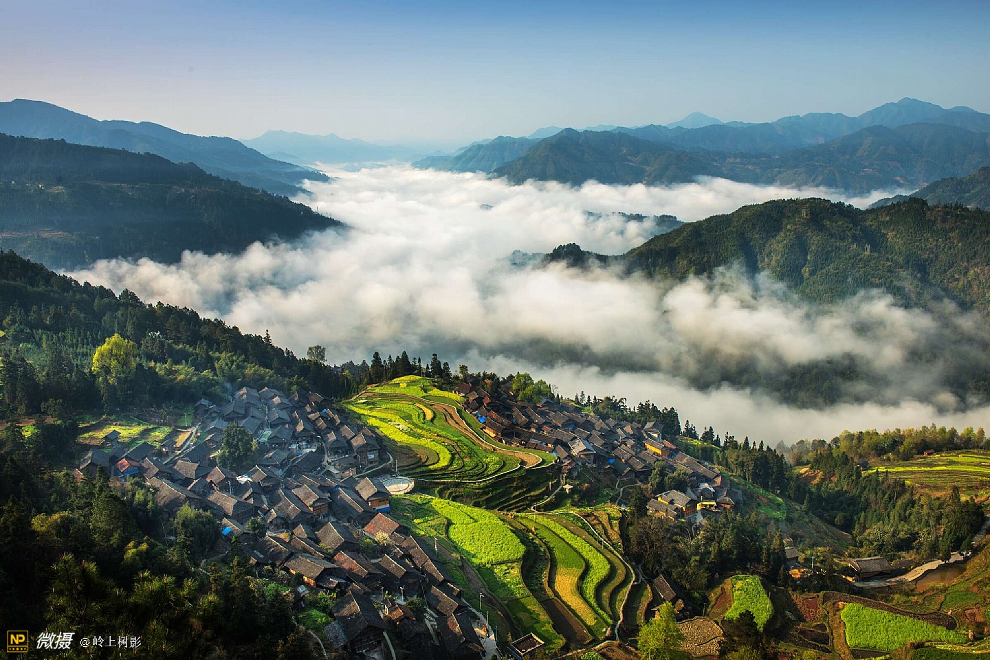 怎雷水族村寨位于贵州省三都水族自治县都江镇。是一个民族文化原生态保留得十分完好的村寨。村子建在半山坡上,因为山高坡陡,村子被高高地托举在坡峰上,高耸入云。村前是悬崖峭壁,河沟深幽,蜿蜒南去的都柳江,留下一河的清澈。这村和那村之间看着近,却被山壑阻隔,有“隔山喊能听,走要一早晨”之说。村里古树成荫,梯田层层,与青瓦老屋互为衬托,交相辉映。200多栋吊脚木屋,高低错落,恢宏气派。看似拥挤不堪,实则层次分明,互不遮挡,整个村寨形似松散却又气韵相连,古朴生动。村里都是山地,无法进行机械化生产,至今还是用牛耕地,镰刀收割,肩挑背扛,刀耕火种。村民们日出而作,日落而息。女人们纺线织布,手工缝衣做鞋,马尾绣、蜡染是祖辈流传下来的手工技艺,男人则以铜鼓舞、古瓢舞、古乐等传承。这些古老的习俗,在该村均保留在极其“原始”的状态下……