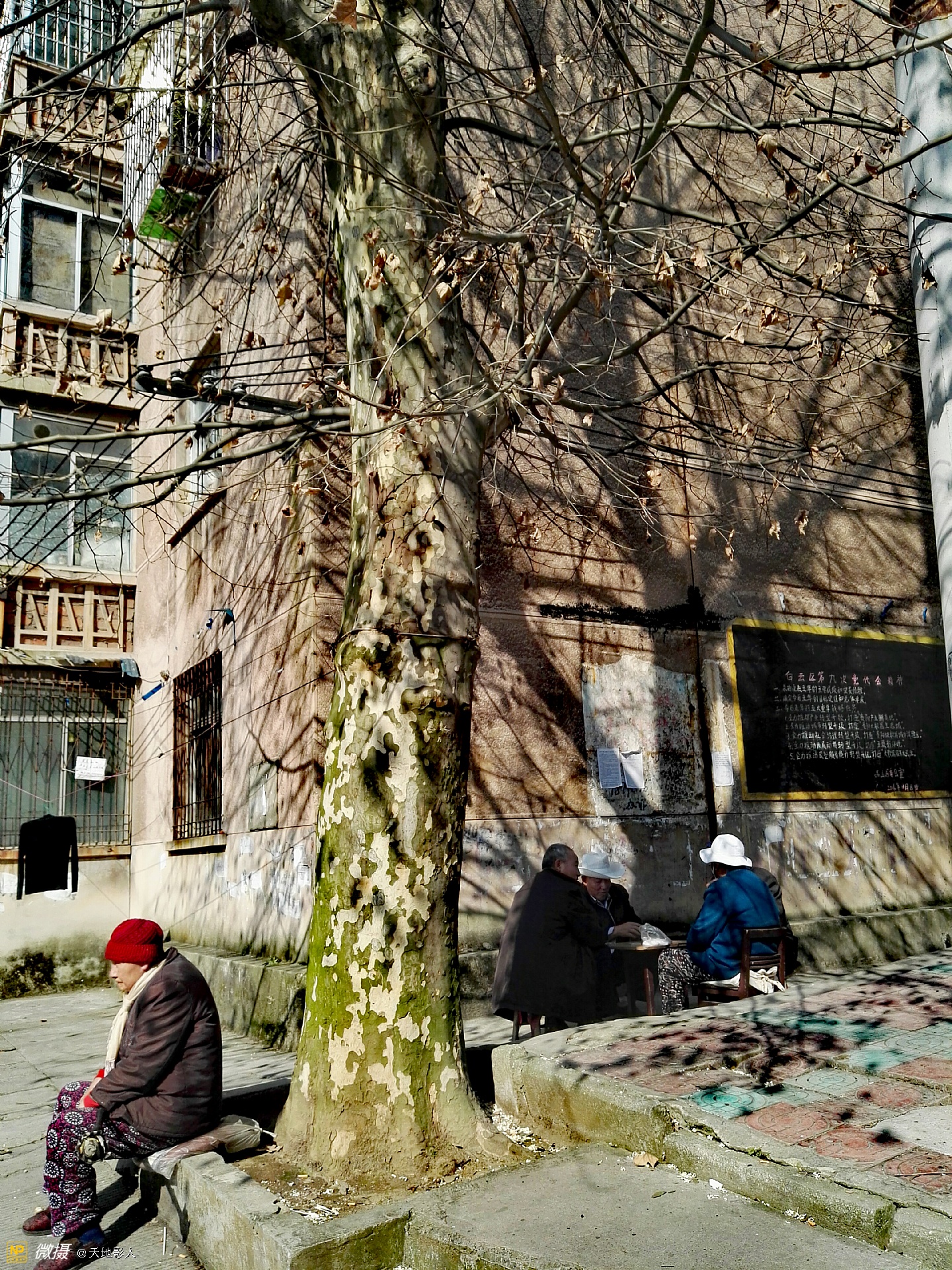 12月10日,贵阳街头,一天见到三个季节的风景。冬日暖阳,老人、老树、老墙。
