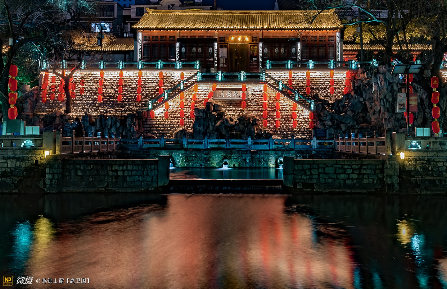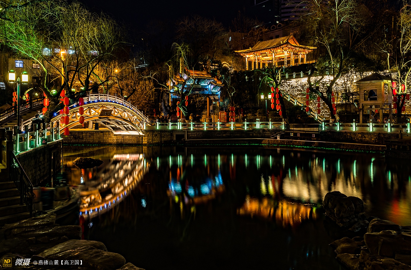 黑虎泉和解放阁在绚丽的灯光下相互辉映