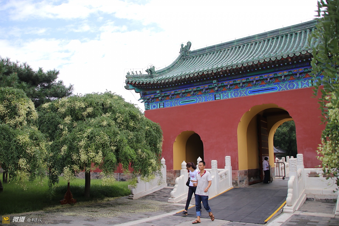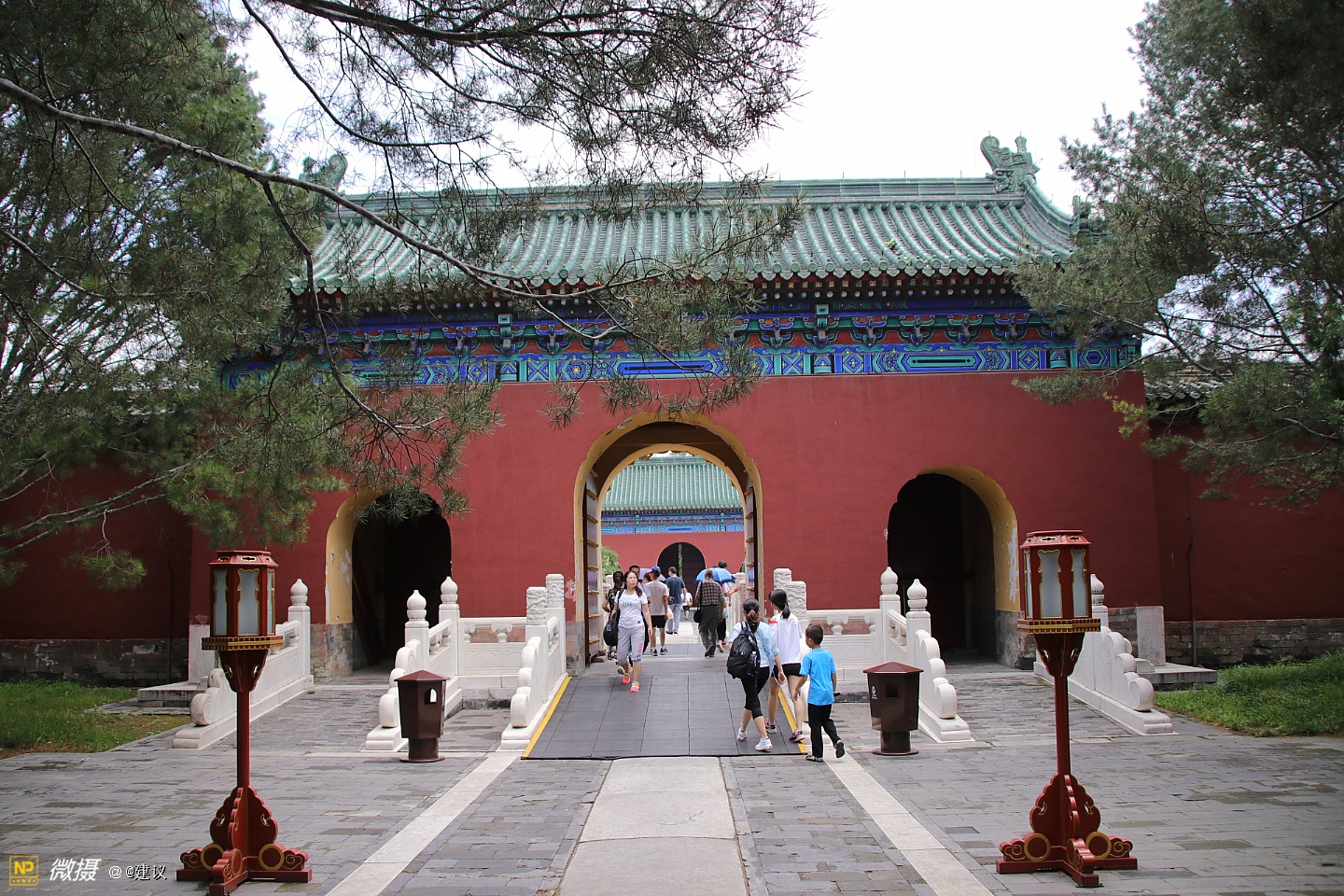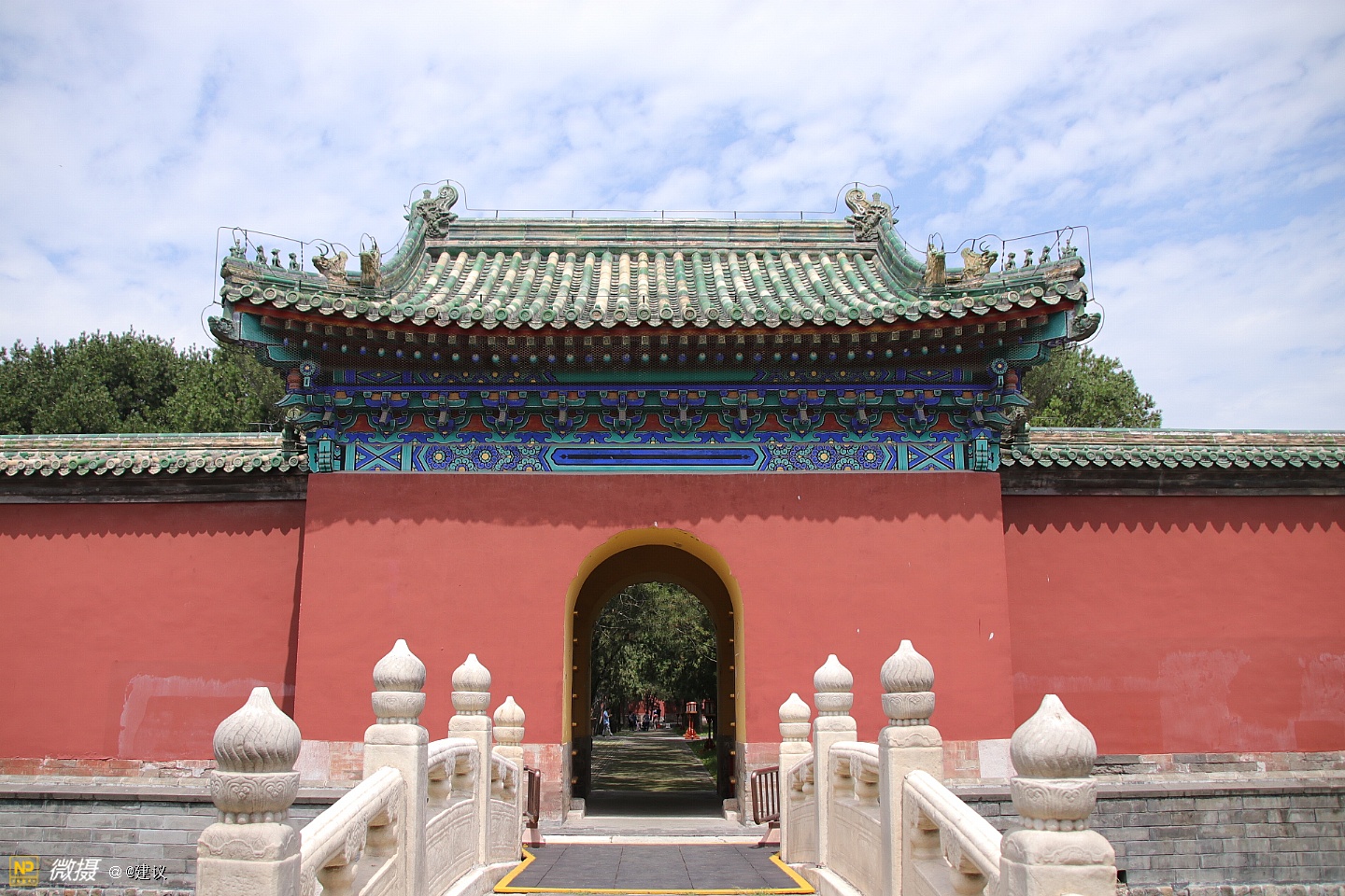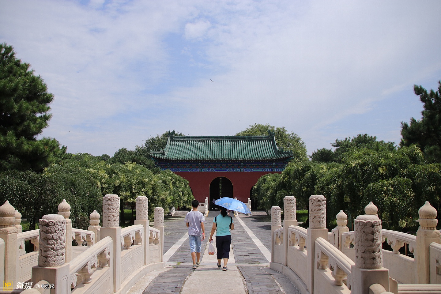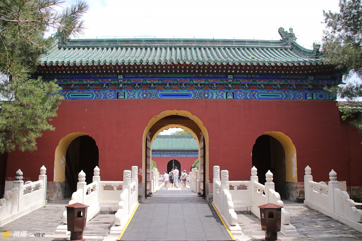 天坛位于北京城南端,是明清两代皇帝祭祀天地之神和祈祷五谷丰收的地方。天坛包括圜丘和祈谷二坛,围墙分内外两层,呈回字形。北围墙为弧圆形,南围墙与东西墙成直角相交,为方形。这种南方北圆,通称“天地墙”,象征古代“天圆地方”之说。外坛墙东、南、北三面均没有门,只有西边修两座大门——圜丘坛门和祈谷坛门(也称天坛门)。而内坛墙四周则有东、南、西、北四座天门。内坛建有祭坛和斋宫,并有一道东西横墙,南为圜丘坛,北为祈谷坛。
