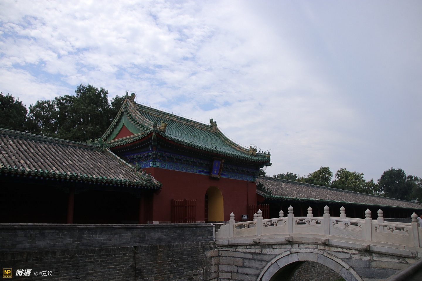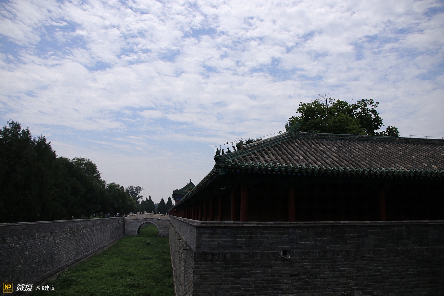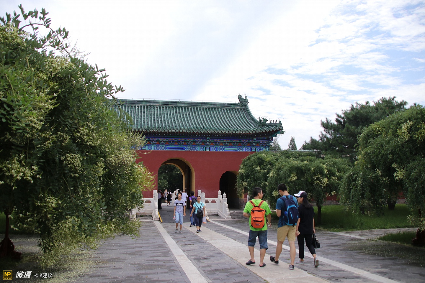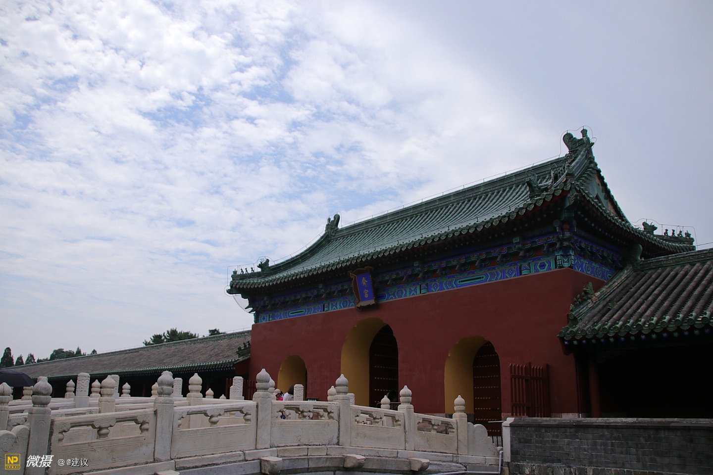 天坛位于北京城南端,是明清两代皇帝祭祀天地之神和祈祷五谷丰收的地方。天坛包括圜丘和祈谷二坛,围墙分内外两层,呈回字形。北围墙为弧圆形,南围墙与东西墙成直角相交,为方形。这种南方北圆,通称“天地墙”,象征古代“天圆地方”之说。外坛墙东、南、北三面均没有门,只有西边修两座大门——圜丘坛门和祈谷坛门(也称天坛门)。而内坛墙四周则有东、南、西、北四座天门。内坛建有祭坛和斋宫,并有一道东西横墙,南为圜丘坛,北为祈谷坛。