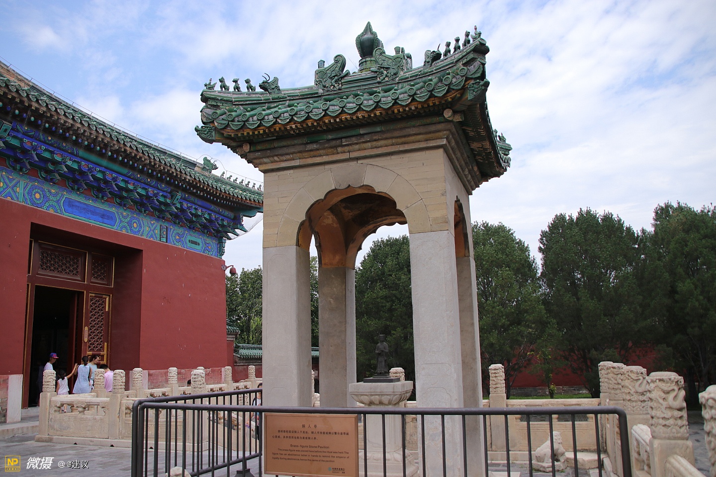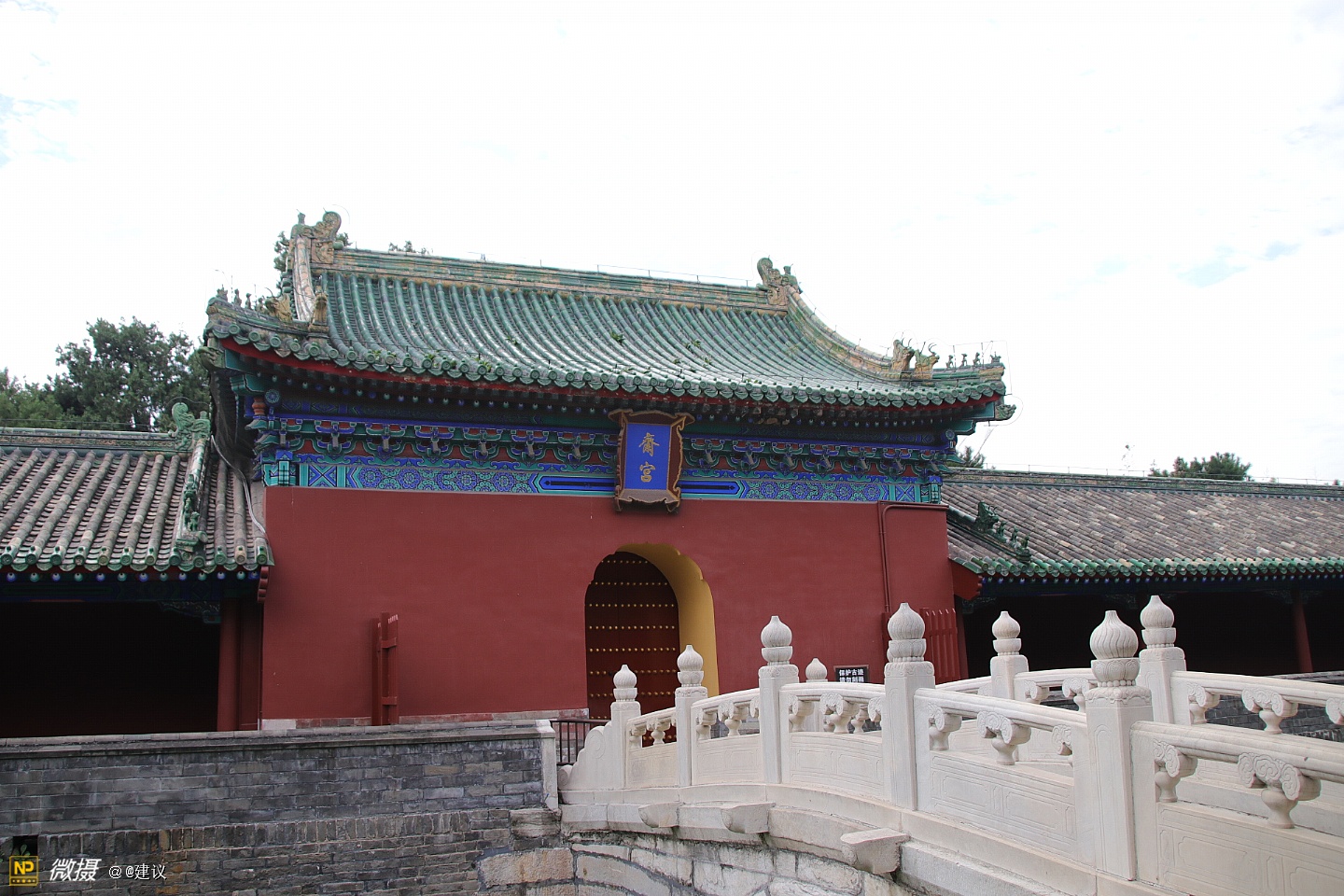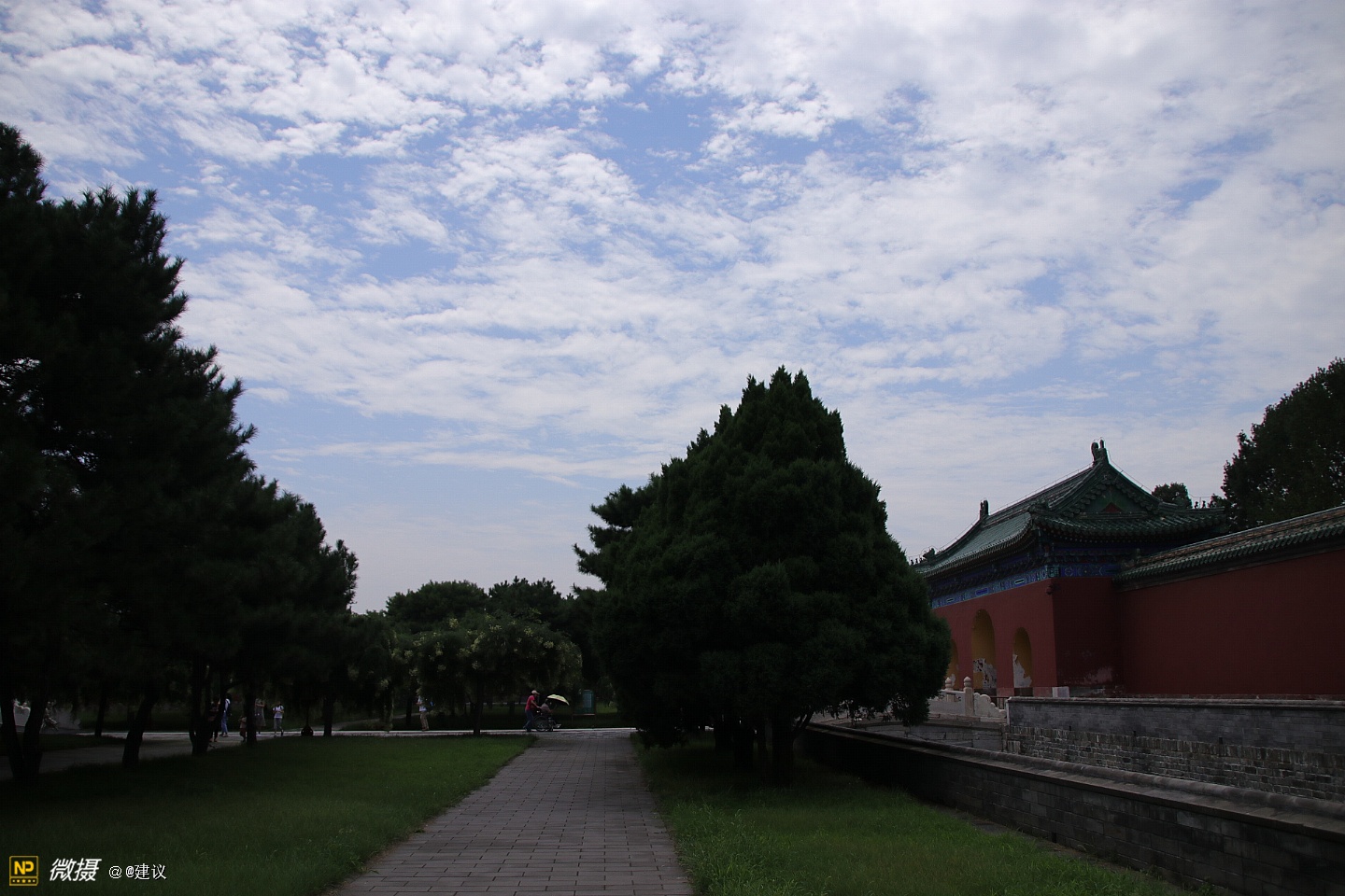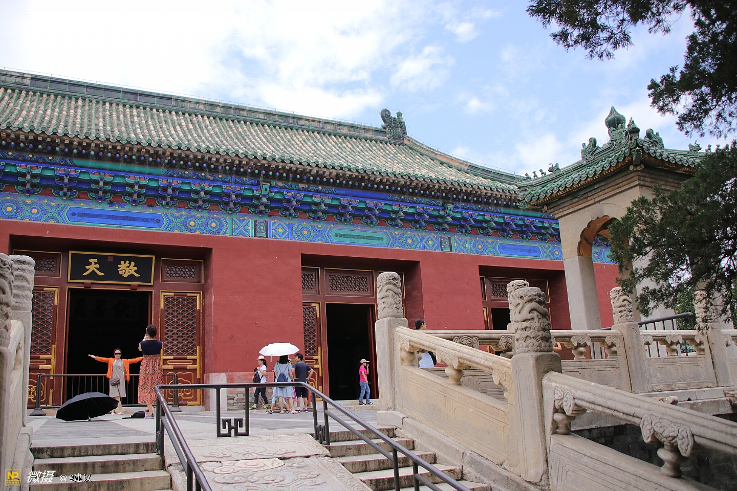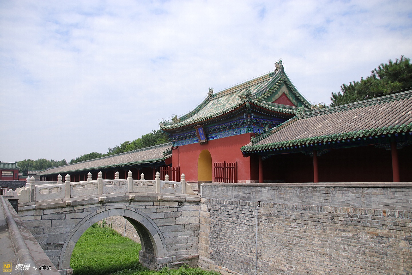 天坛位于北京城南端,是明清两代皇帝祭祀天地之神和祈祷五谷丰收的地方。天坛包括圜丘和祈谷二坛,围墙分内外两层,呈回字形。北围墙为弧圆形,南围墙与东西墙成直角相交,为方形。这种南方北圆,通称“天地墙”,象征古代“天圆地方”之说。外坛墙东、南、北三面均没有门,只有西边修两座大门——圜丘坛门和祈谷坛门(也称天坛门)。而内坛墙四周则有东、南、西、北四座天门。内坛建有祭坛和斋宫,并有一道东西横墙,南为圜丘坛,北为祈谷坛。