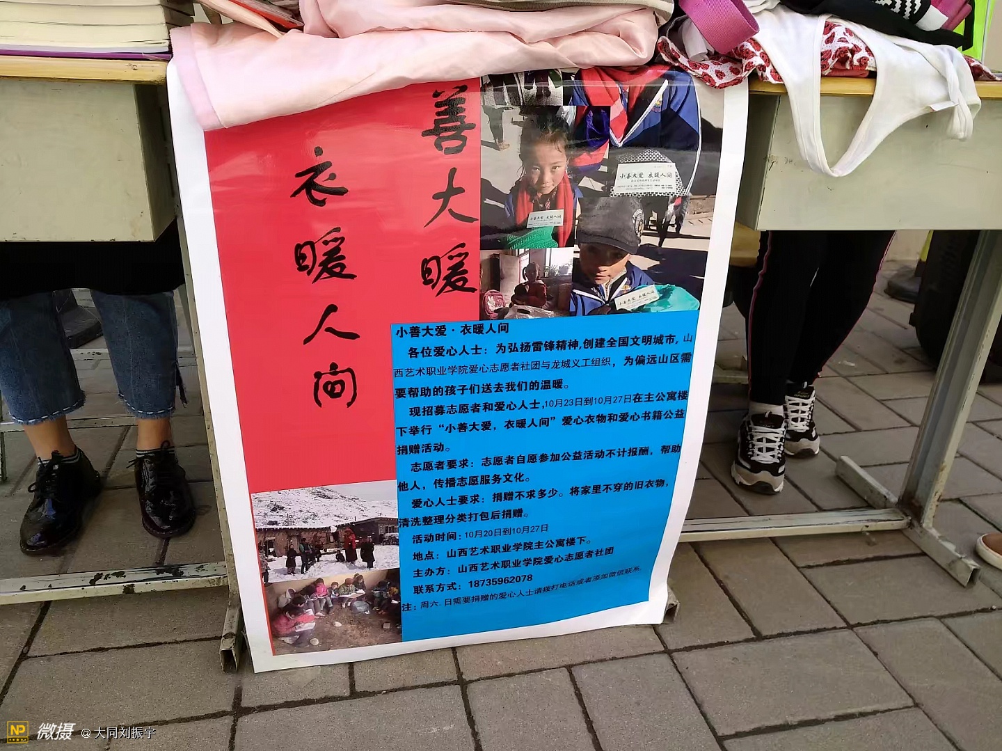 “赠人玫瑰,手留余香”,一件衣物送出一份温暖,一颗爱心带来一份感动。2017年10月23日至27日,由我院学生会爱心社组织发起了“小善大爱,衣暖人间”的爱心捐赠活动,在我院主公寓楼和音乐楼下进行。活动旨在弘扬雷锋精神,发扬扶贫济困、崇德向善的传统美德,为我们国家偏远山区需要帮助的孩子们送去温暖和慰藉!