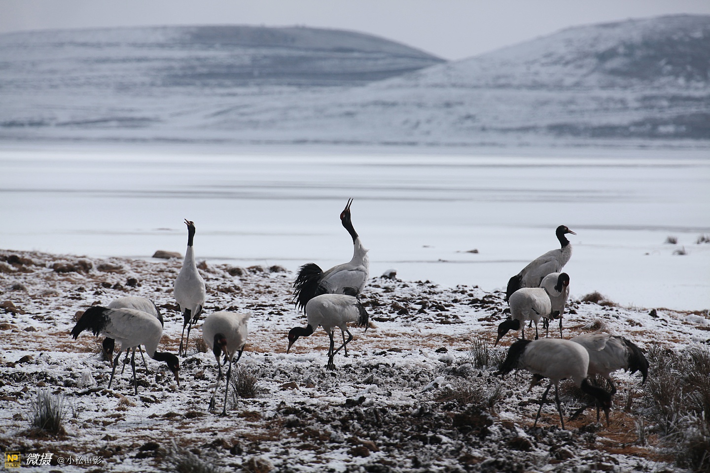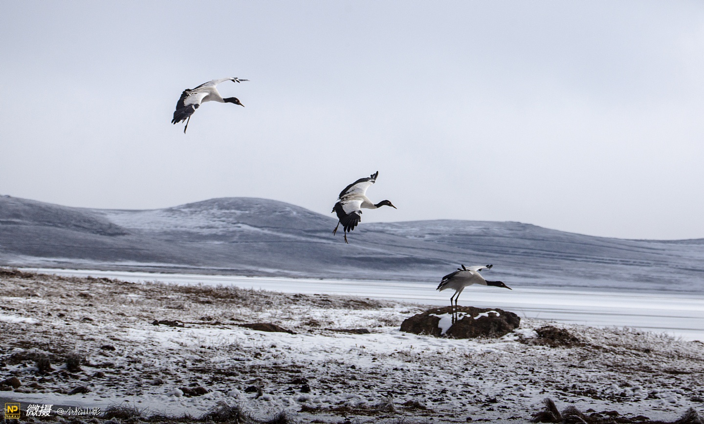 上了高山,步行雪地,冰天雪地里拍摄黑颈鹤的滋味那叫爽!
