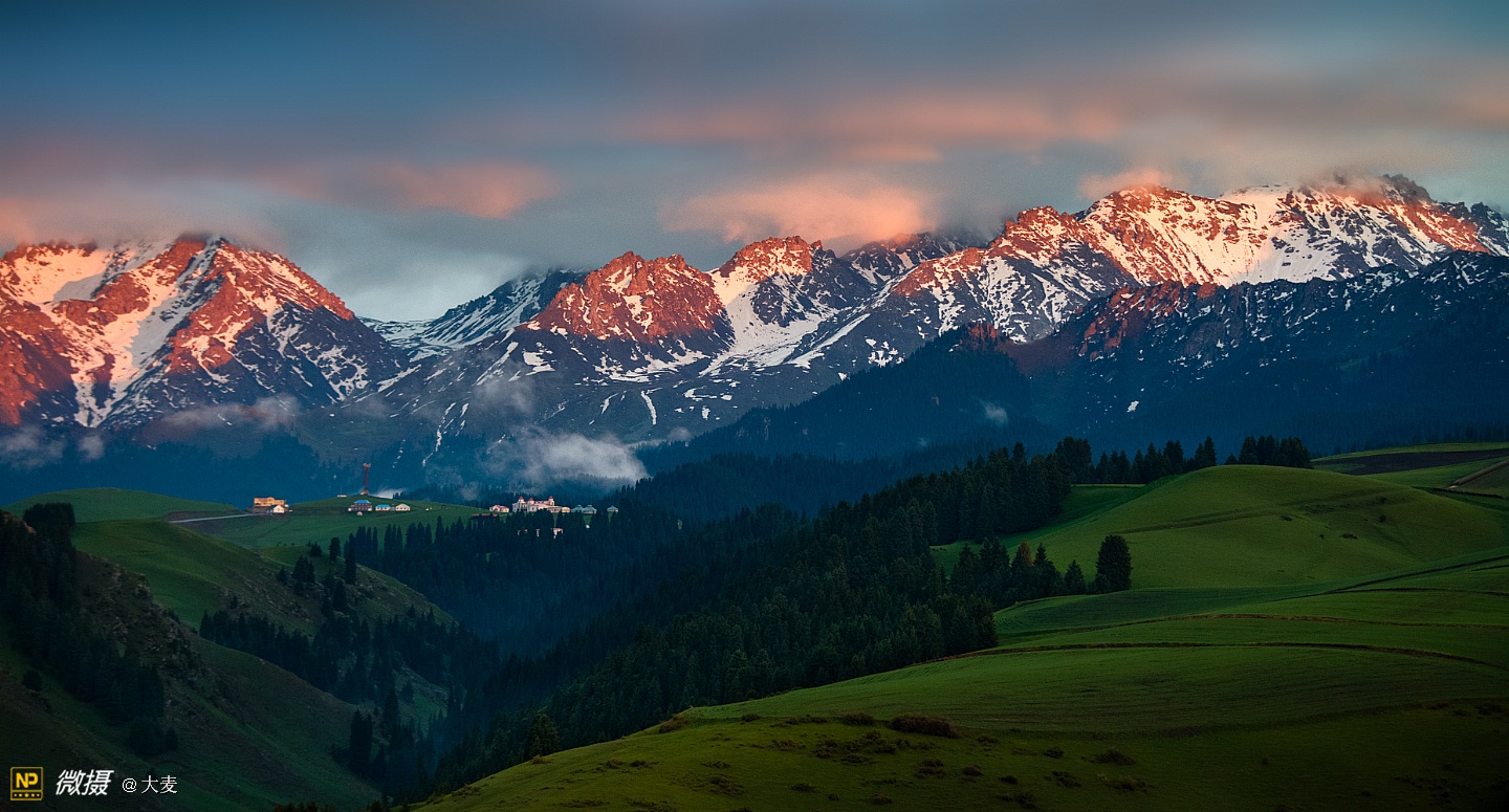 江布拉克是哈萨克语,意为圣水之源。她集结了天山之灵气,并融入诸多美丽的传说。在这里,远山近水相映,林海雪峰交融,绿波花海如潮,一派圣洁的自然风光。