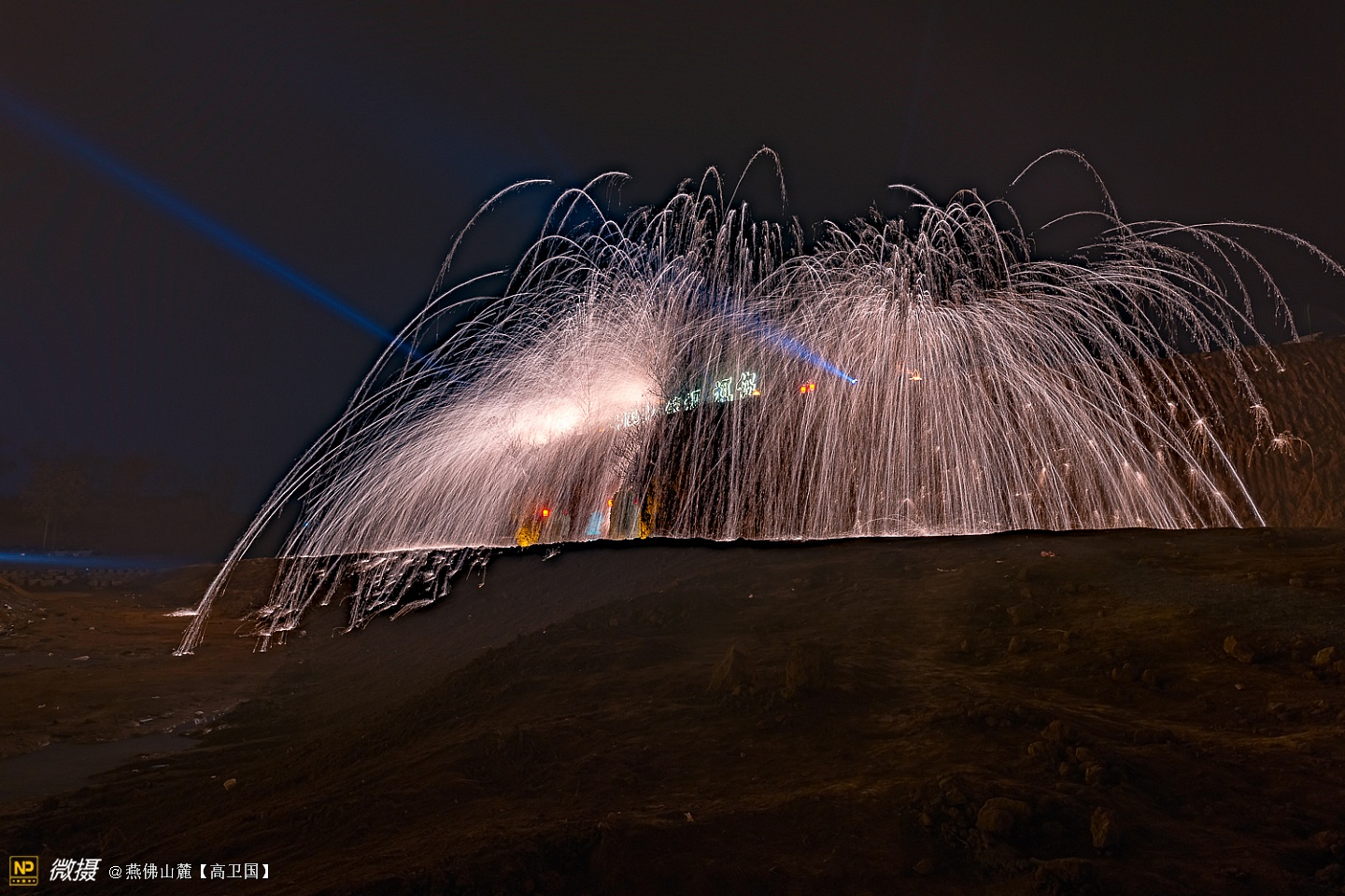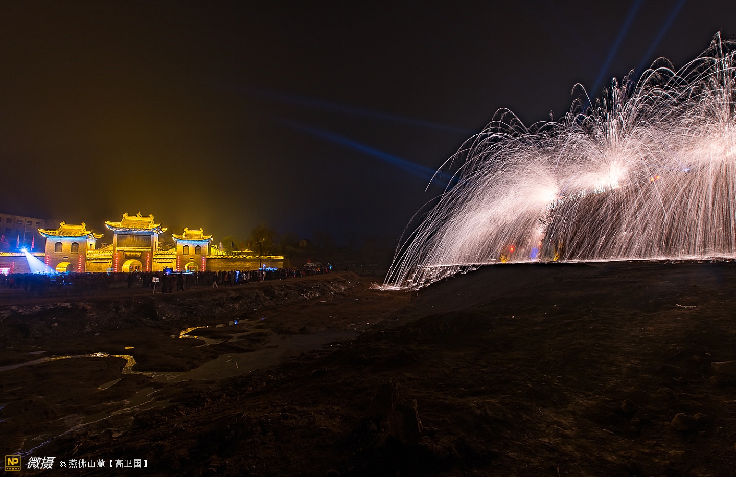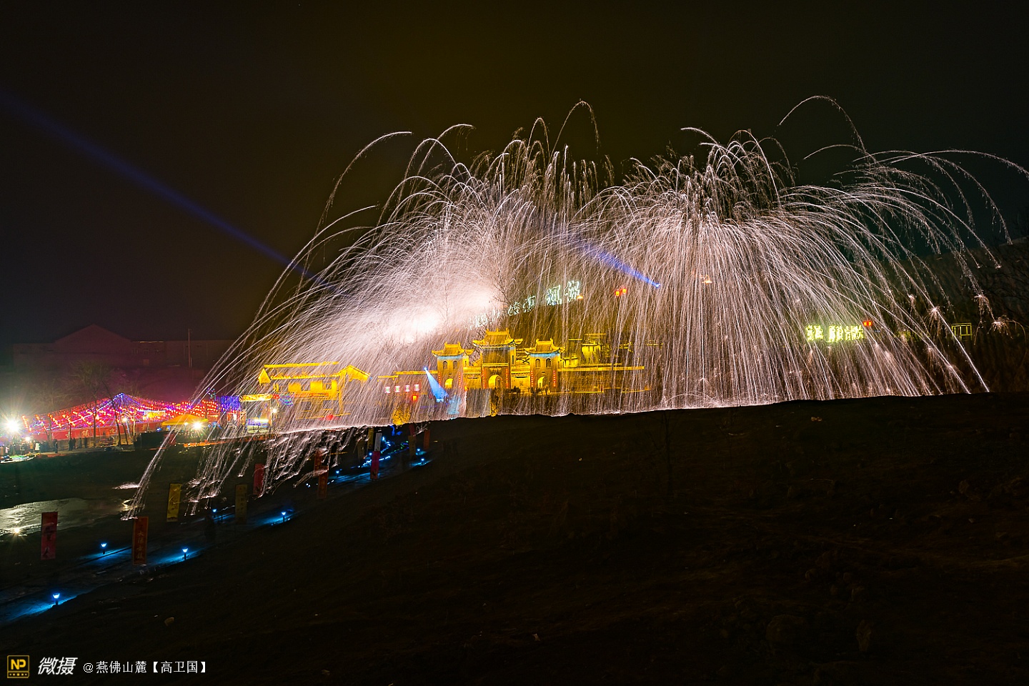 初三,我们来到了山西晋城的大阳古镇,第一次见到了打树花的活动。打树花是晋冀地区地方传统民俗文化活动,具有特色古老节日社火,至今已有500余年历史,是用熔化的铁水泼洒到古城墙上,迸溅形成万朵火花,因犹如枝繁叶茂的树冠而称之为"树花",其壮观程度不亚于燃放烟花。