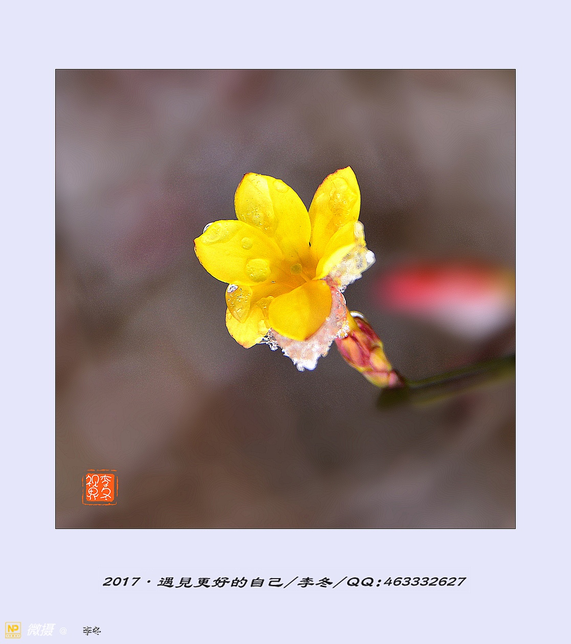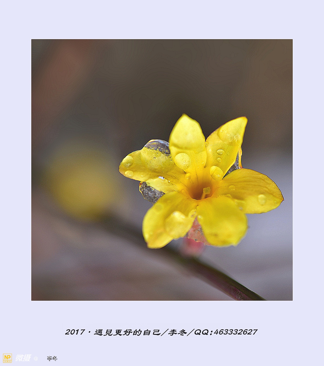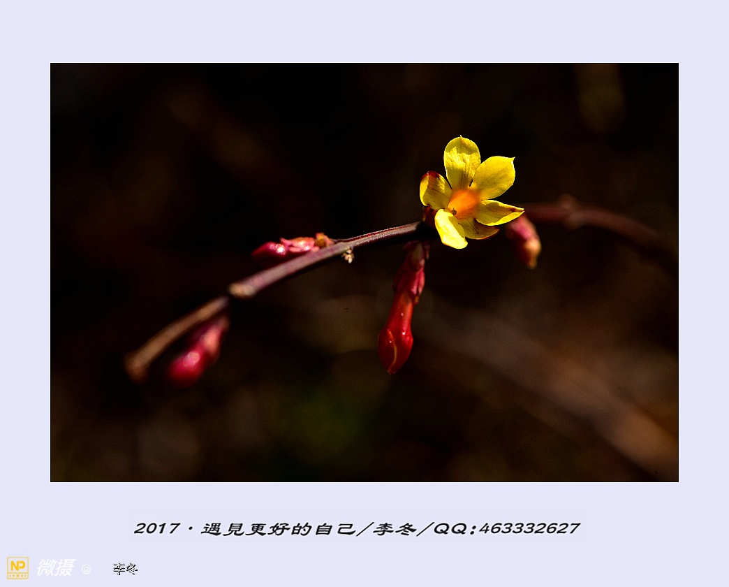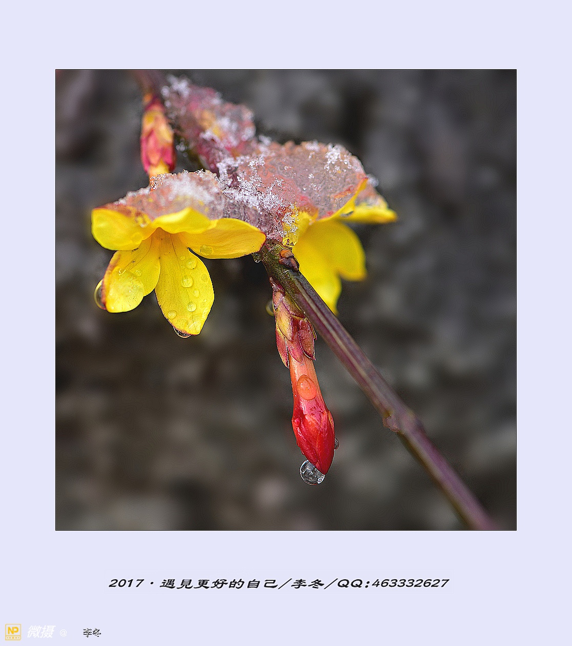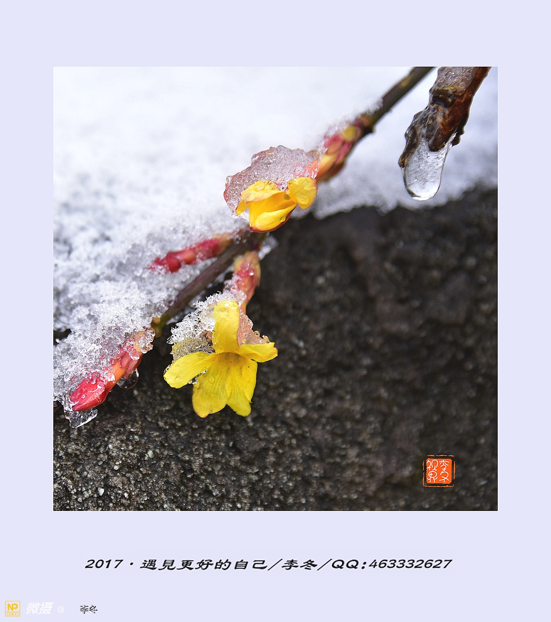 宋?韩琦《迎春花》覆阑纤弱绿条长, 带雪冲寒折嫩黄。迎得春来非自足, 百花千卉共芬芳。