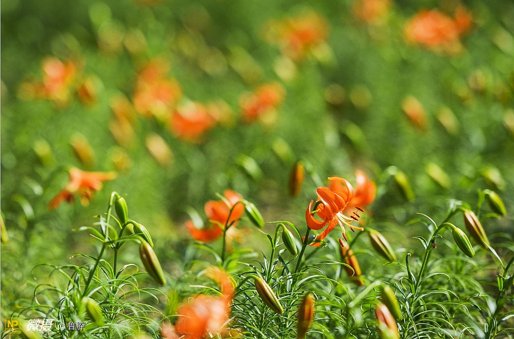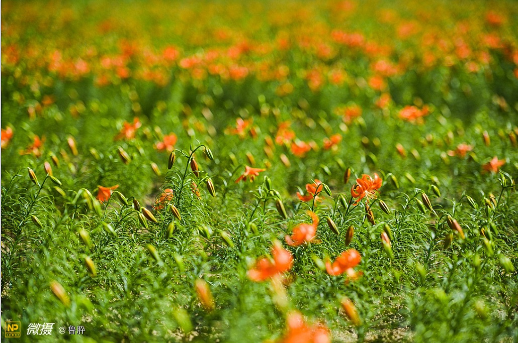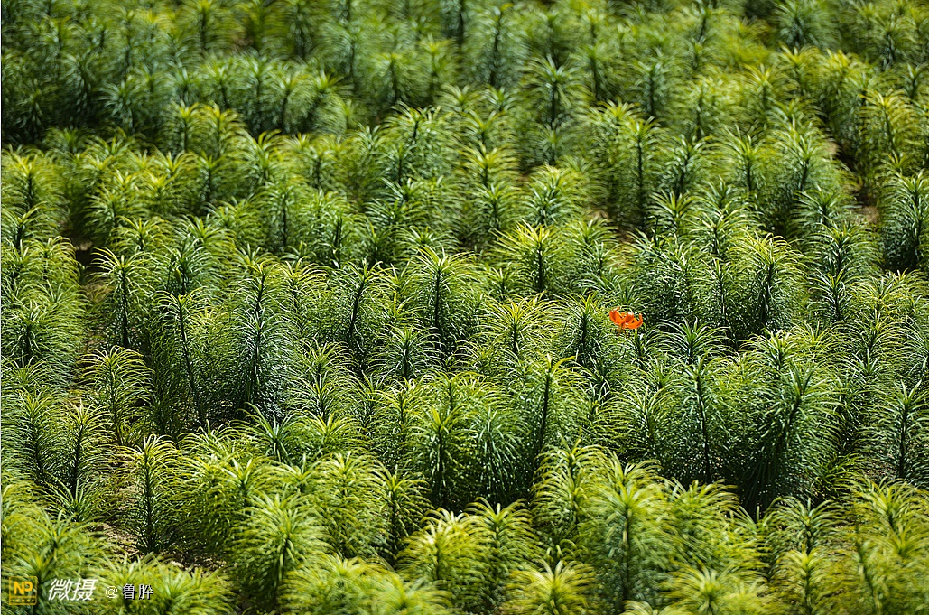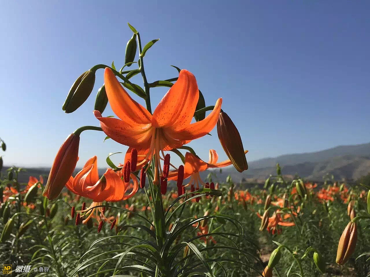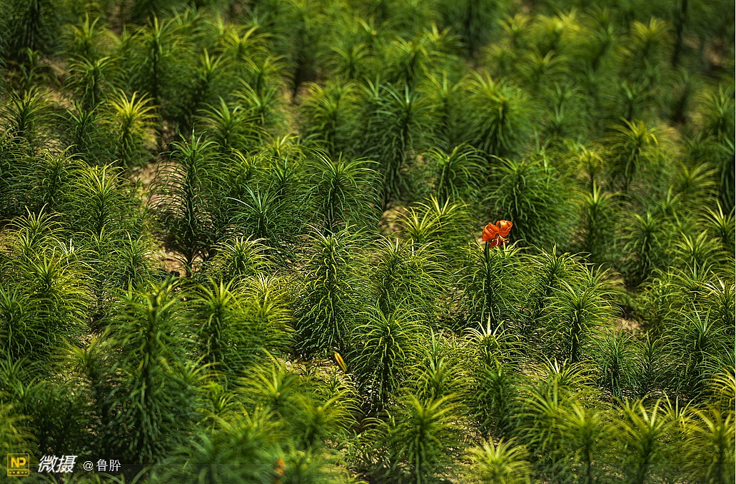 为保百合的茁壮成长,农户会及时将盛开的花朵摘掉!瞧,这朵幸免于难而万绿丛中的分外妖娆!