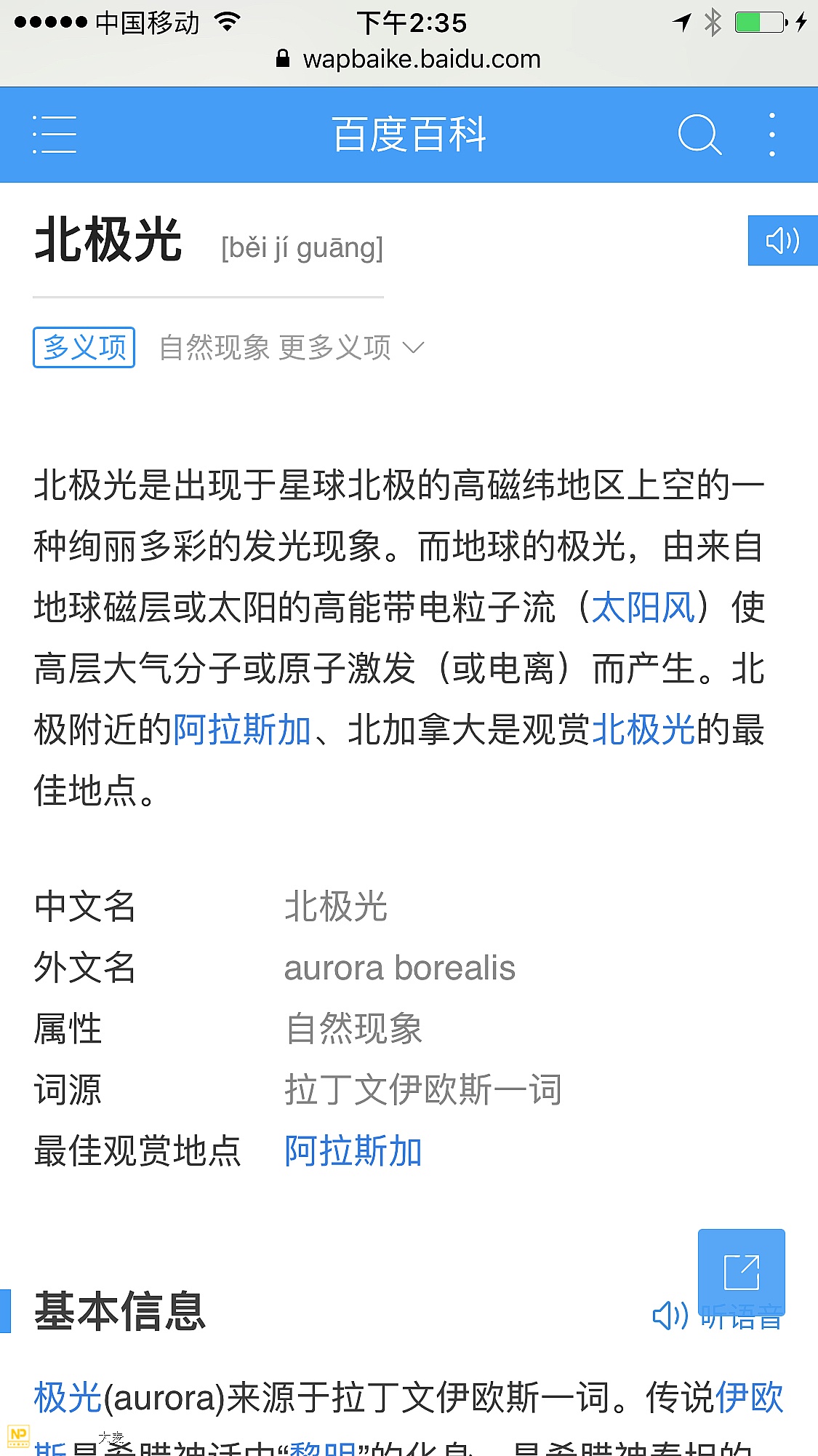百度上搜索发现加拿大是观赏北极光的最佳地点之一