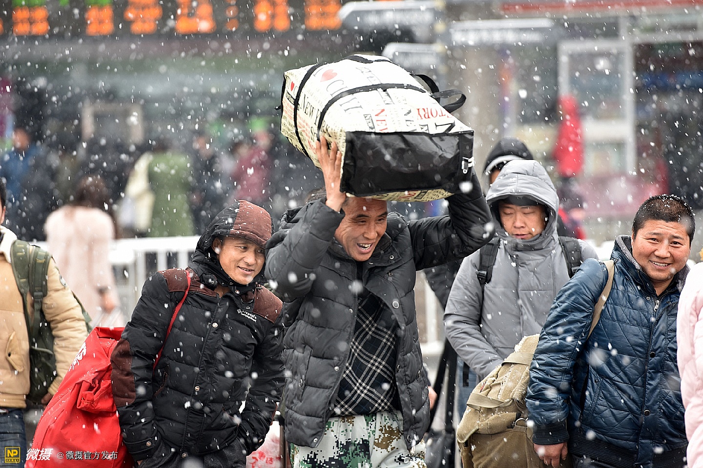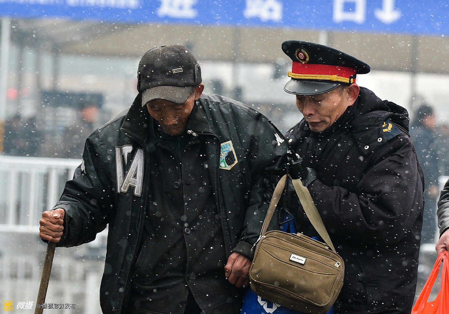 “微摄杯” 2017中国春运摄影大赛优秀奖获奖作品:《飞雪送人归》作者:范友谊