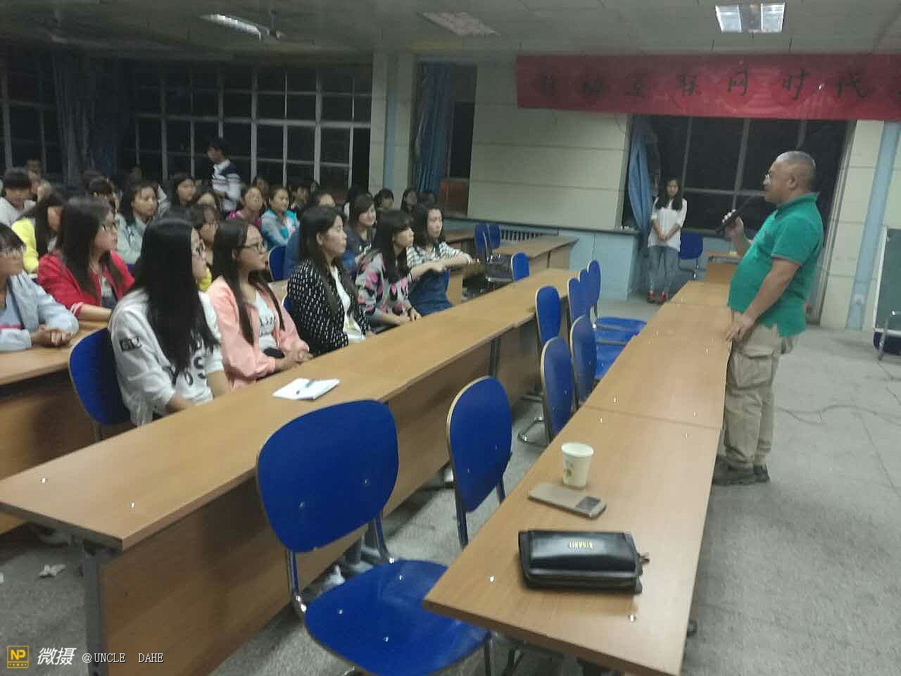 太阳落山了,拍摄结束了。简单吃过晚饭后又前往甘肃工业技术学院为财金专业的200多名学生做了题为《移动互联网时代与青年的未来》精彩演讲。