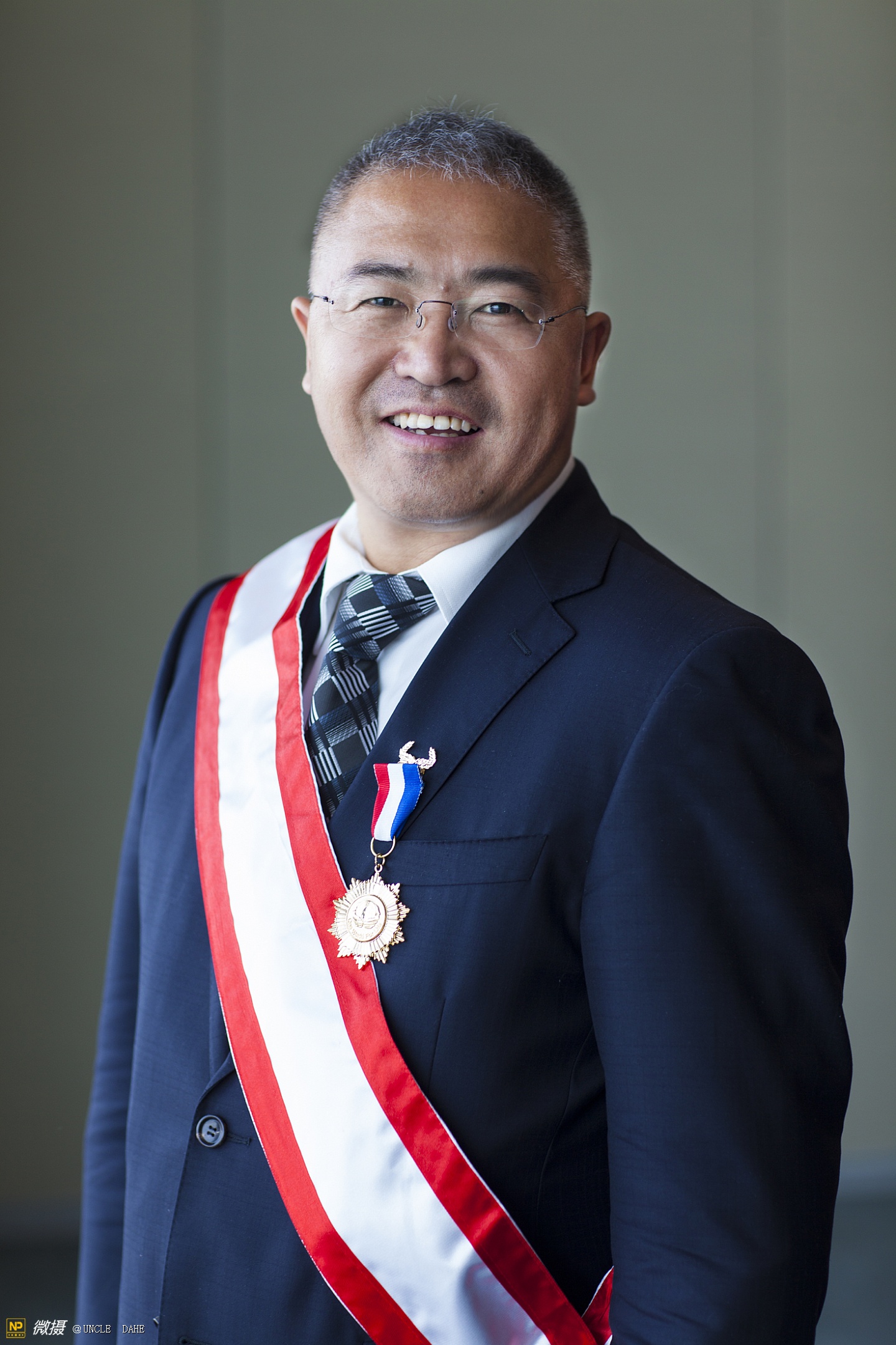 何世红(UNCLE DAHE)简介:中国金融家与企业家七大洲问计低碳经济行动发起人,金融企业家、摄影艺术家、环保事业推动者,中国低碳经济代言人。中国金融网、金融网、国家摄影、欧洲金融时报、图片银行、微摄创始人,现任国际金融服务集团(UFS)董事局主席,亚洲金控(AFH)董事局主席,国家摄影(NP)主席。2009年—2011年率领“中国金融家与企业家七大洲低碳经济行”行动组走遍七大洲,将低碳经济的理念推广到86个国家和地区,受到国际社会的高度关注和广泛好评,被誉为“一个中国公民给世界的低碳长征”。在业界,他被公认为“在金融界最懂摄影,在摄影界最懂金融的人”,他积极倡导保护环境、倡导低碳经济、倡导低碳生活的责任如今已经成为人们的一种行动。2011年担任低碳经济合作与发展组织执行主席;2014年担任金融发展与风险管理组织执行主席;2012年4月获得达盖尔奖;2015年7月荣登全球华人榜;2016年5月25日在联合国总部被世界联盟(One World for Life)授予全球最高荣誉大绶勋章。(注:这张照片由纽约摄影师Nadia Lin女士2016年5月25日在纽约联合国总部绶勋现场拍摄)