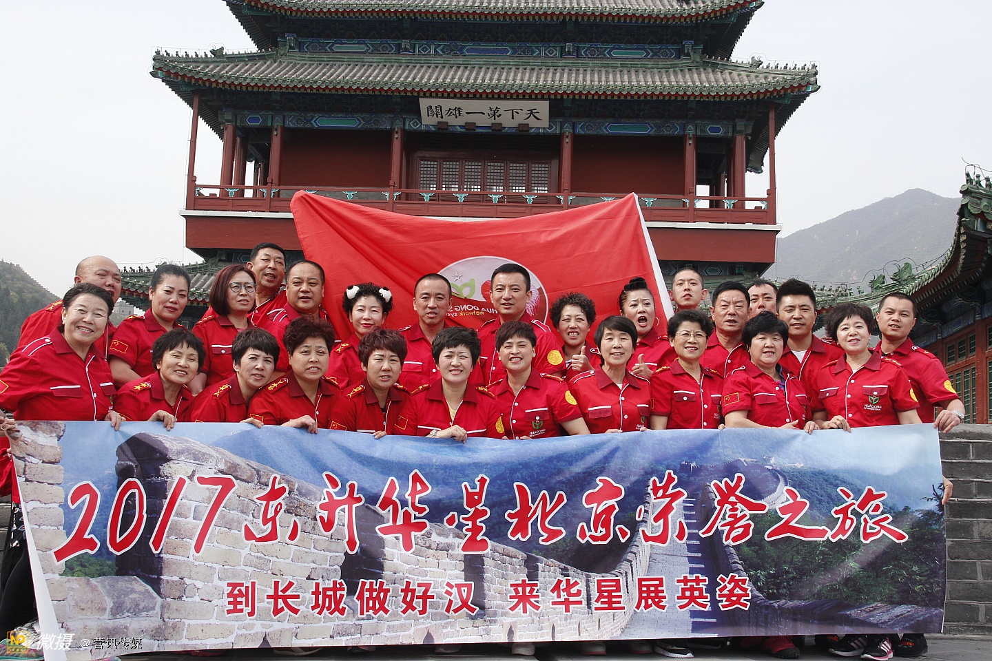 东升伟业华星国际系统红色军团代表欢快长城之旅,登上长城最高峰,弘扬祖国传统文化