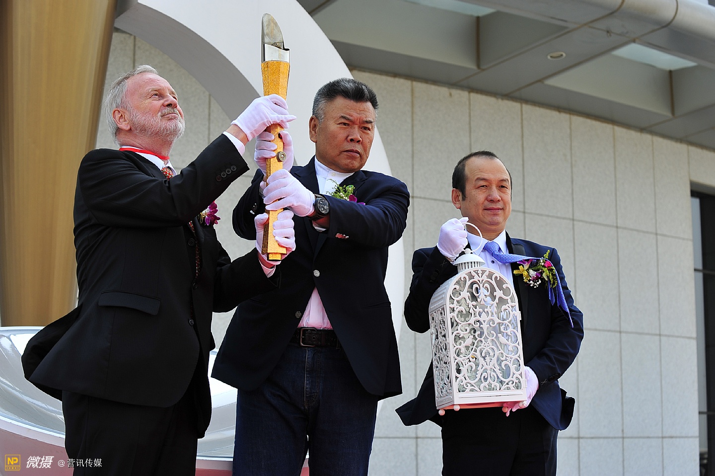 第八届国际DNA节圣火采集仪式在活动永久性会址珍奥双迪生物谷隆重举行。陈玉松首先将火炬点燃,与米歇尔博士双手高举火炬示意。