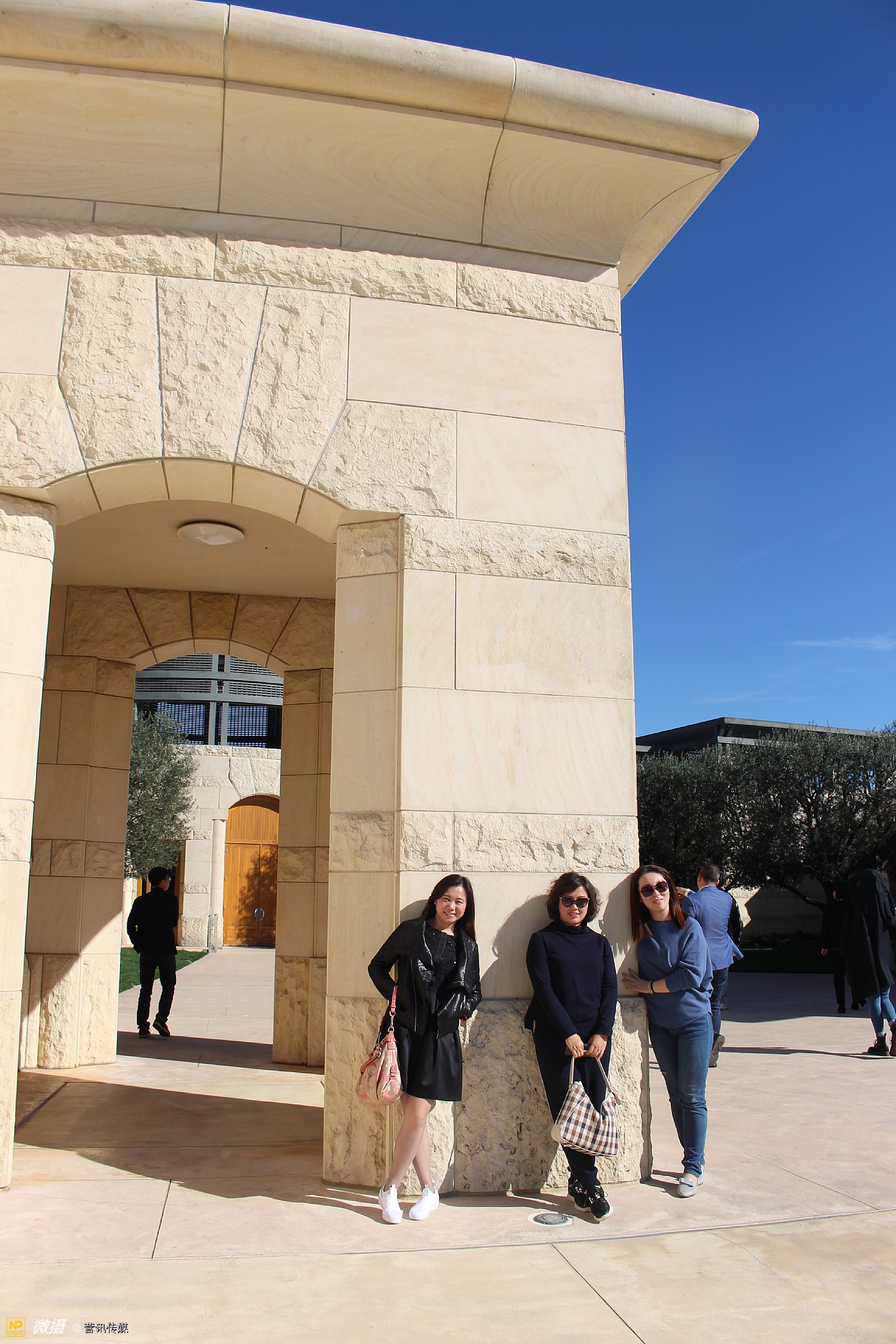站在墙前的三人
