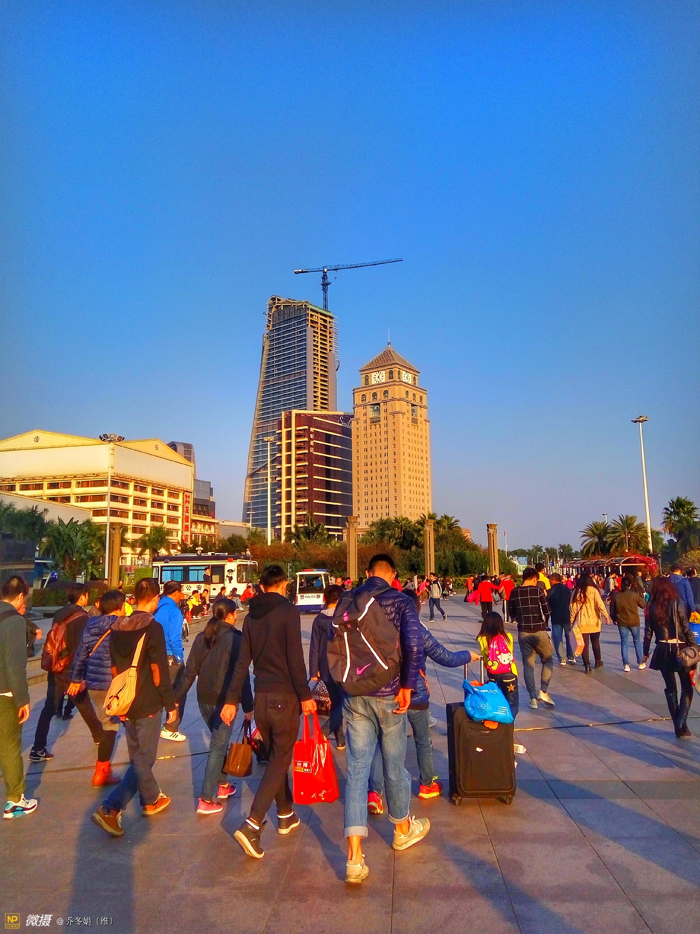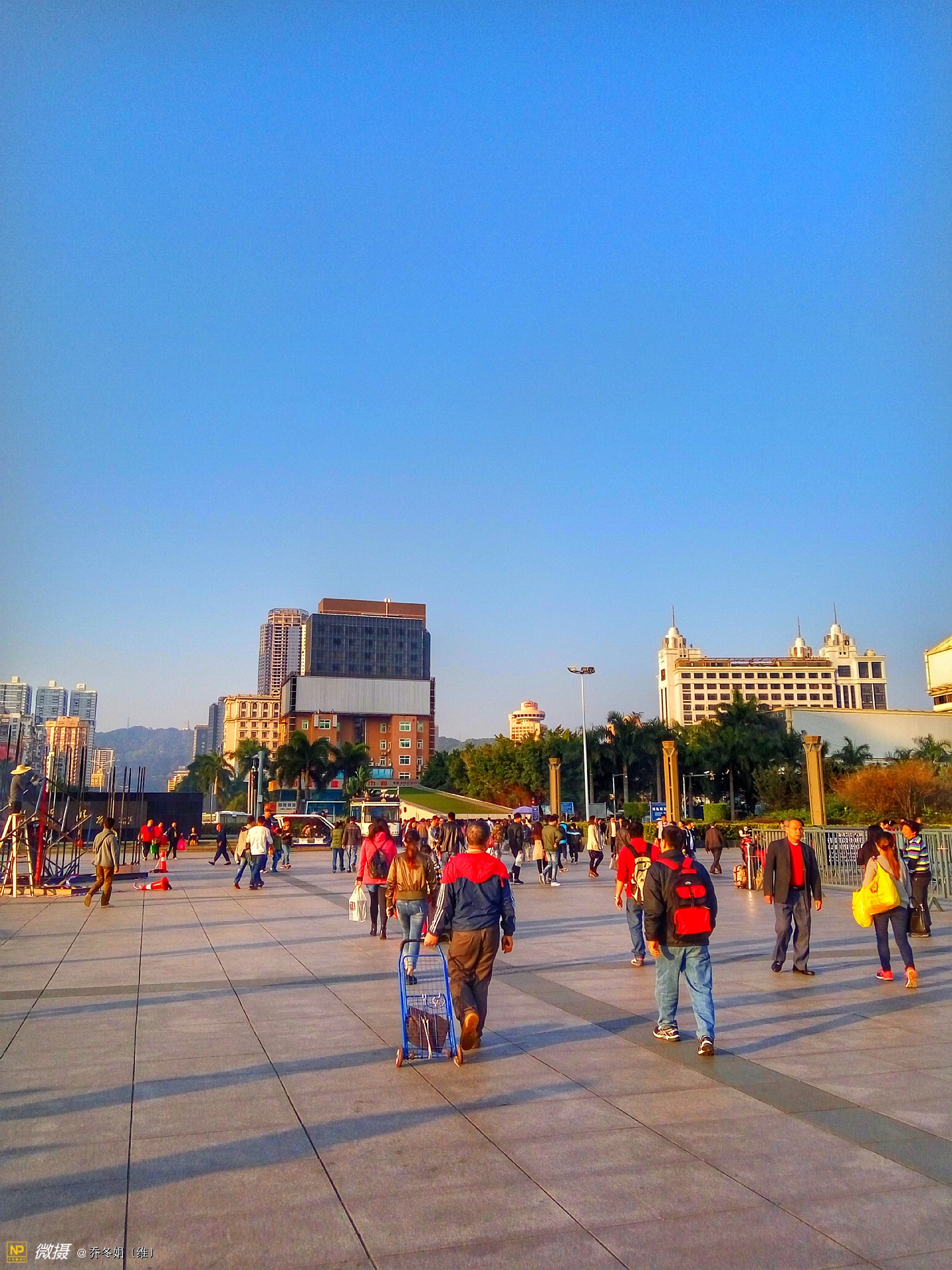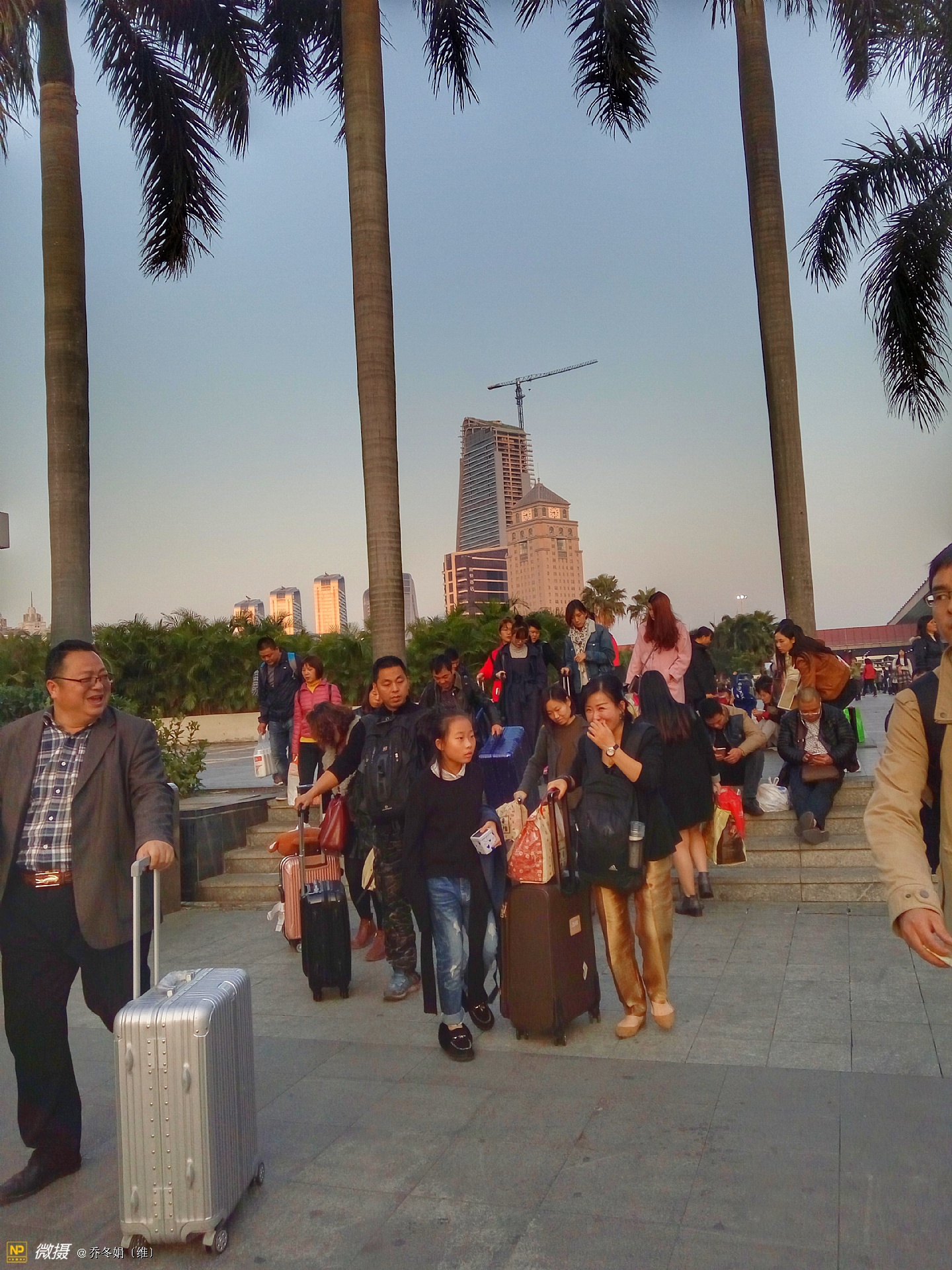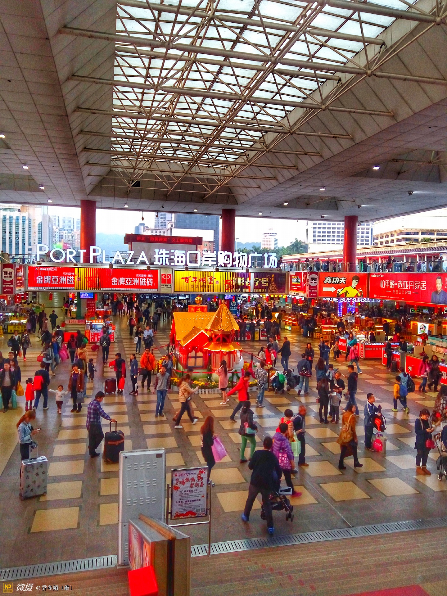 口岸的左后方是新建的珠海高铁站,广场上坐满了等候坐高铁回家的人……