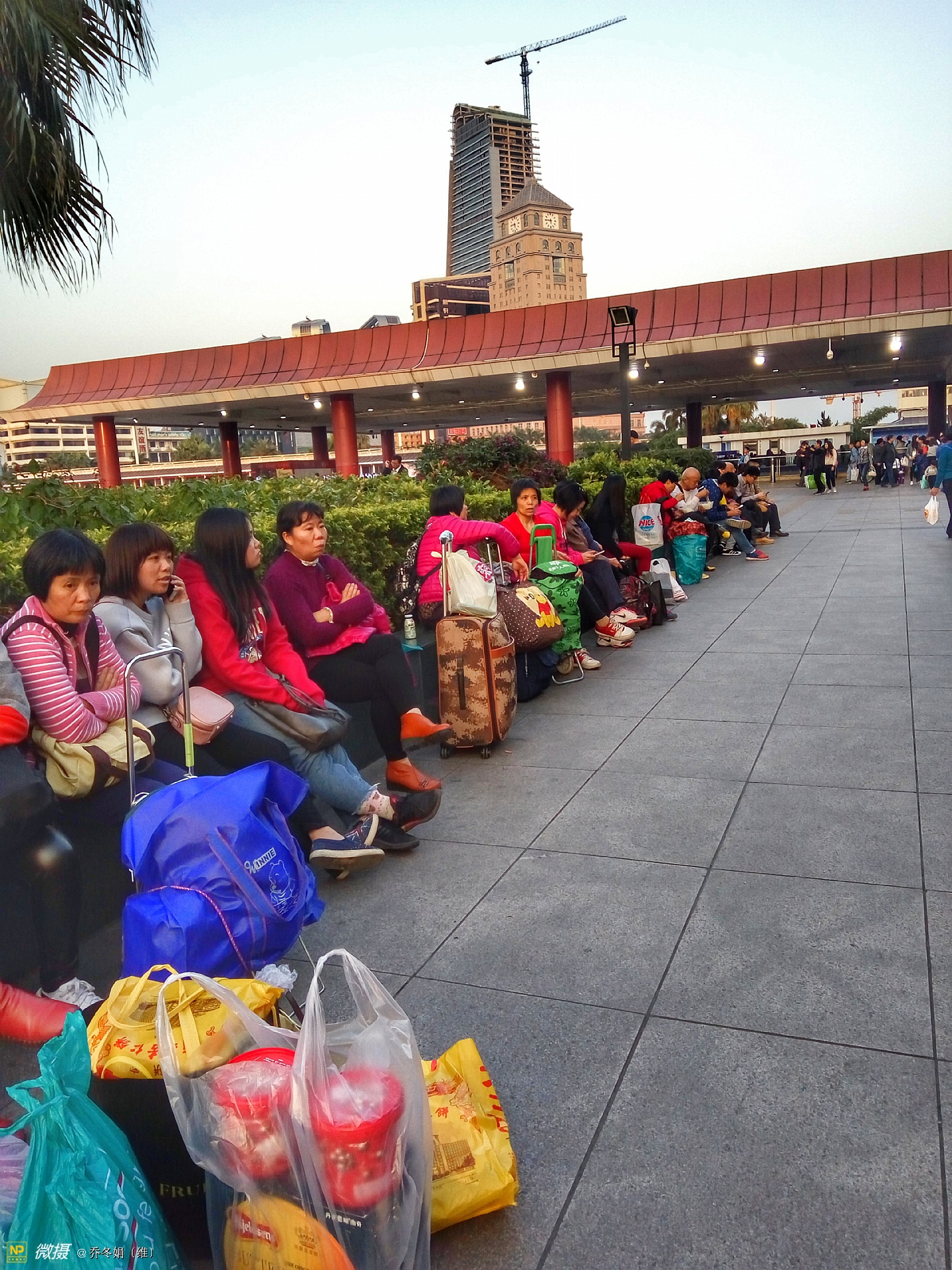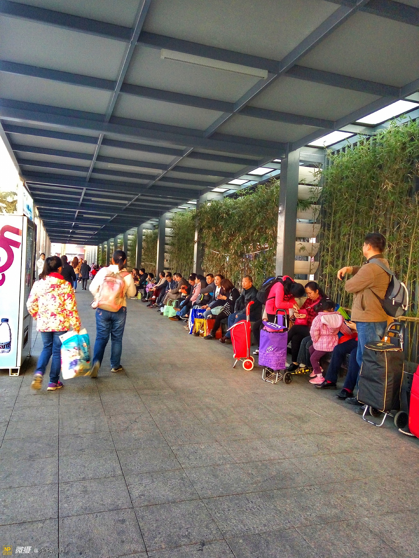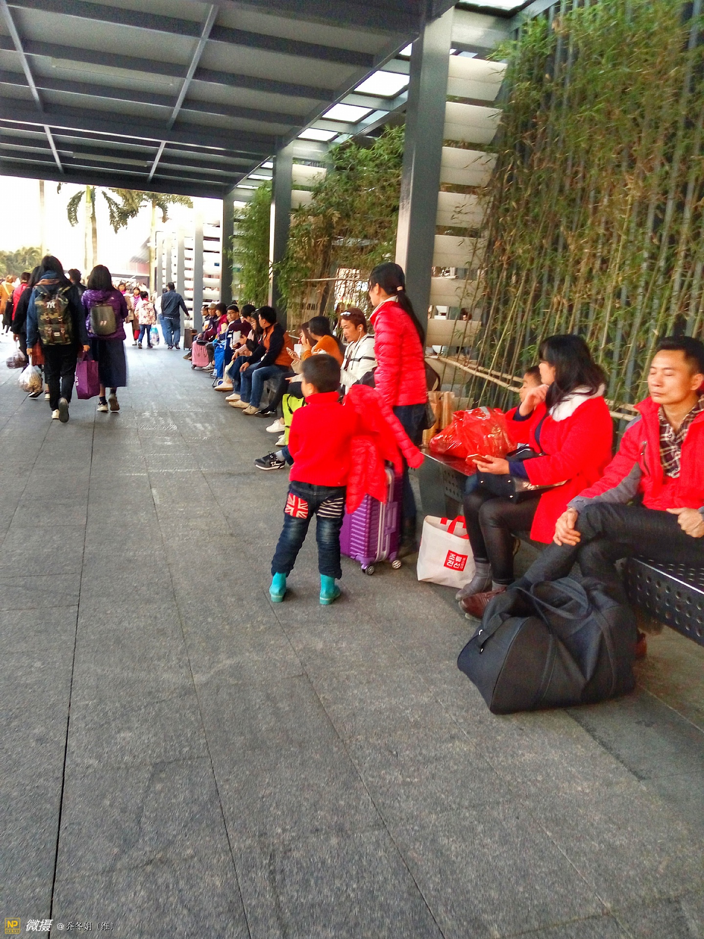等待候车回家的人们归心似箭,苦点累点算不了什么、都为了那团圆一刻的到来……