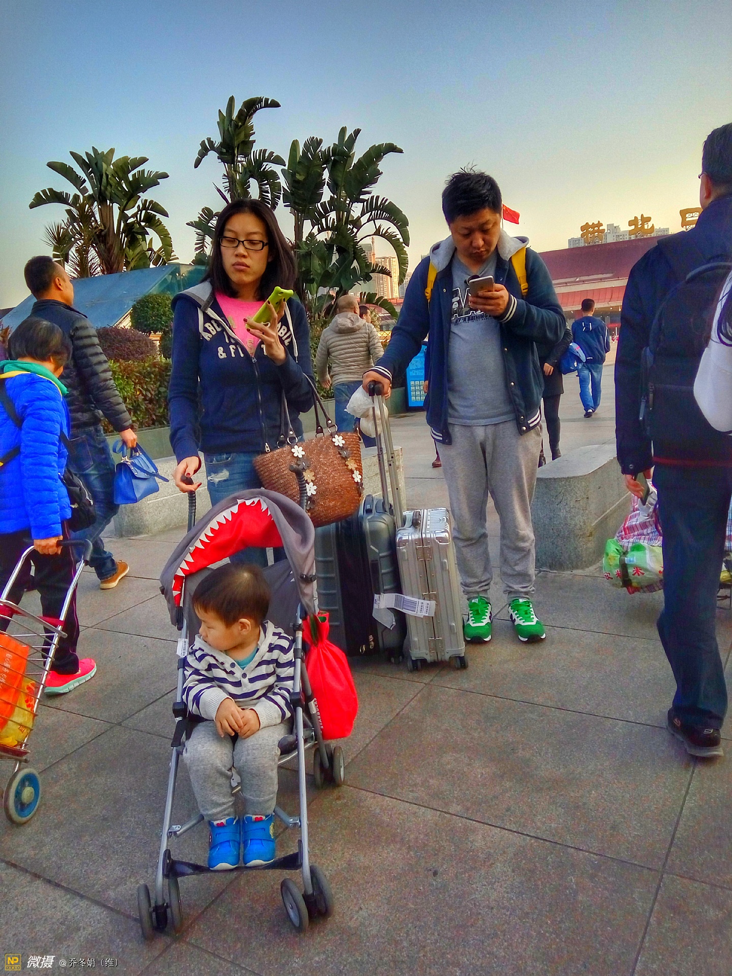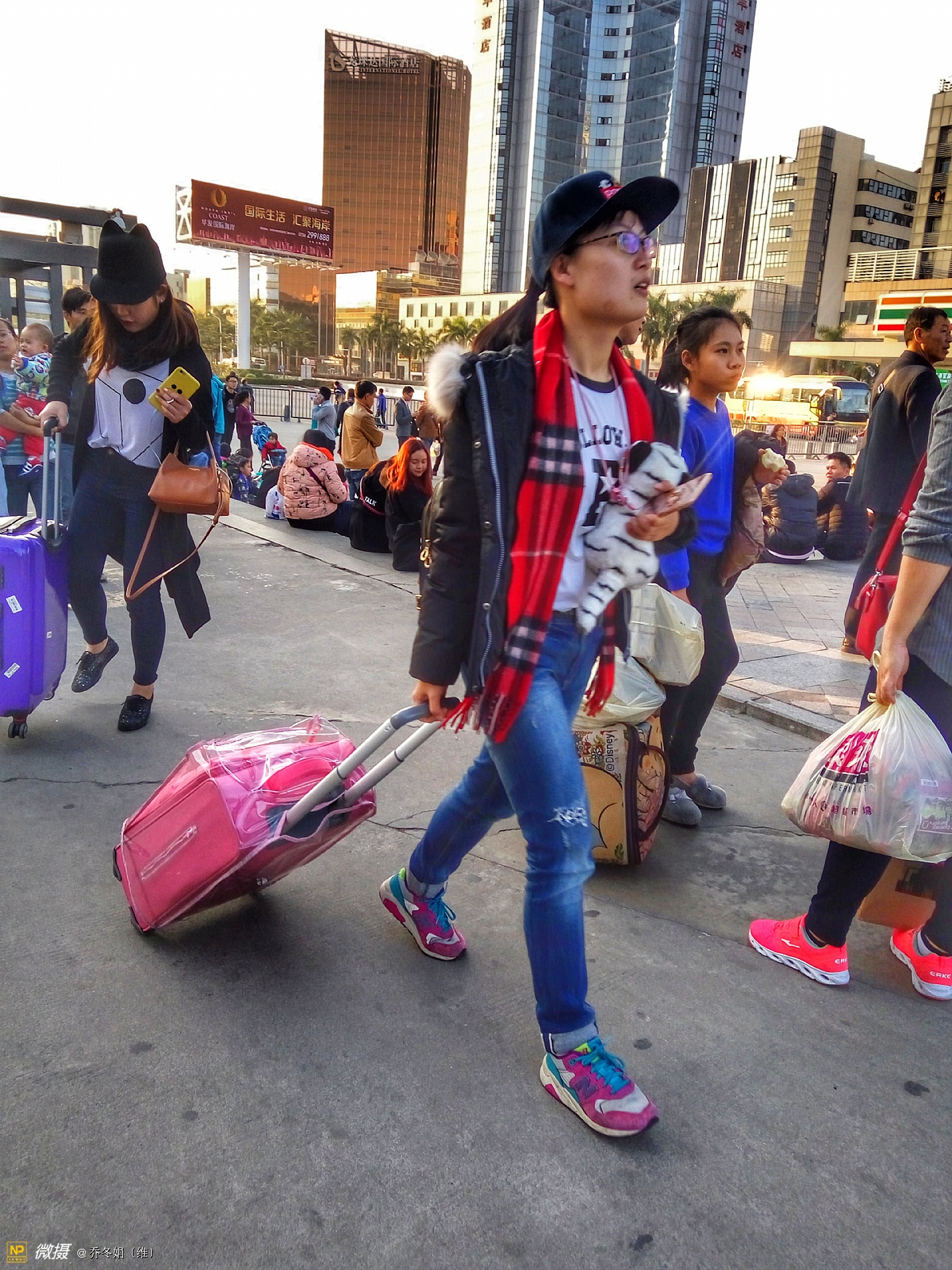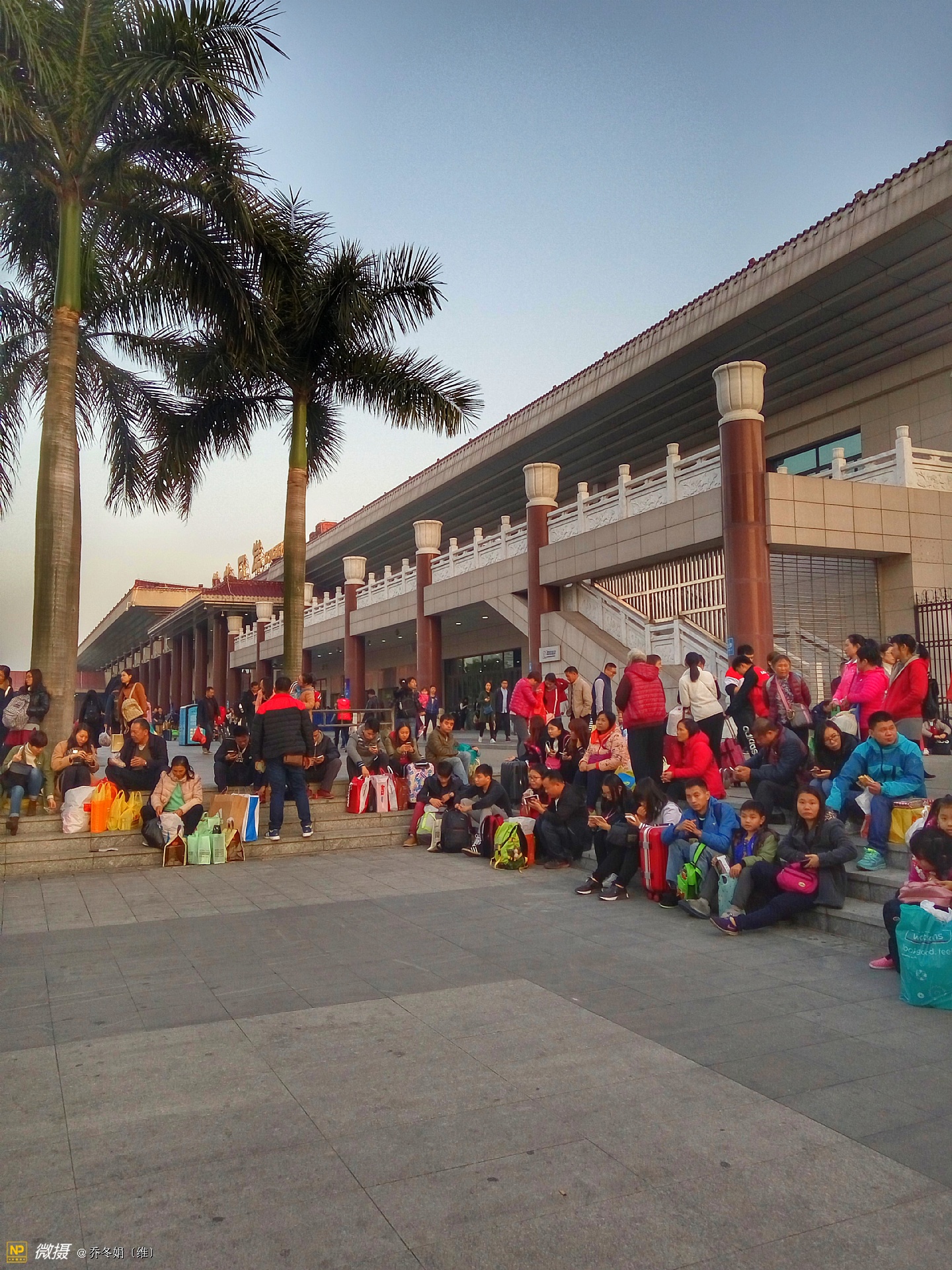 等待候车回家的人们归心似箭,苦点累点算不了什么、都为了那团圆一刻的到来……