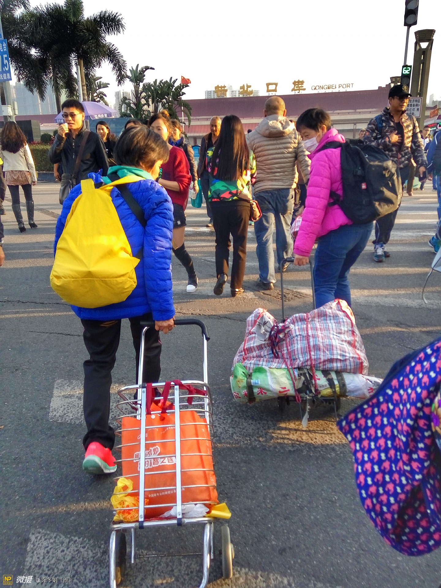 五湖四海的人们通过“珠海拱北口岸”过关,奔向返乡回家过年之路……