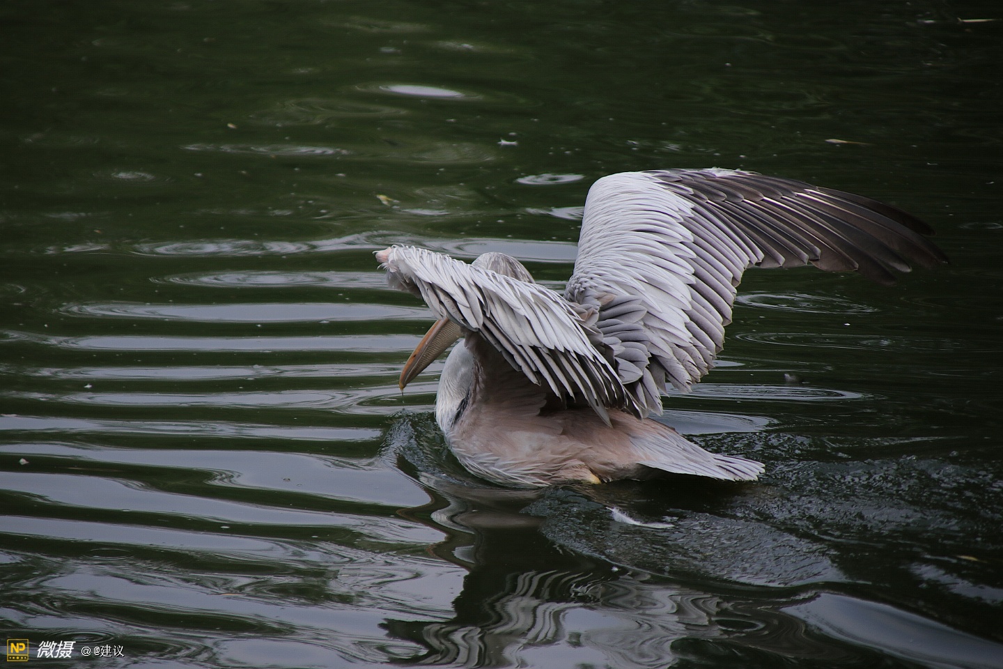 斑嘴鹈鹕,又名淘河、塘鹅、卷羽鹈鹕。栖息于沿海海岸、江河、湖泊和沼泽地带,以鱼类等为食,也吃蛙、甲壳类、蜥蜴、蛇等。斑嘴鹈鹕在中国长江下游和福建等东南沿海地区较为常见。属于国家Ⅱ级重点保护野生动物。