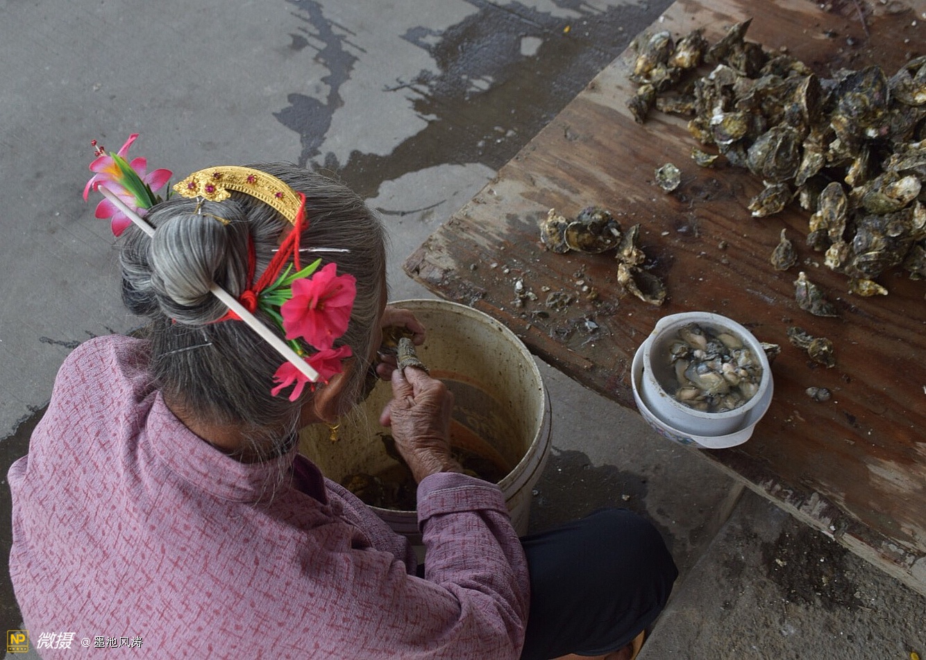 这里的蟳埔女很勤劳,寿命都很长,据说这阿婆己经九十岁高龄还在劳作挖海蛎。