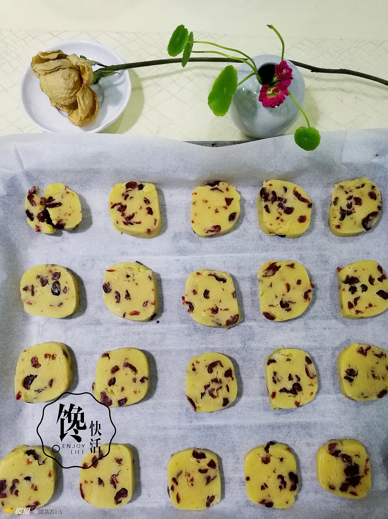 9、蔓越莓干富含令肌肤美丽健康的维生素C,酸酸甜甜,加在饼干里,口感很是独特。你学会了吗?