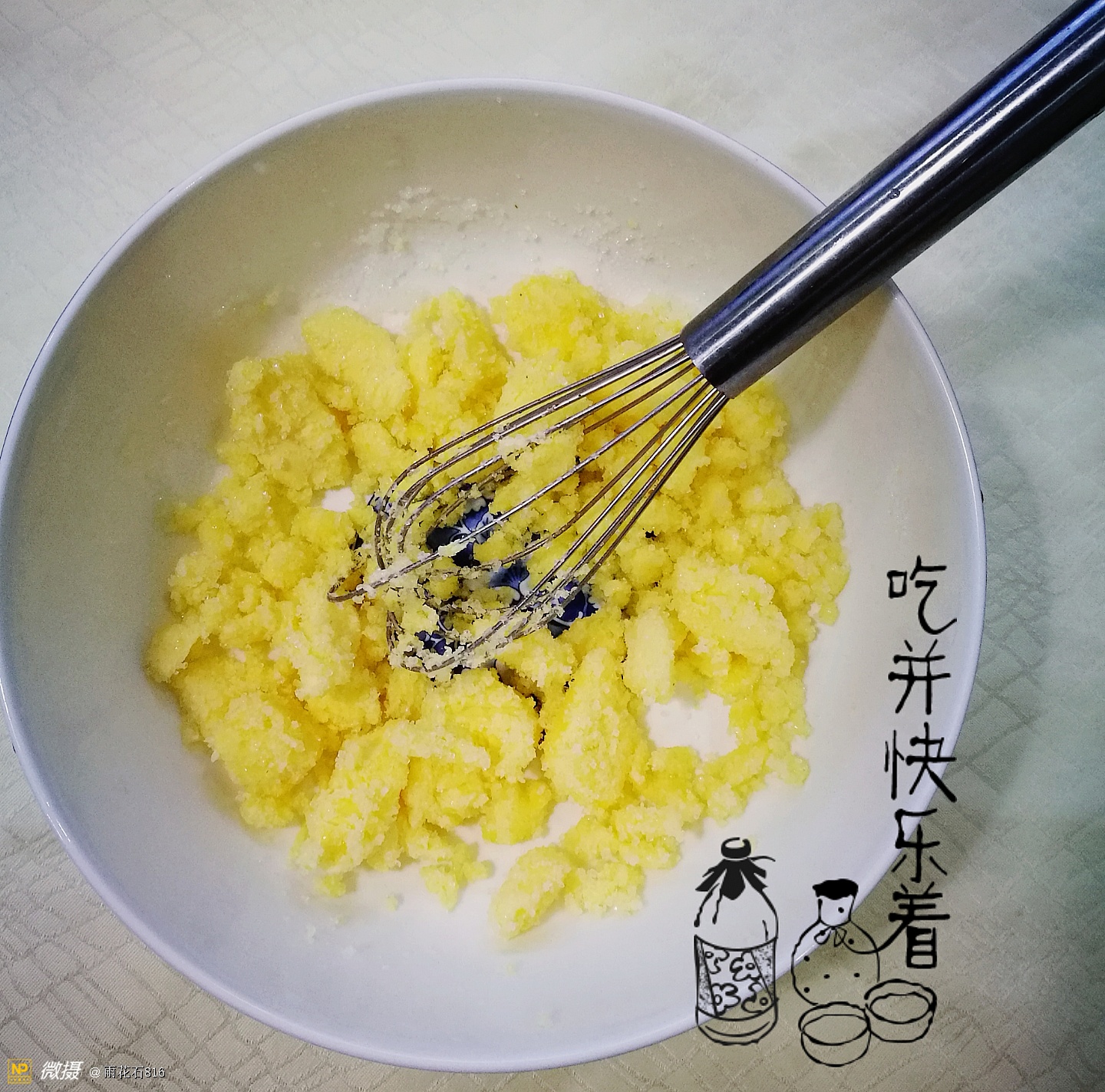 1、黄油软化后,加入糖粉,搅拌均匀。不需要打发。