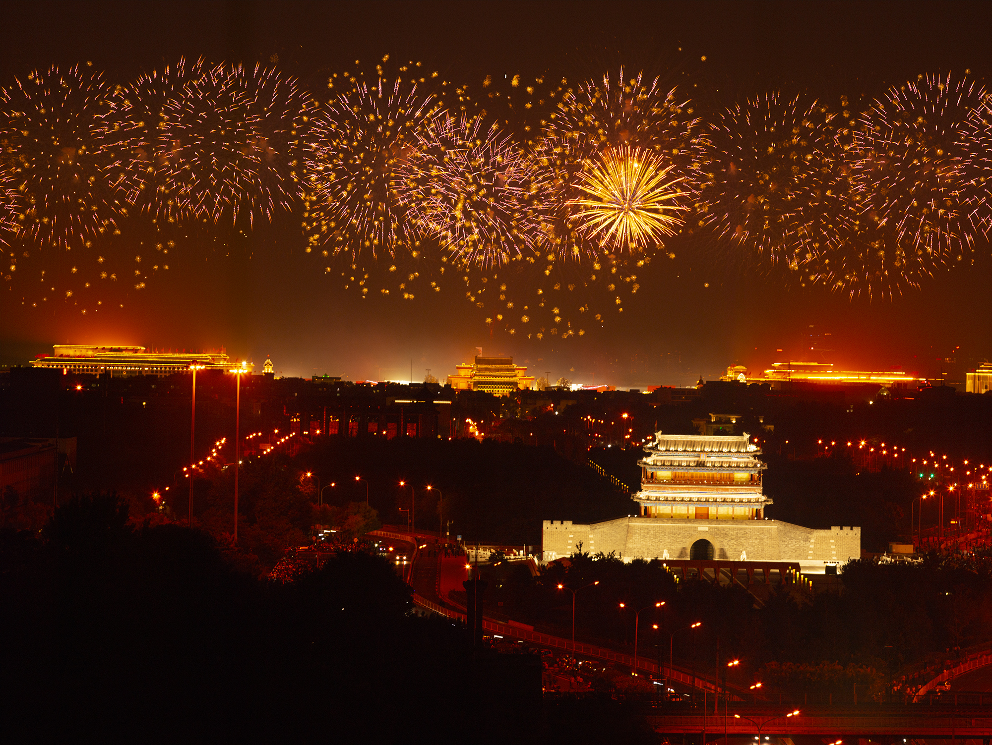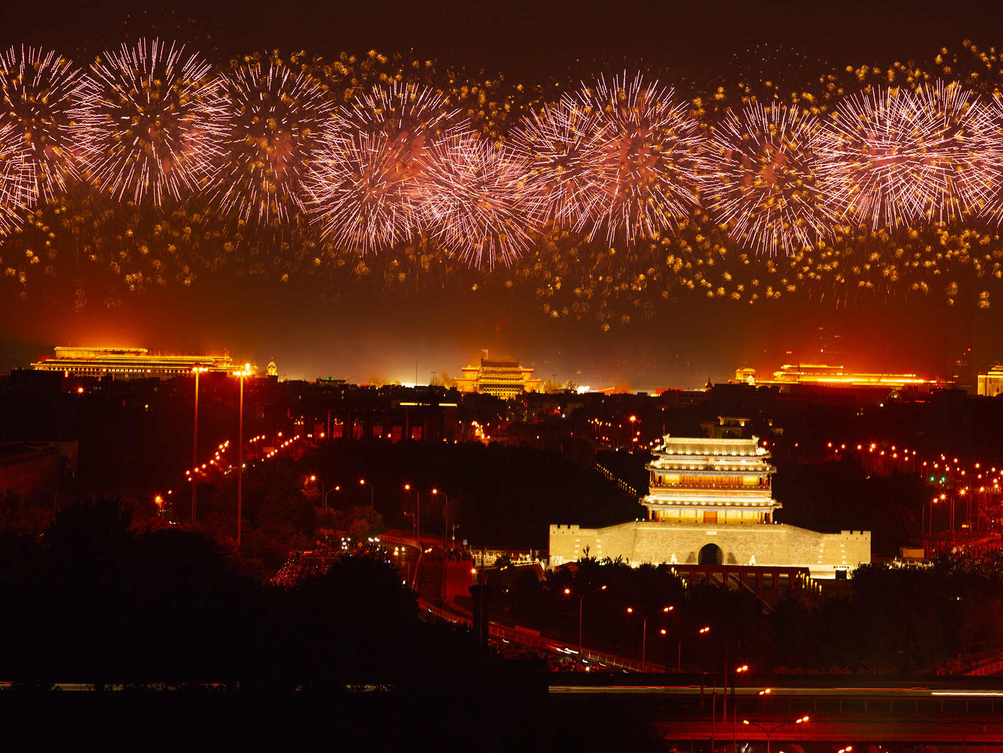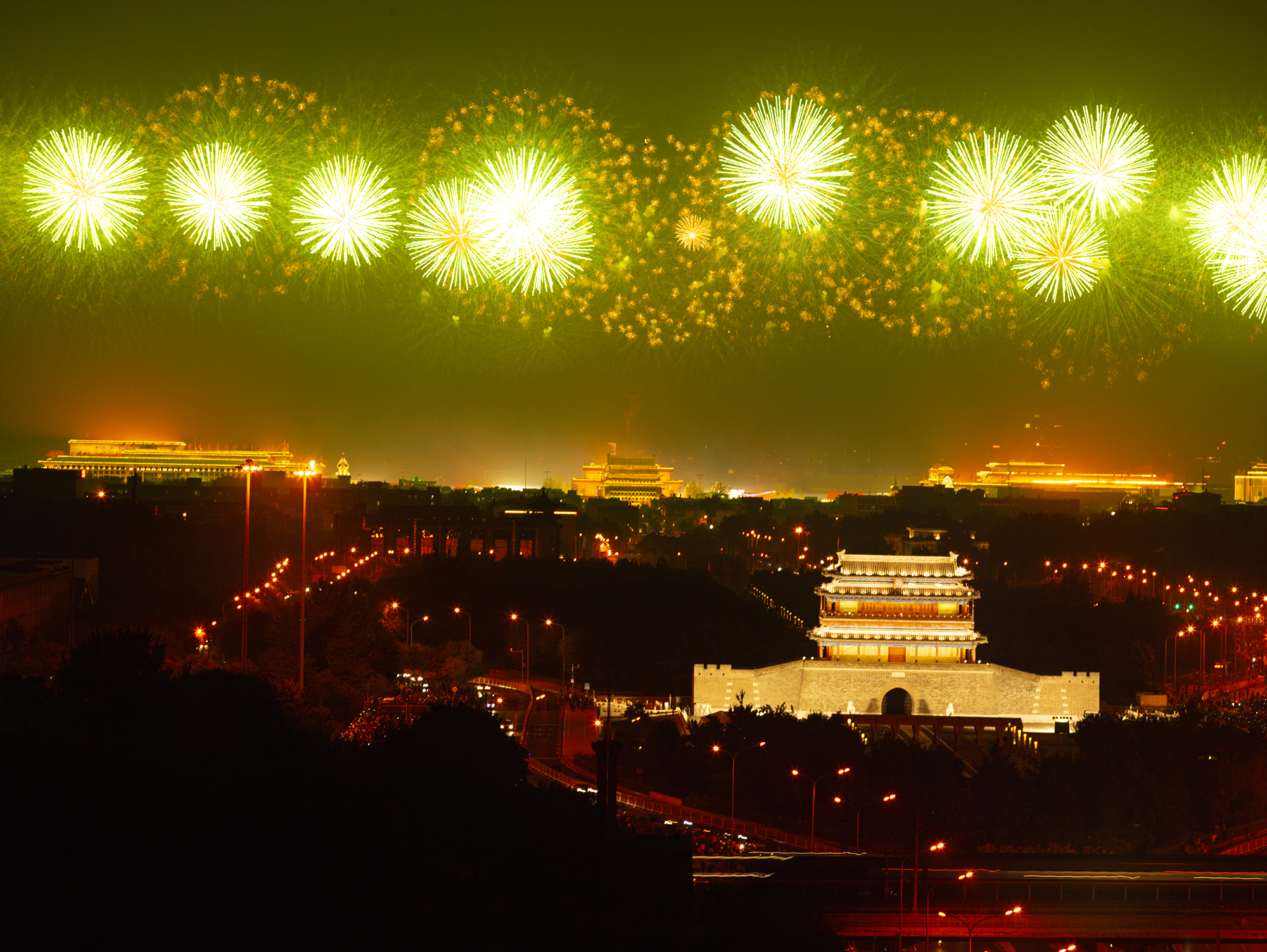 飞思8000万像素相机拍摄的10月1日晚上天安门广场烟花实况