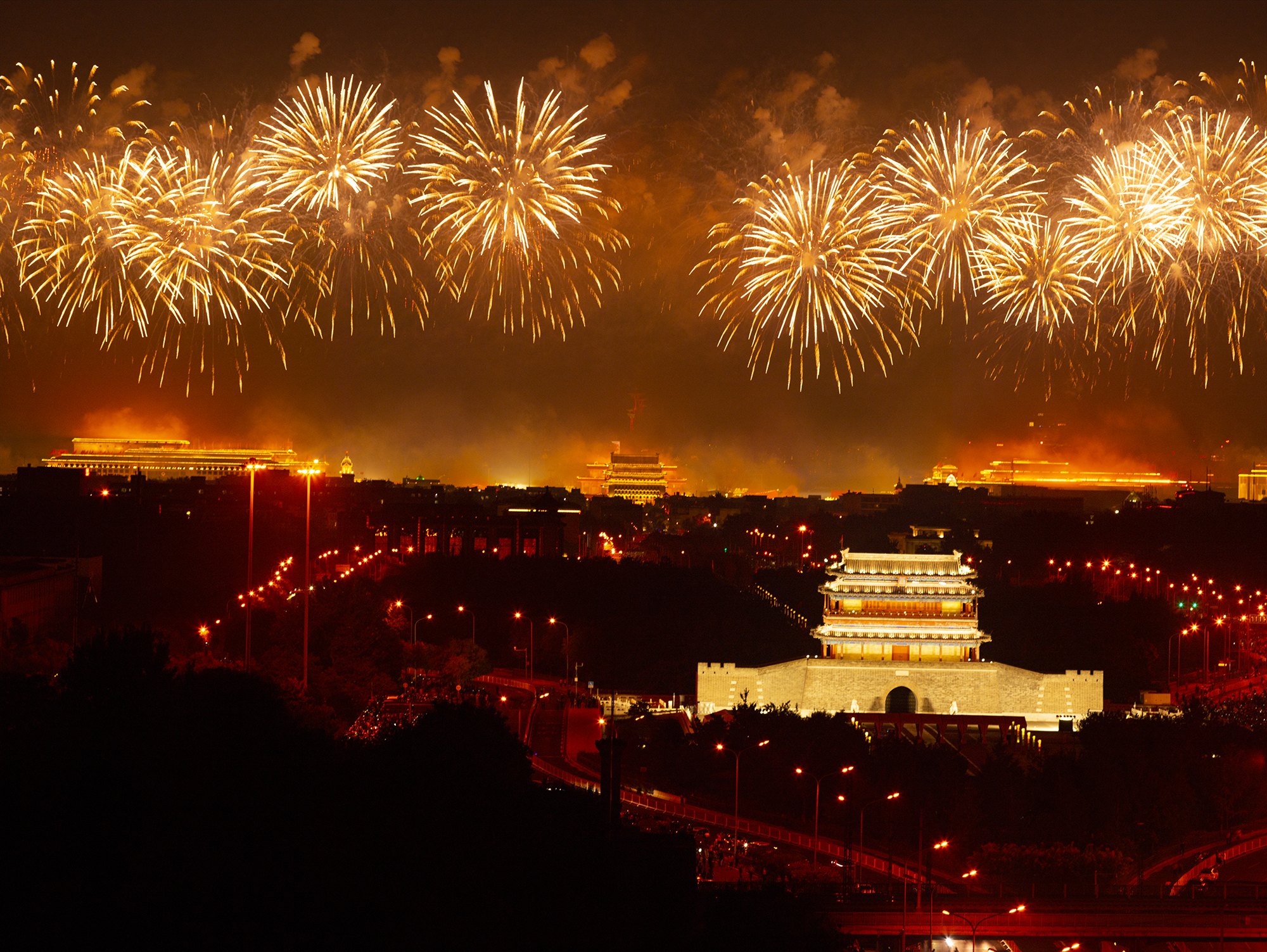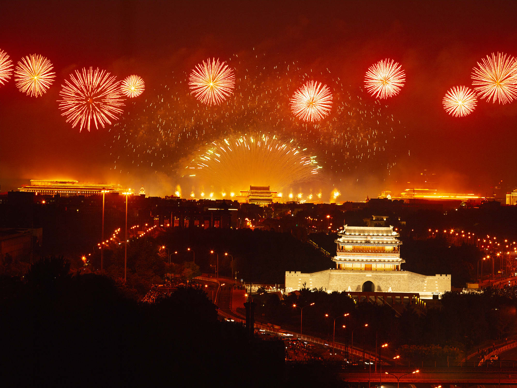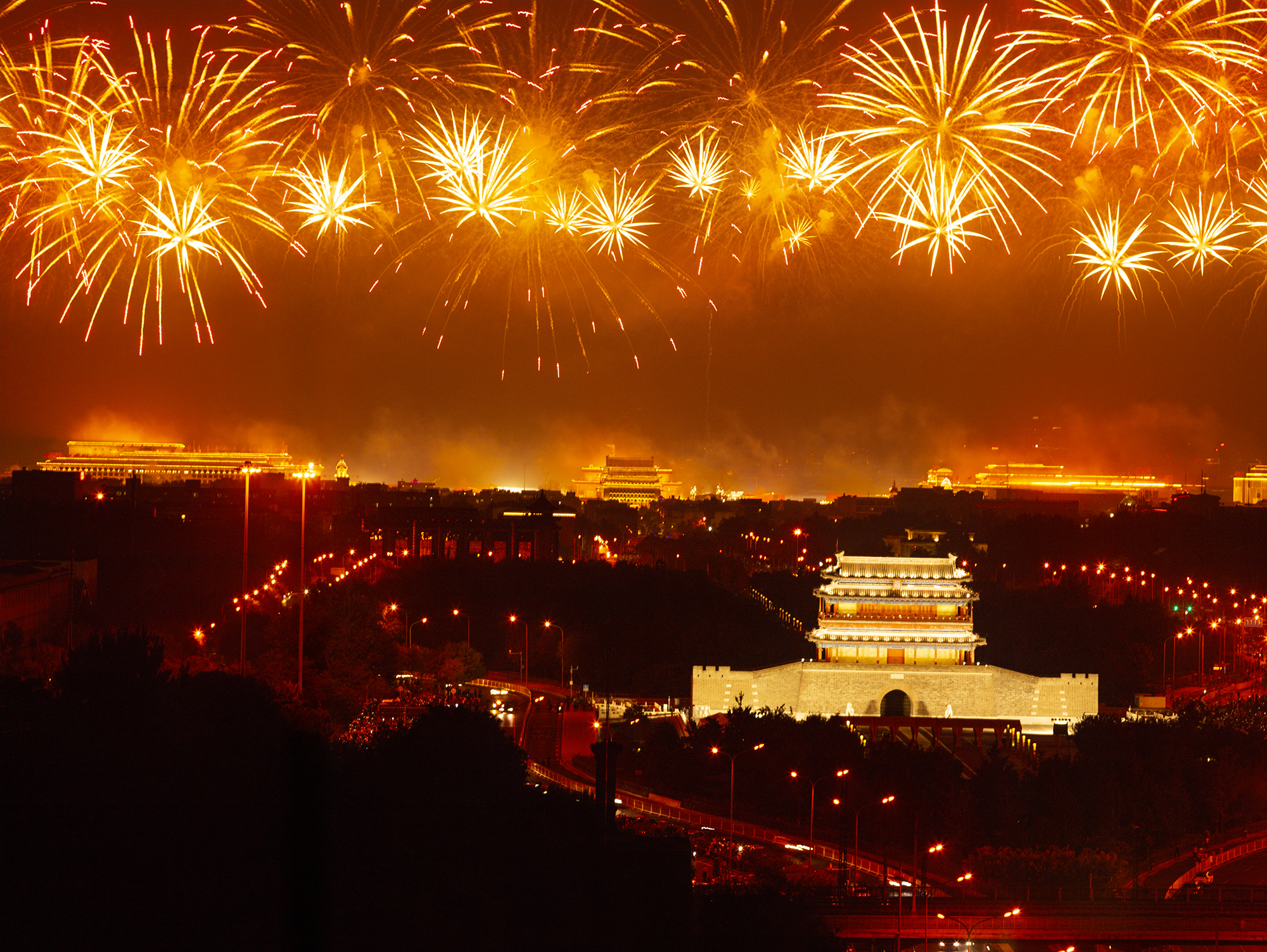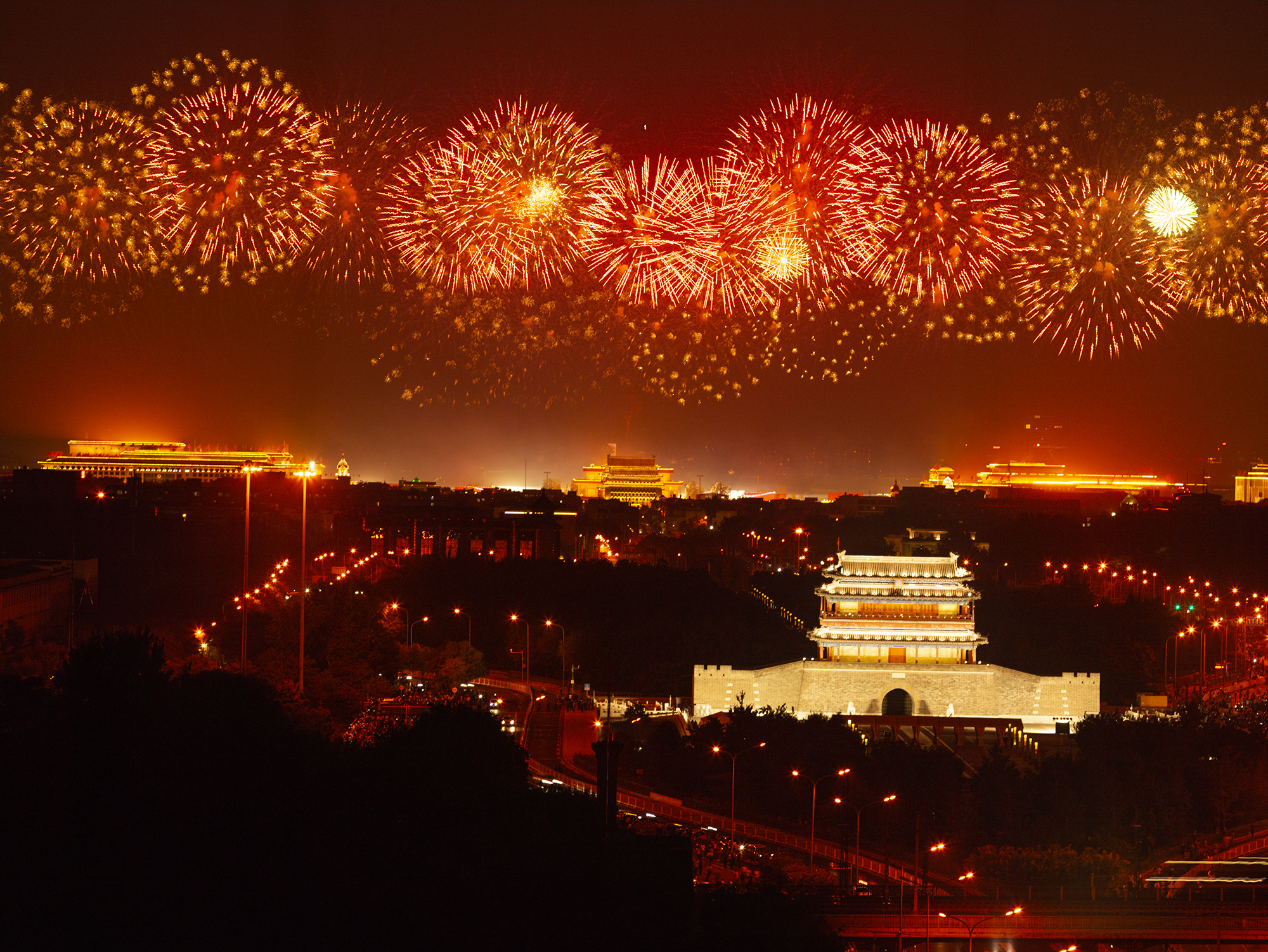飞思8000万像素相机拍摄的10月1日晚上天安门广场烟花实况