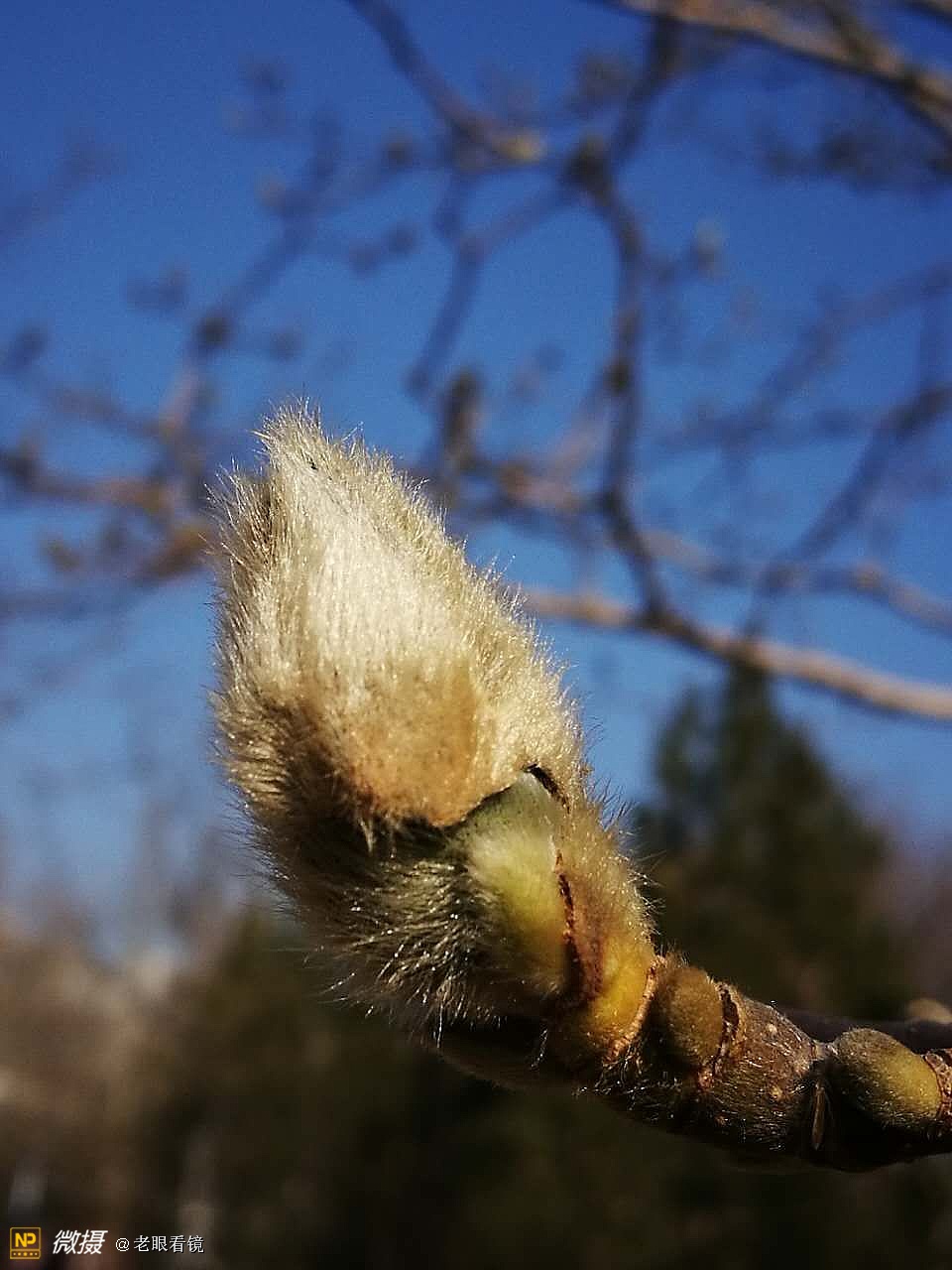 3月2日在公园散步,发现玉兰树孕蕾了,于是就用手机拍了下来。