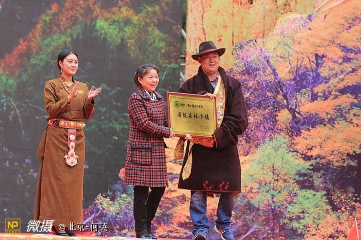 省林业厅副厅长包建华向黑水县沙石多乡授“省级森林小镇”牌
