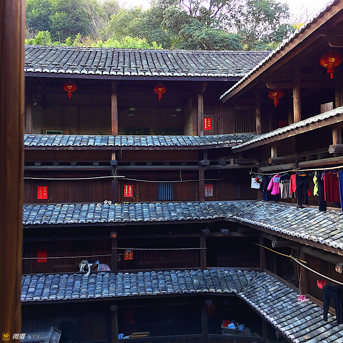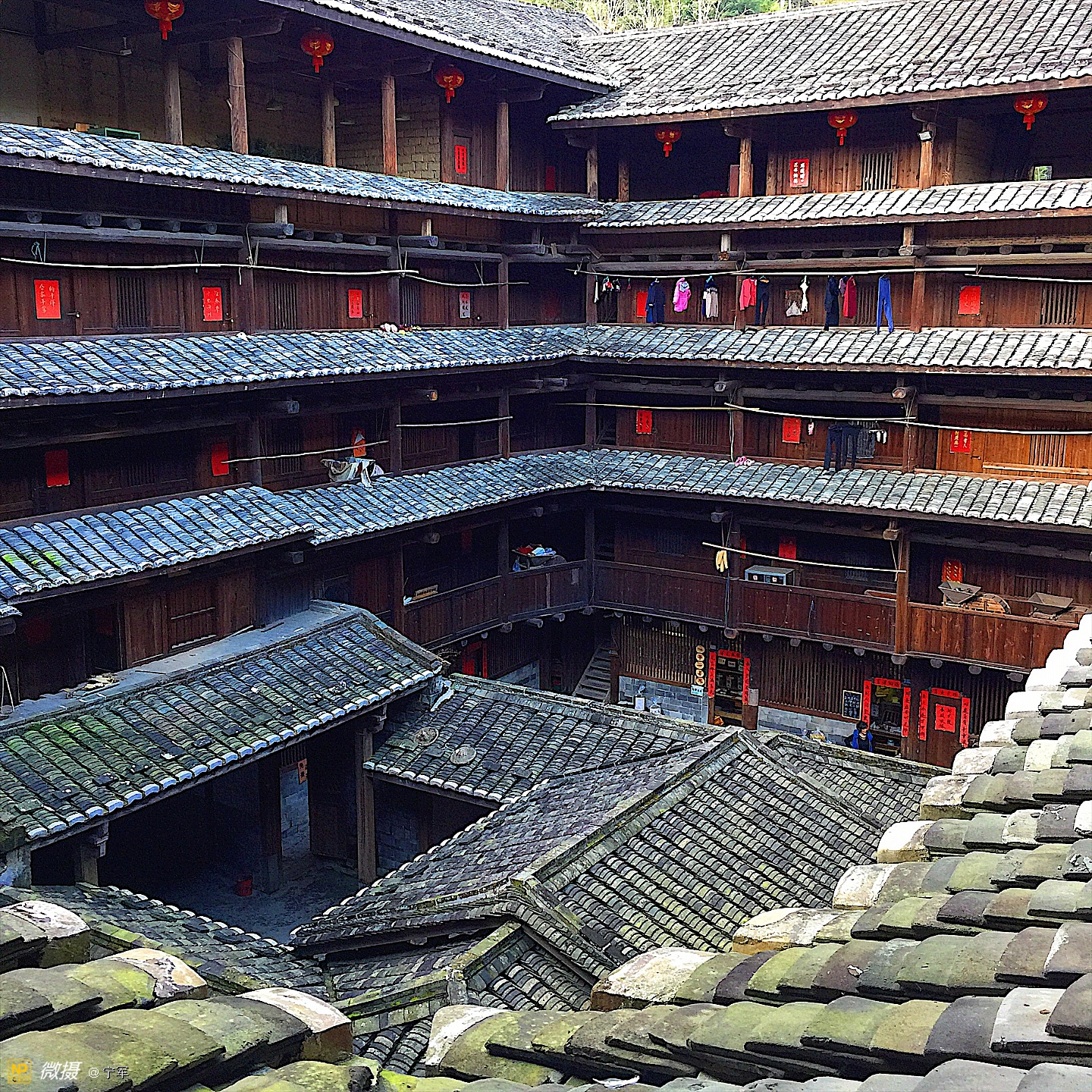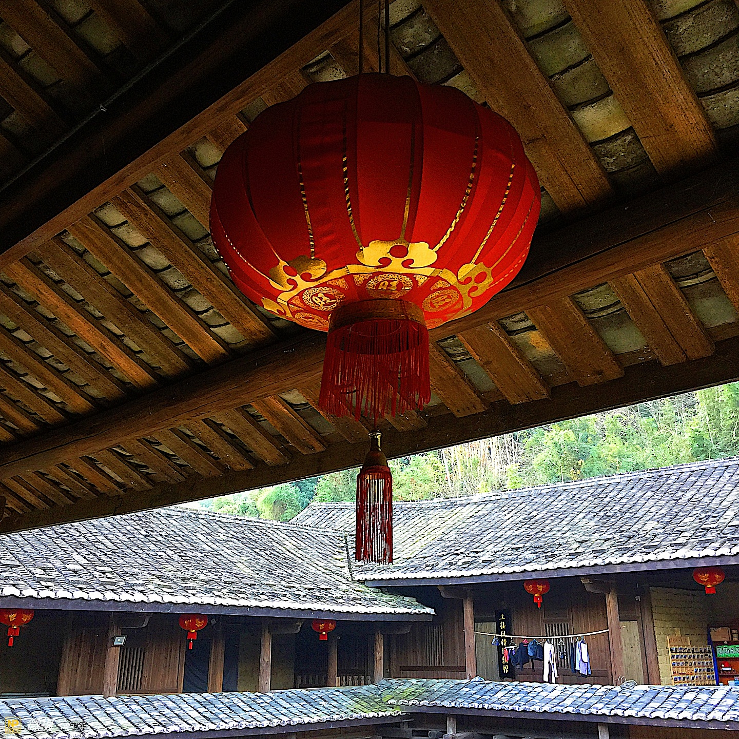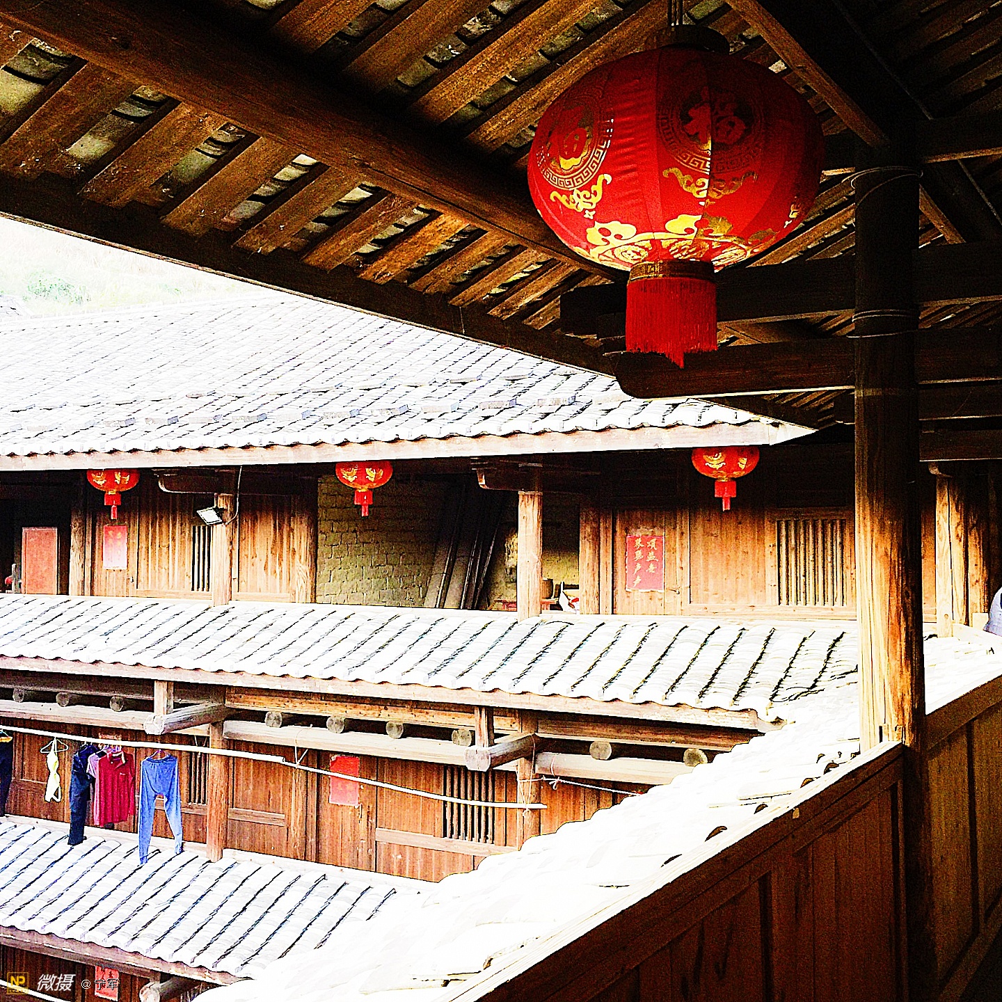 大概是春节的原因吧,土楼里悬挂的红灯笼特别的显眼。