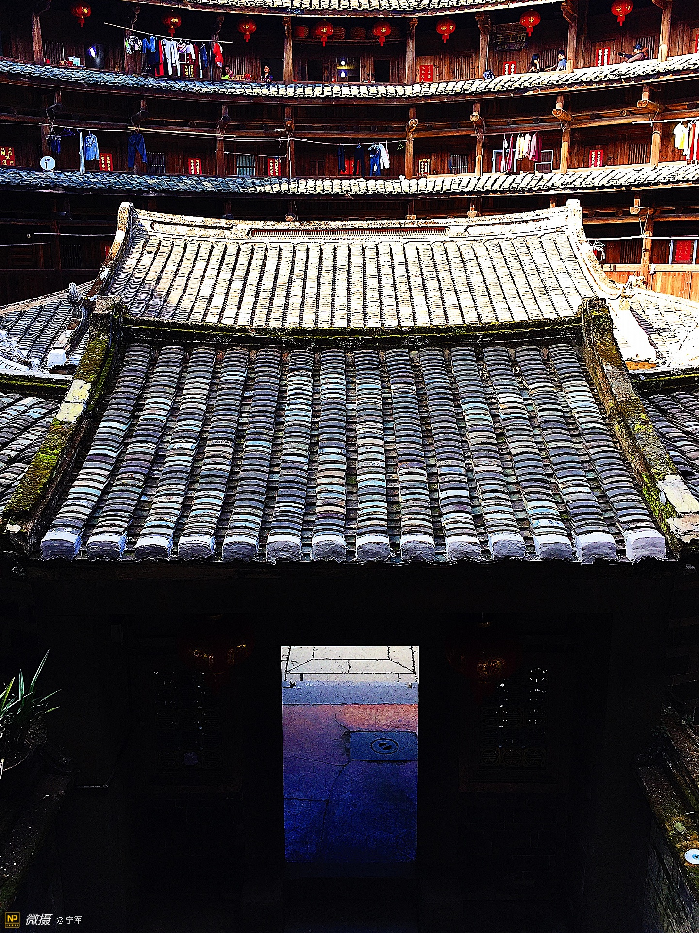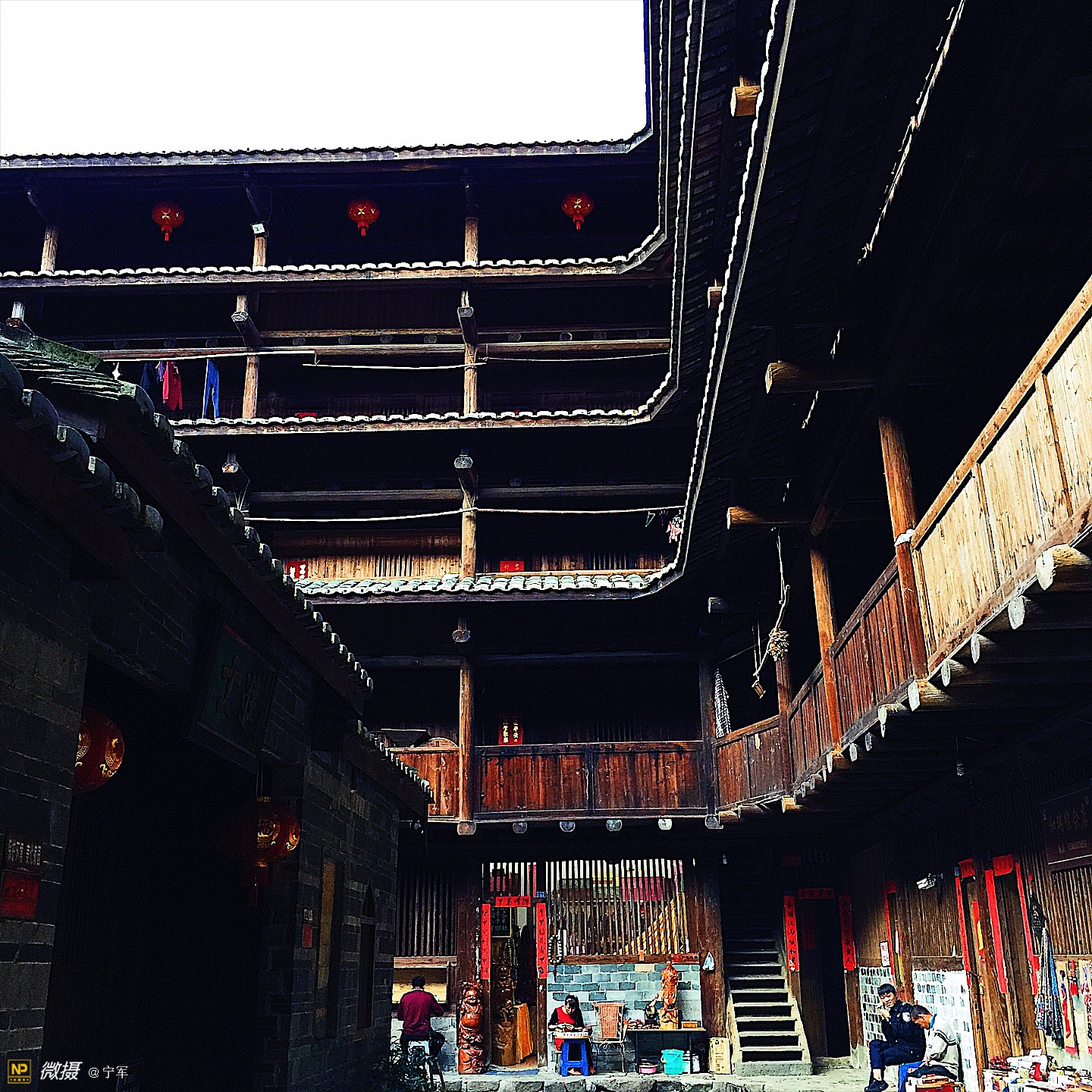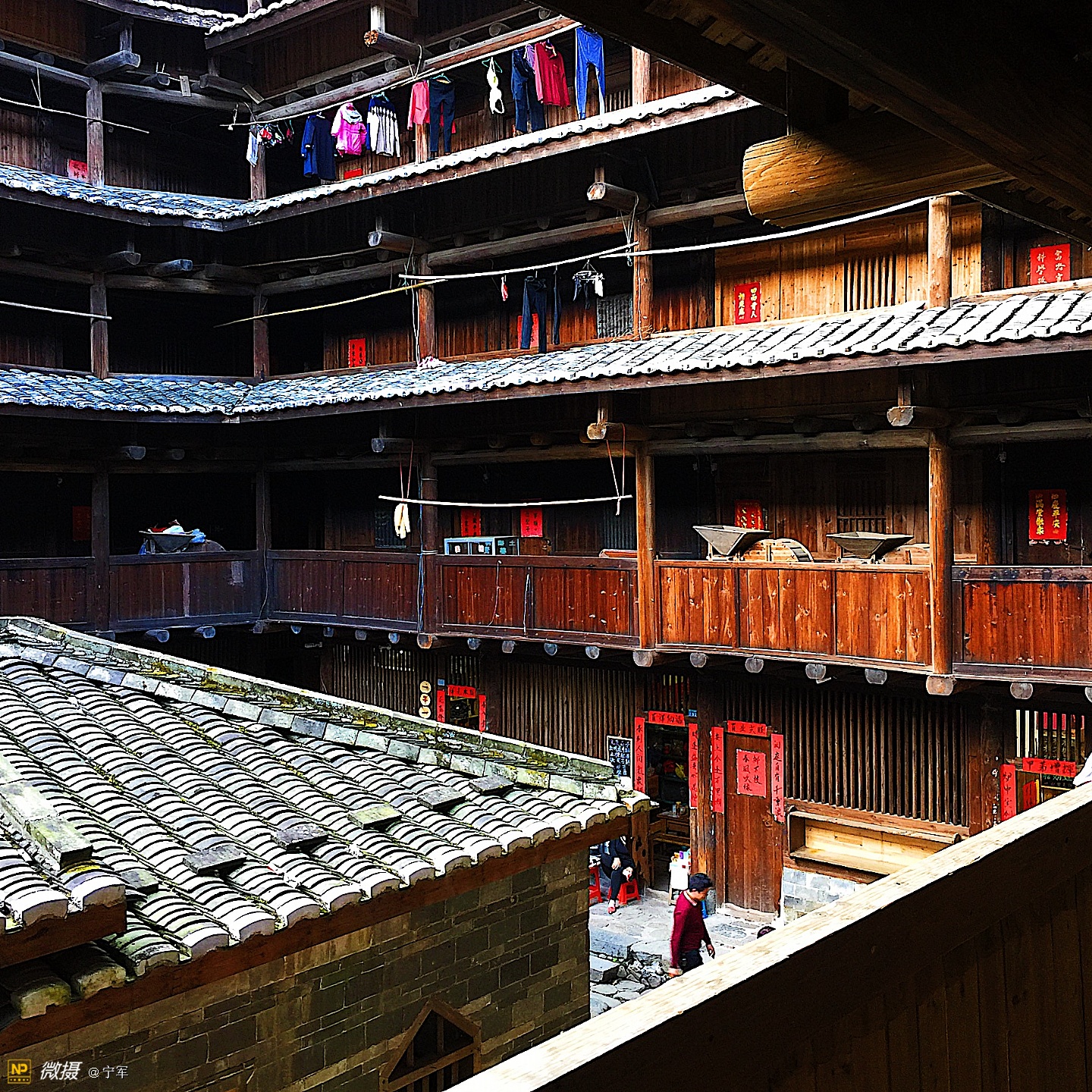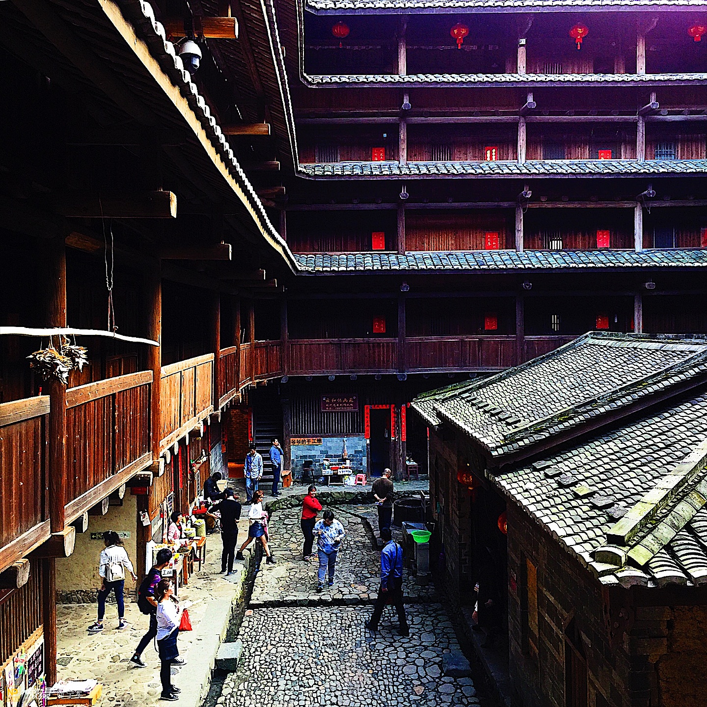 大概是春节的原因吧,土楼里悬挂的红灯笼特别的显眼。