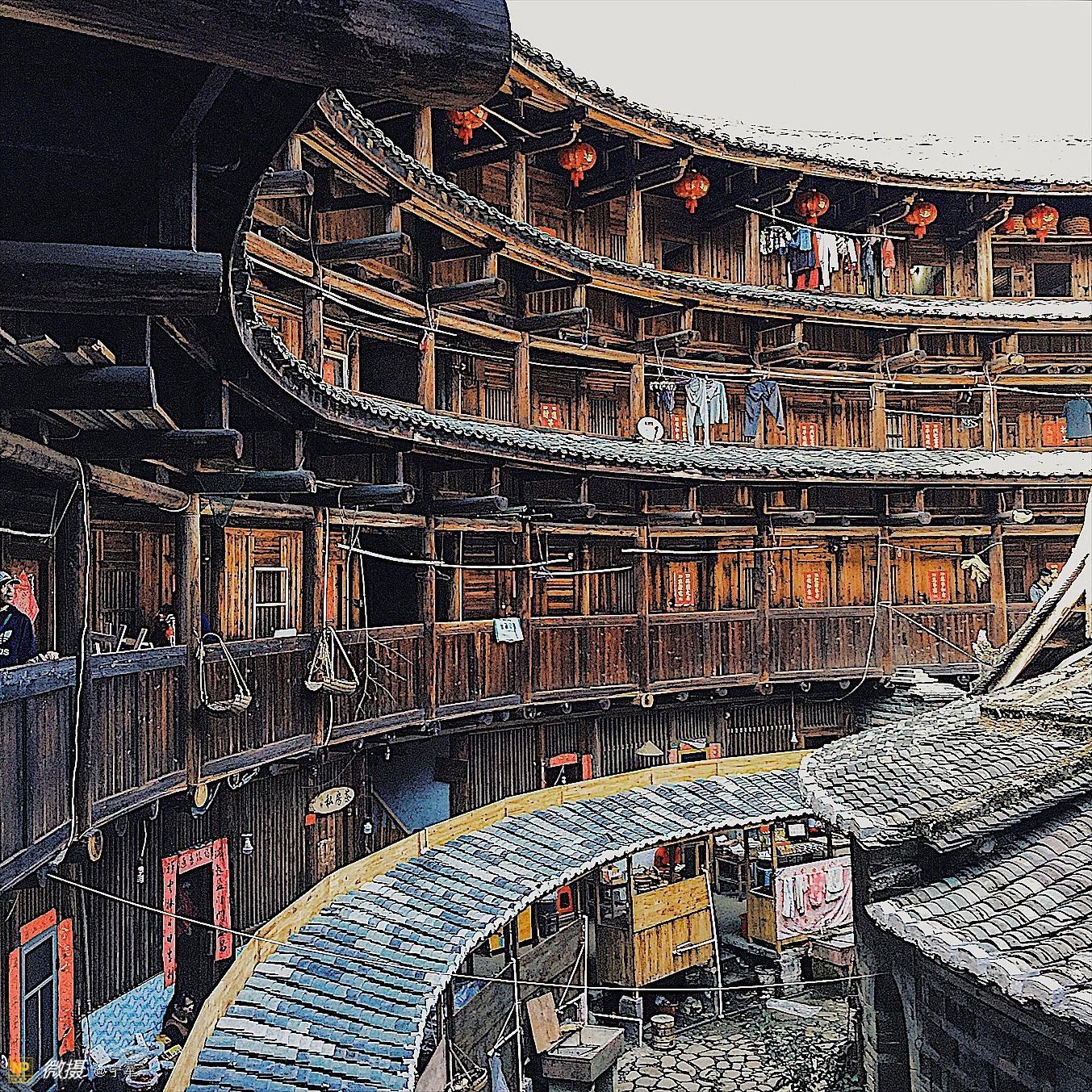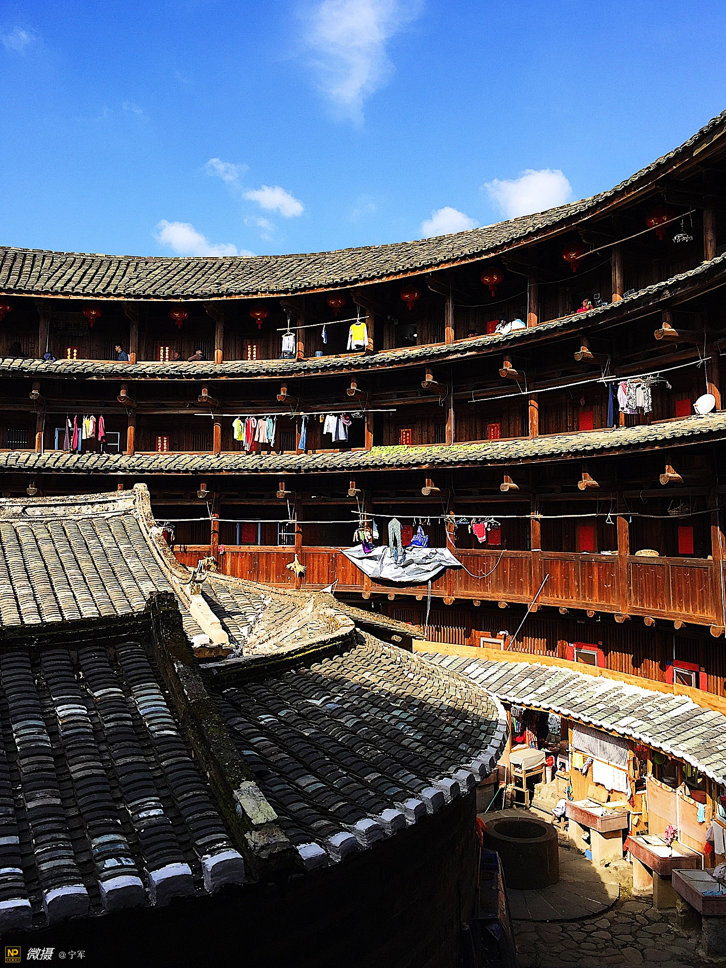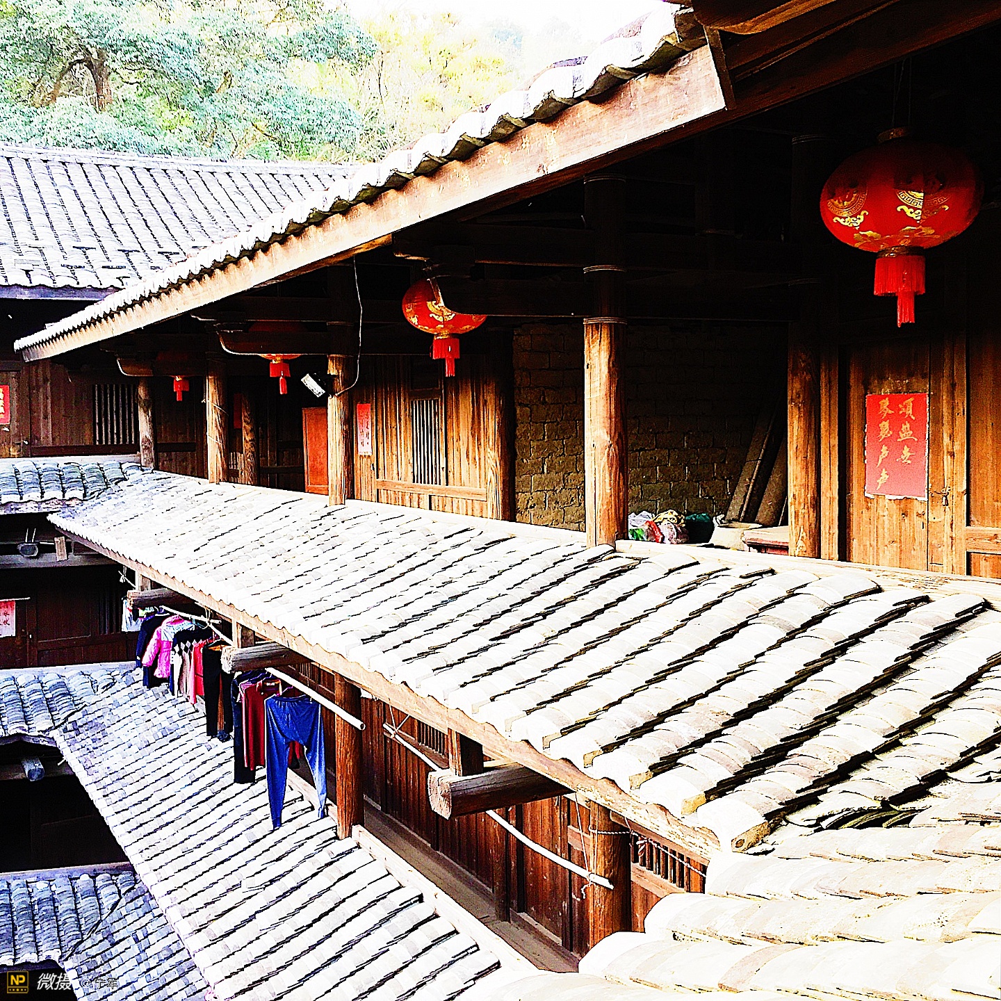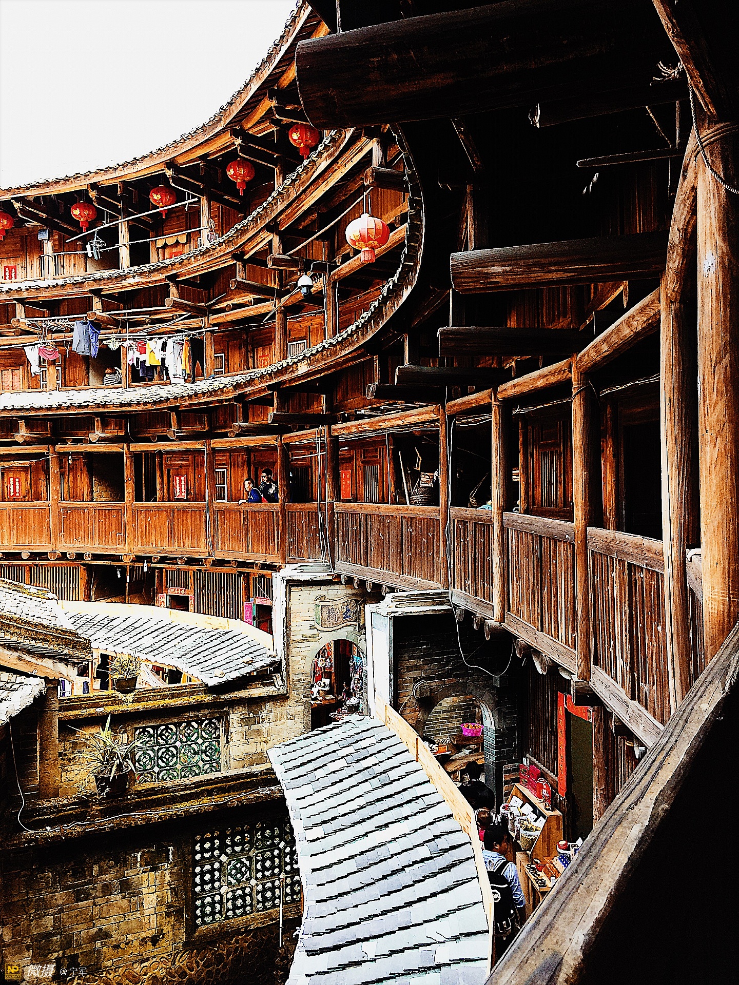 大概是春节的原因吧,土楼里悬挂的红灯笼特别的显眼。
