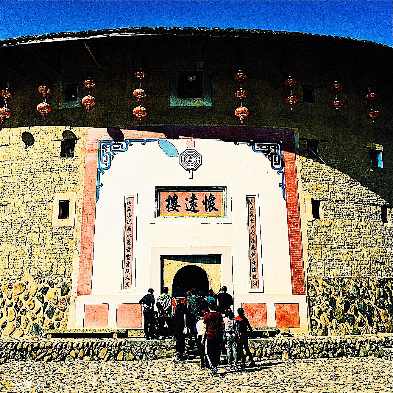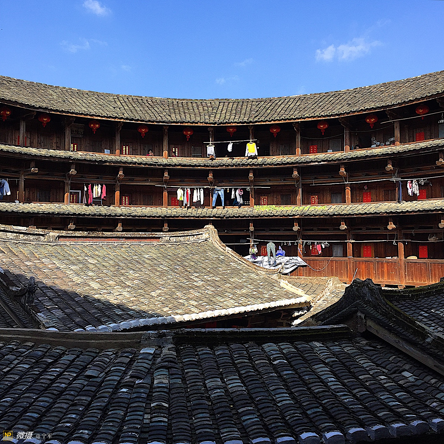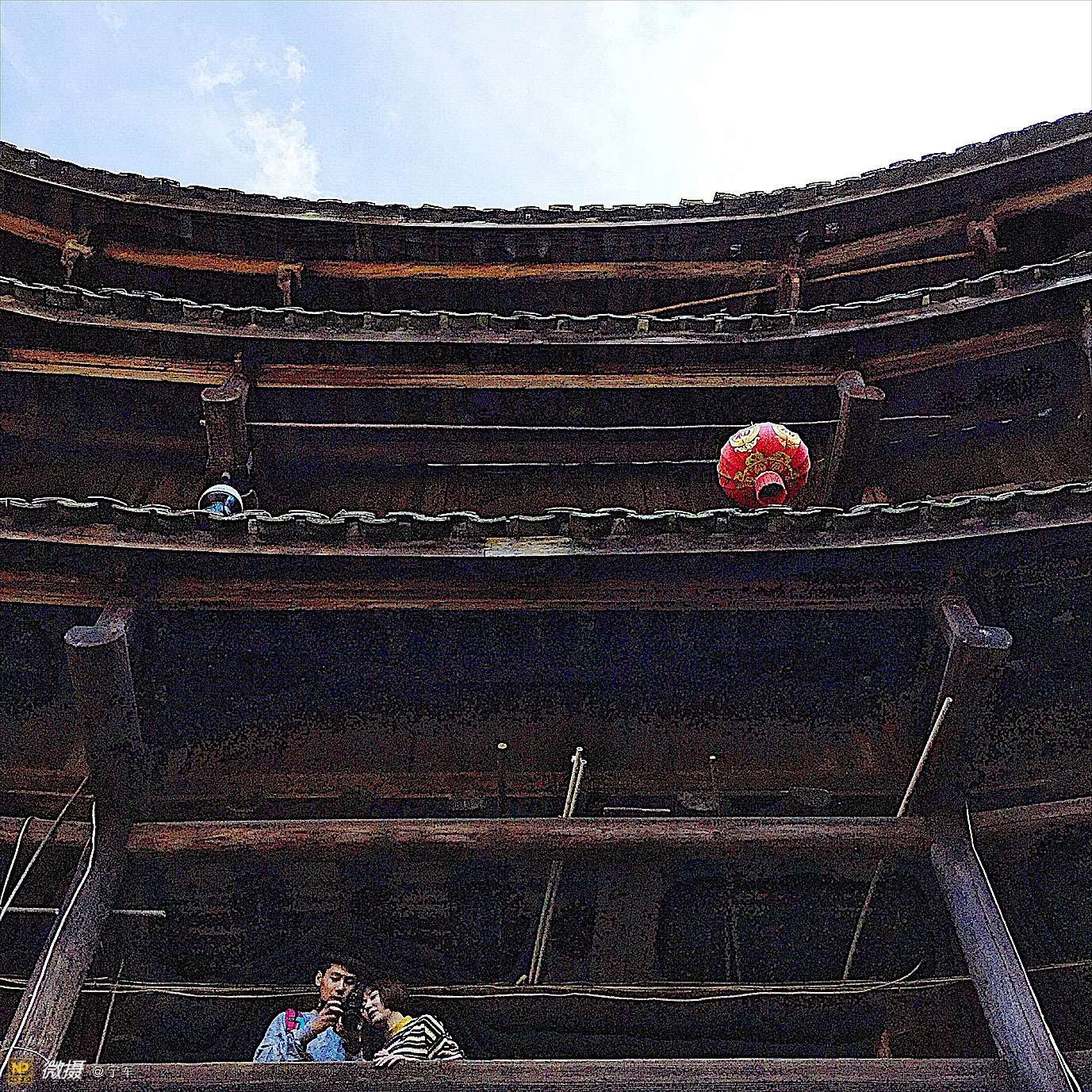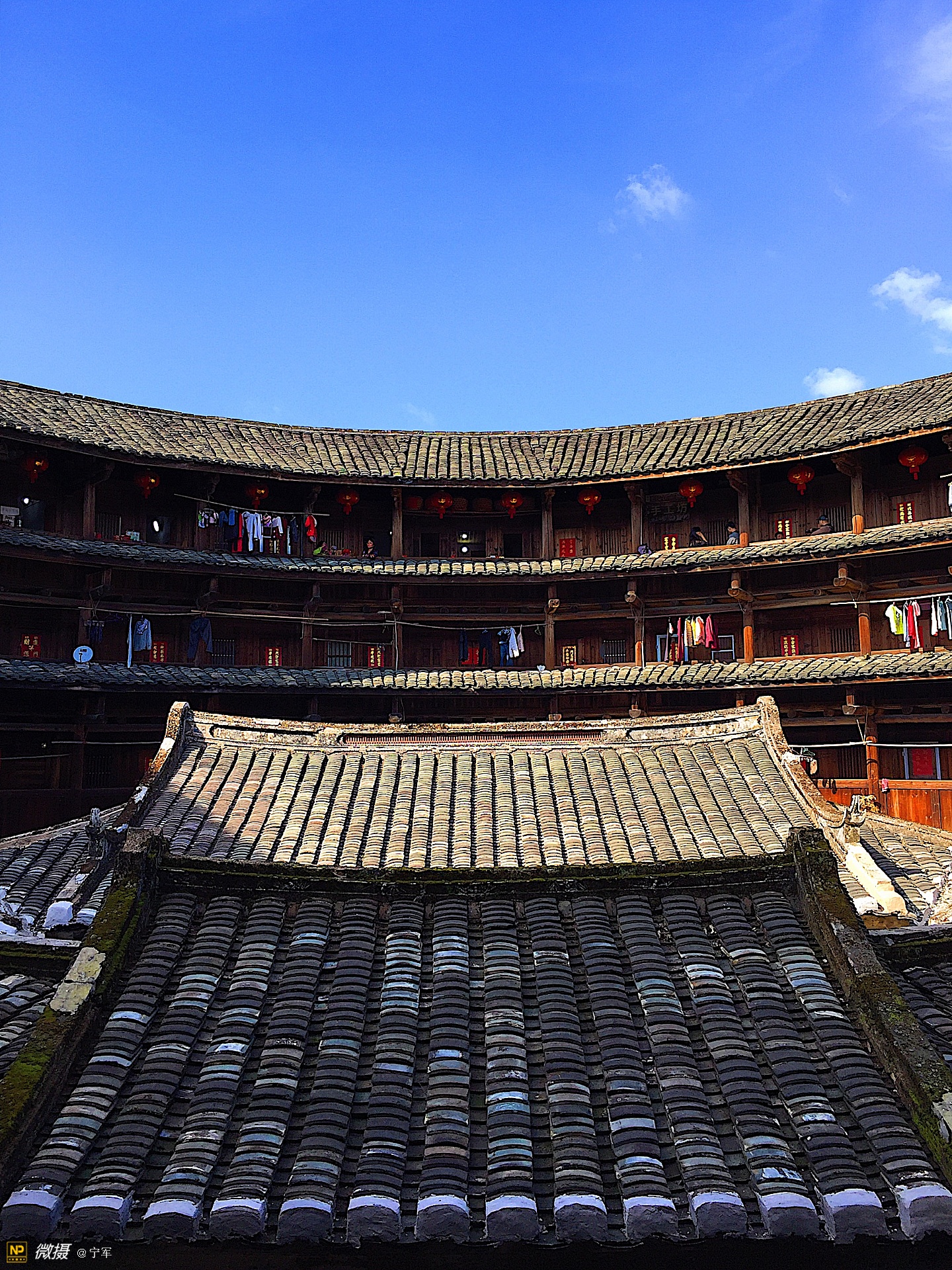 大概是春节的原因吧,土楼里悬挂的红灯笼特别的显眼。