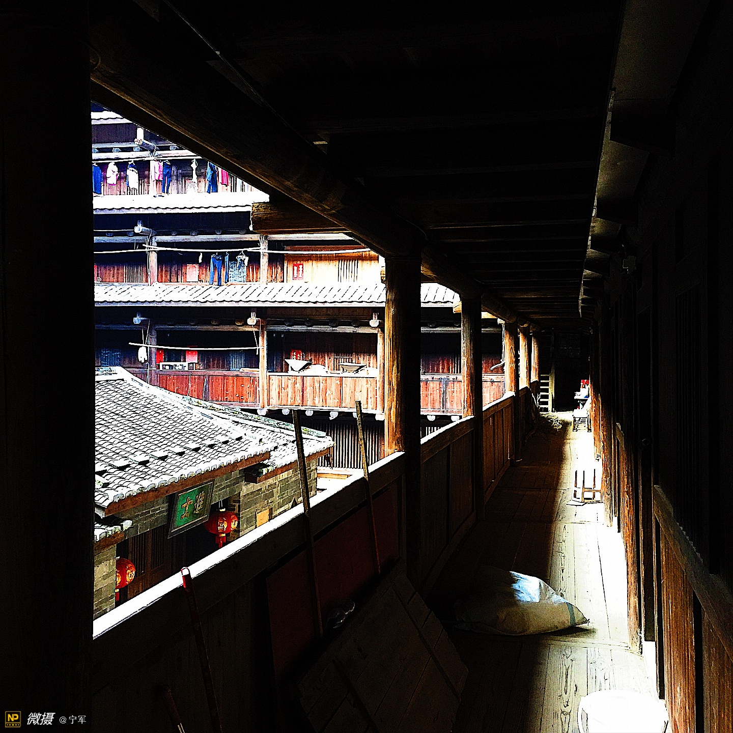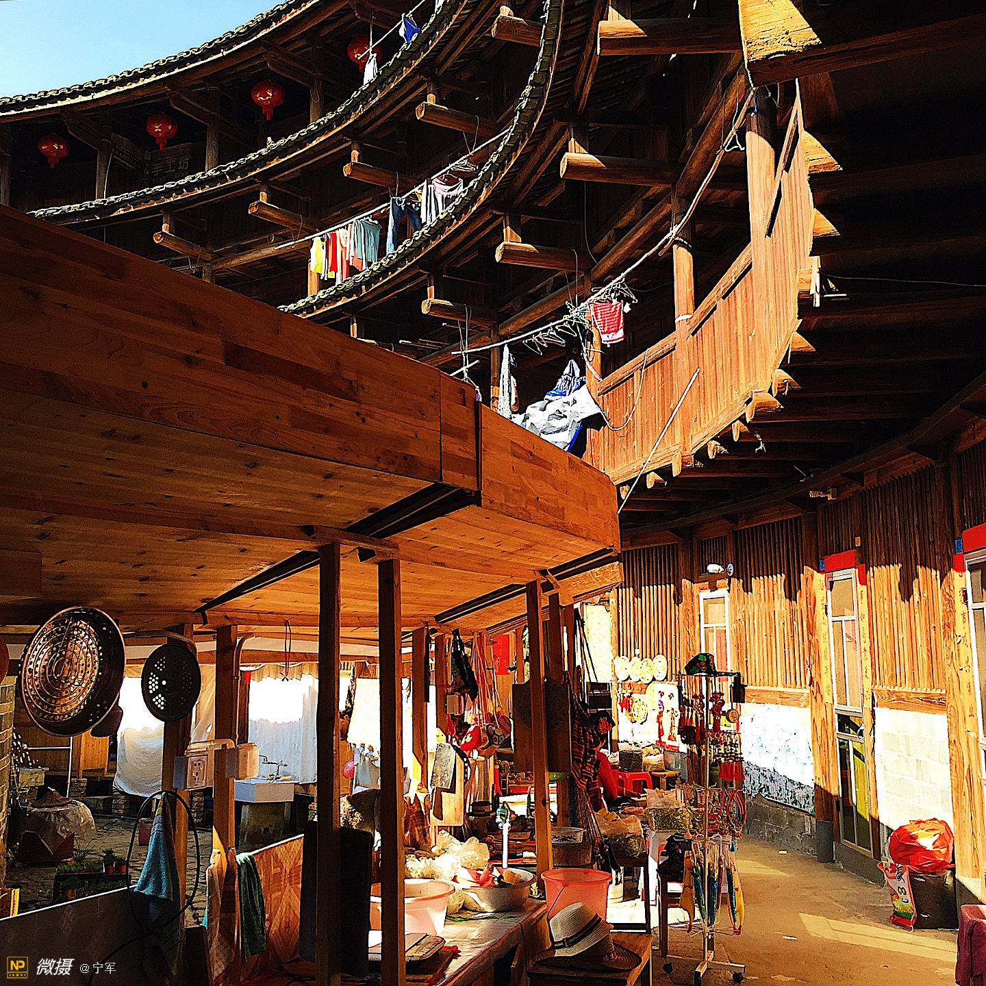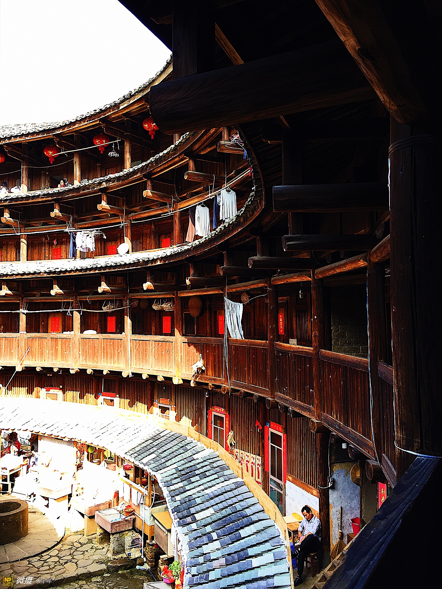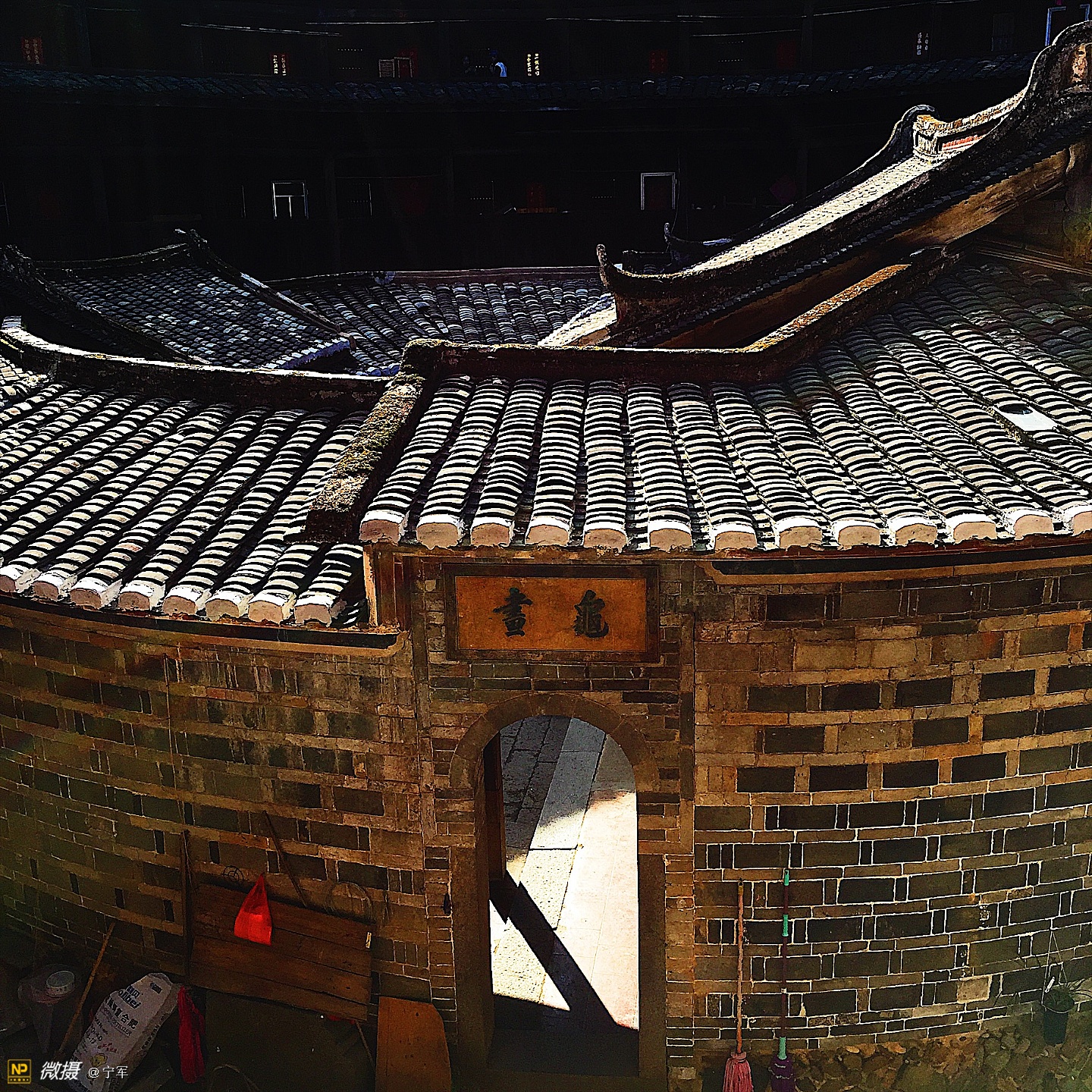 阳光折射在土楼的每个角落。